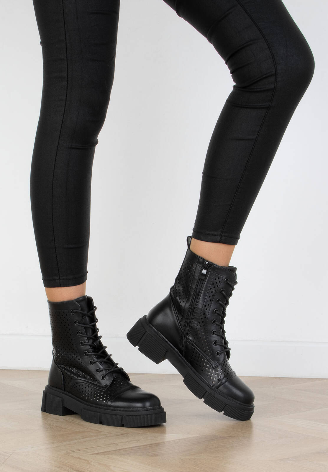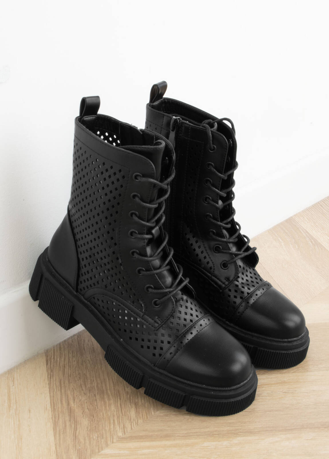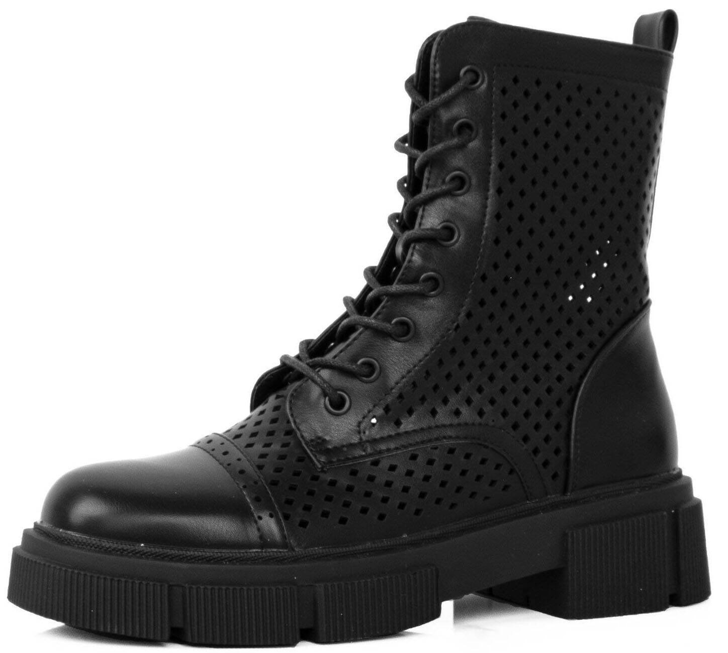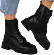 • Botki sznurowane wysokie z ażurową cholewką - modne i stylowe obuwie, które dodaje charakteru każdej stylizacji. Te botki charakteryzują się wysoką cholewką, która sięga powyżej kostki, nadając butom elegancki i wyrazisty wygląd.