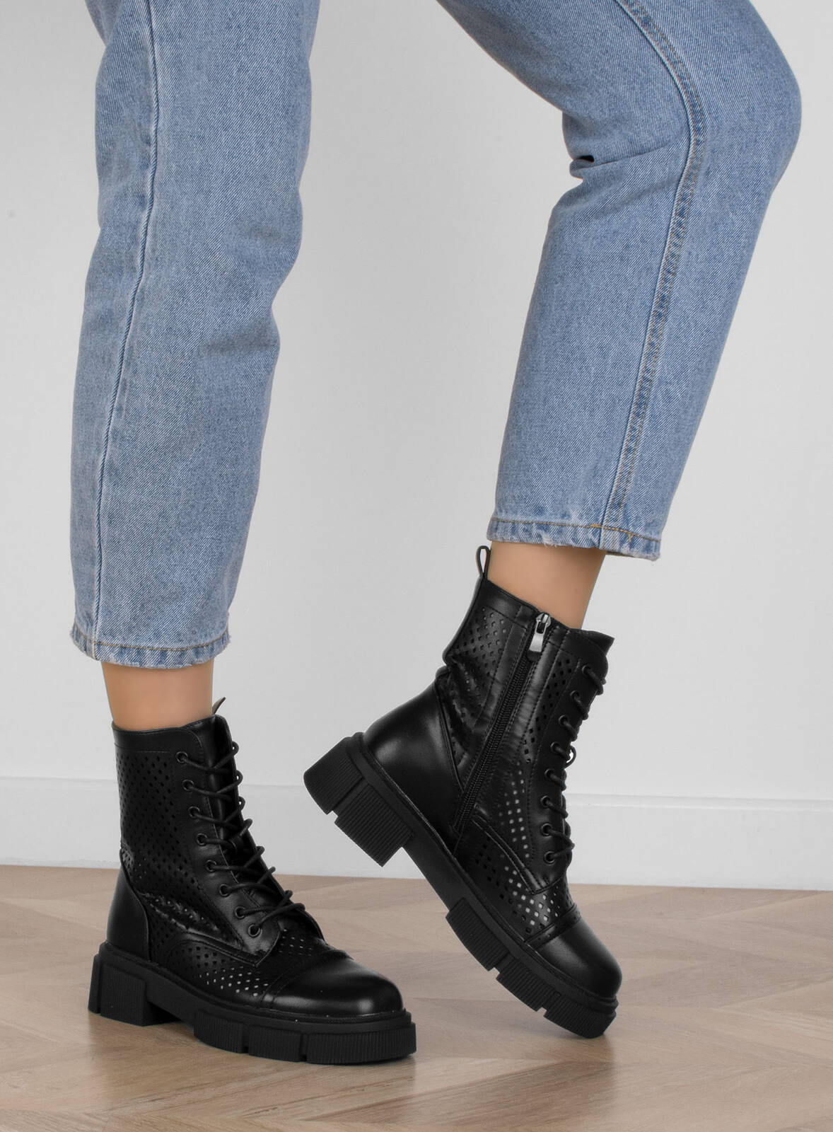 Te botki charakteryzują się wysoką cholewką, która sięga powyżej kostki, nadając butom elegancki i wyrazisty wygląd. Ażurowa cholewka dodaje im subtelności i lekkości, tworząc unikalny wzór i pozwalając skórze "oddychać".