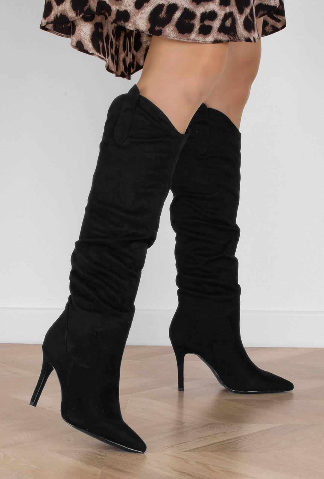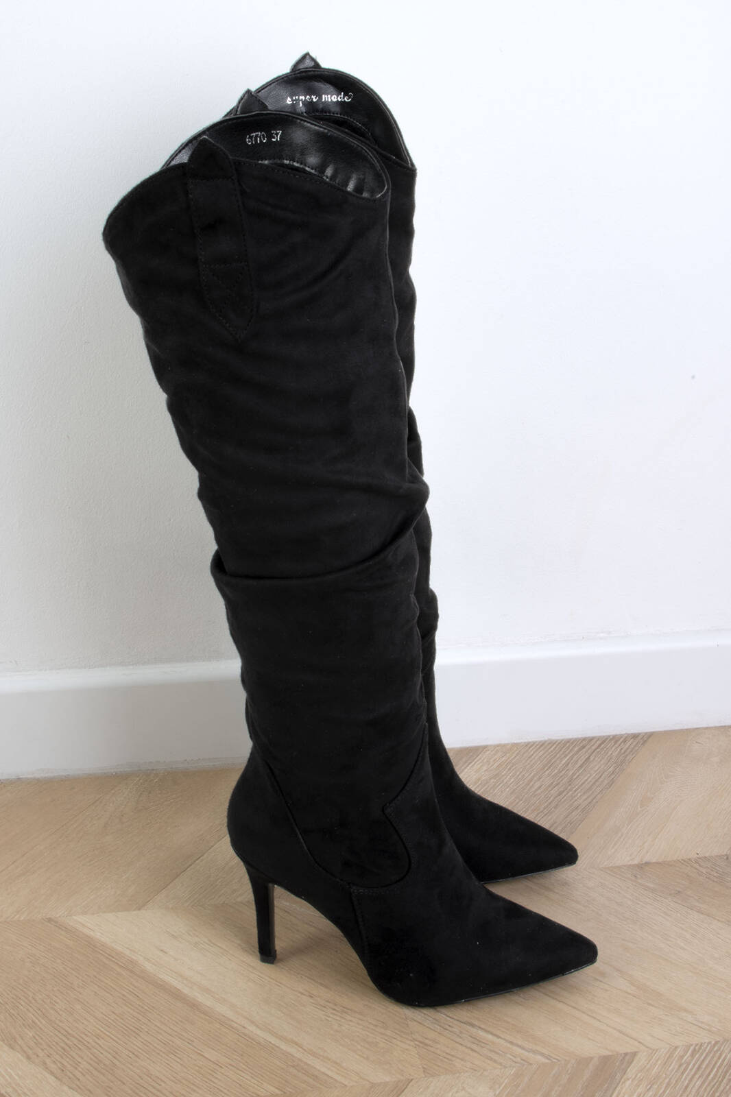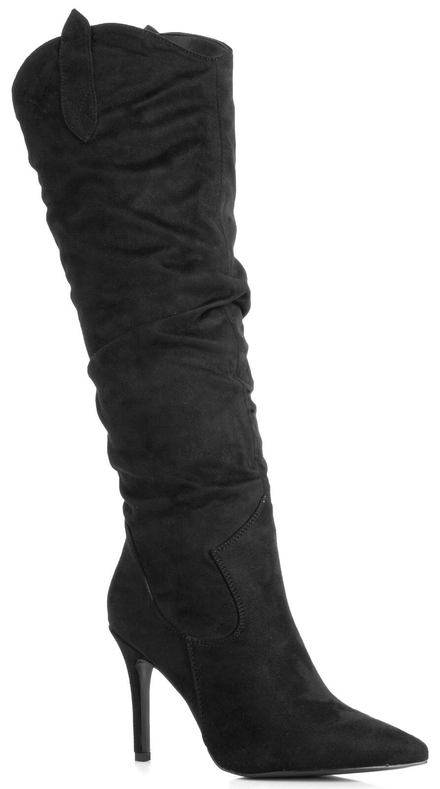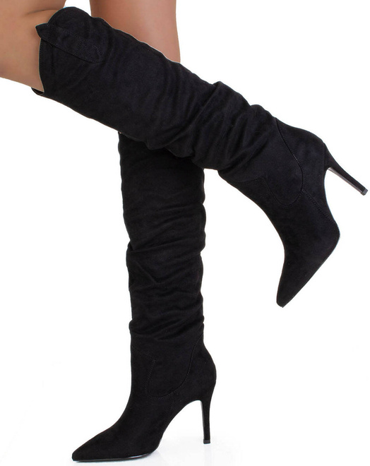 Czarne zamszowe kozaki na szpilce to wyjątkowo eleganckie i stylowe obuwie, które dodaje klasy i wyrafinowania każdej stylizacji. Wysoki obcas w postaci szpilki podkreśla kobiecą sylwetkę, a miękki zamsz nadaje butom luksusowego charakteru. Idealne na specjalne okazje, jak również na wieczorne wyjścia, te kozaki są doskonałym połączeniem elegancji i nowoczesnego stylu. Klasyczny czarny kolor, który pasuje do wielu stylizacji i dodaje butom ponadczasowego szyku. Kozaki na szpilce to doskonały wybór do bardziej eleganckich, wieczorowych stylizacji. Świetnie komponują się z sukienkami, spódnicami, a także z dopasowanymi spodniami.