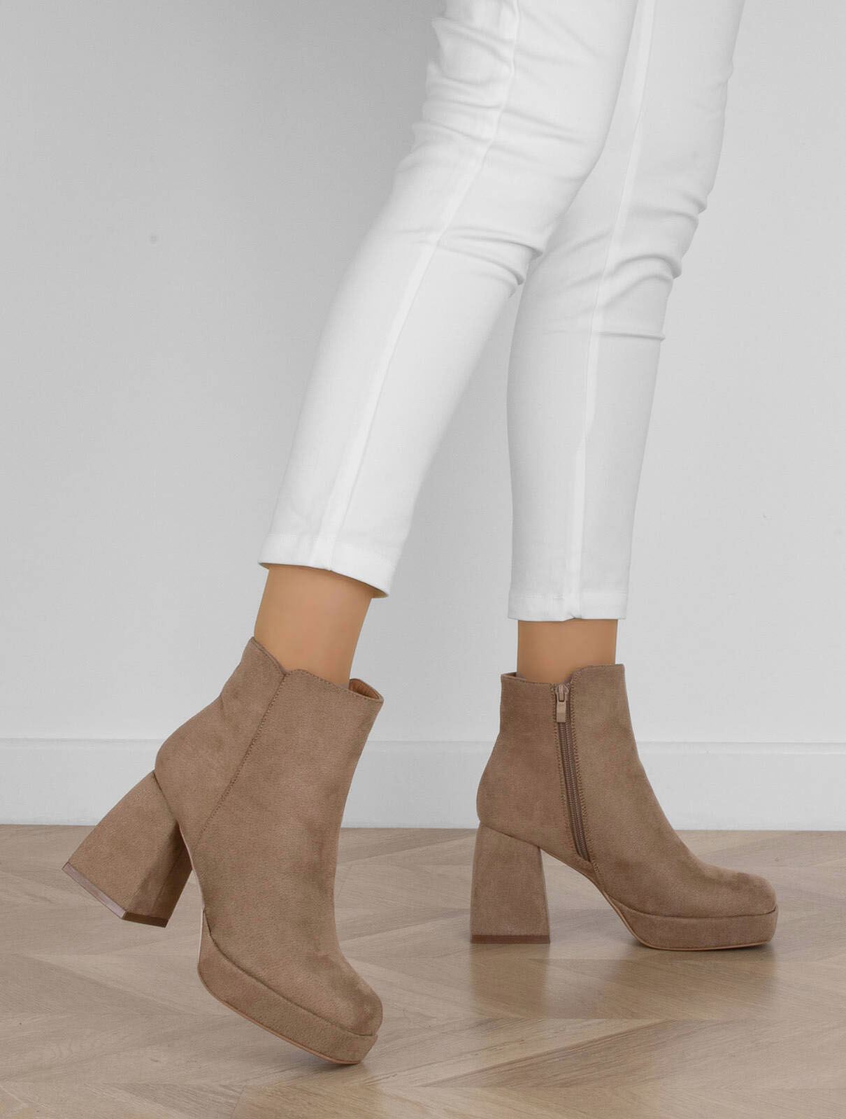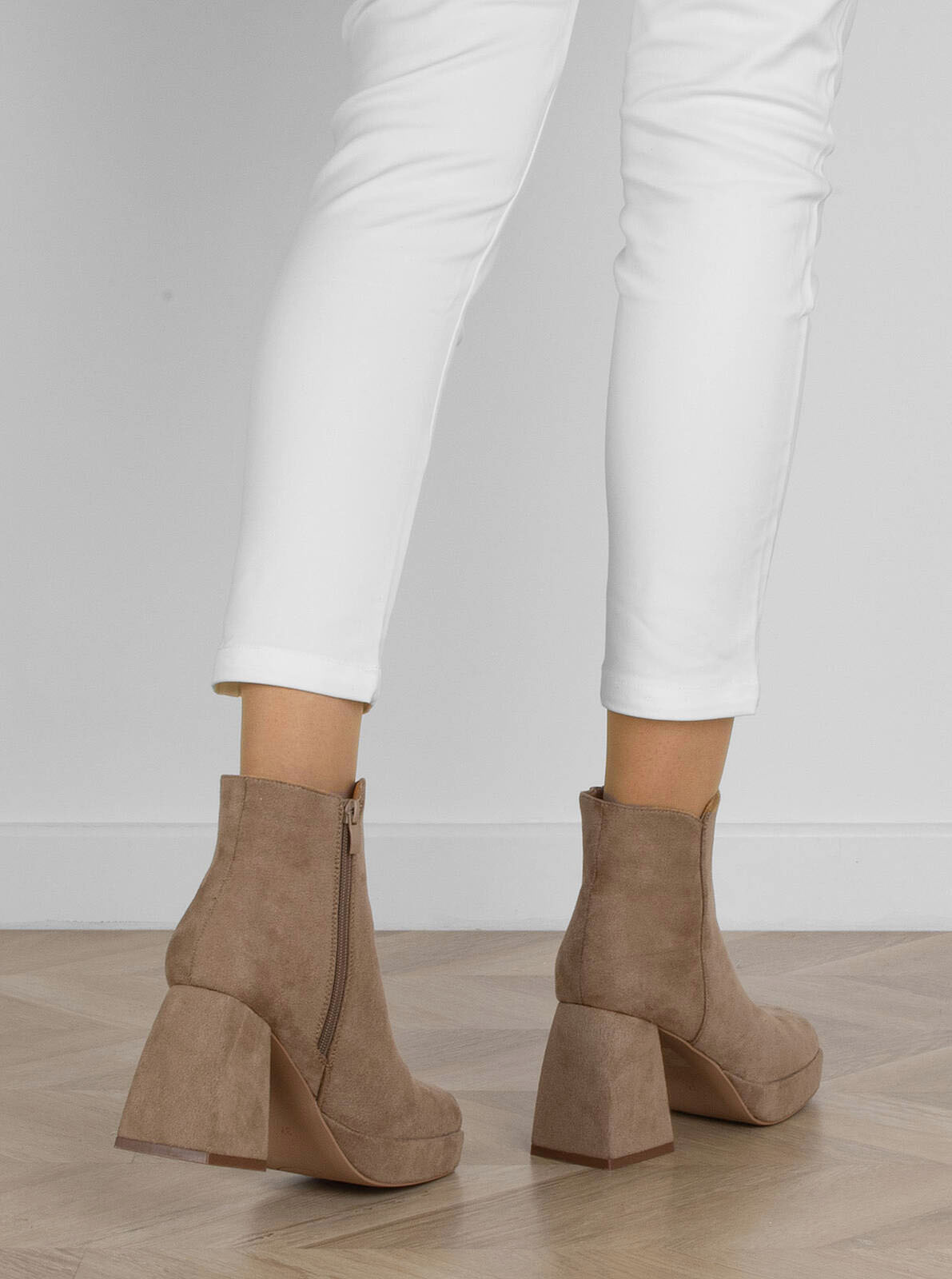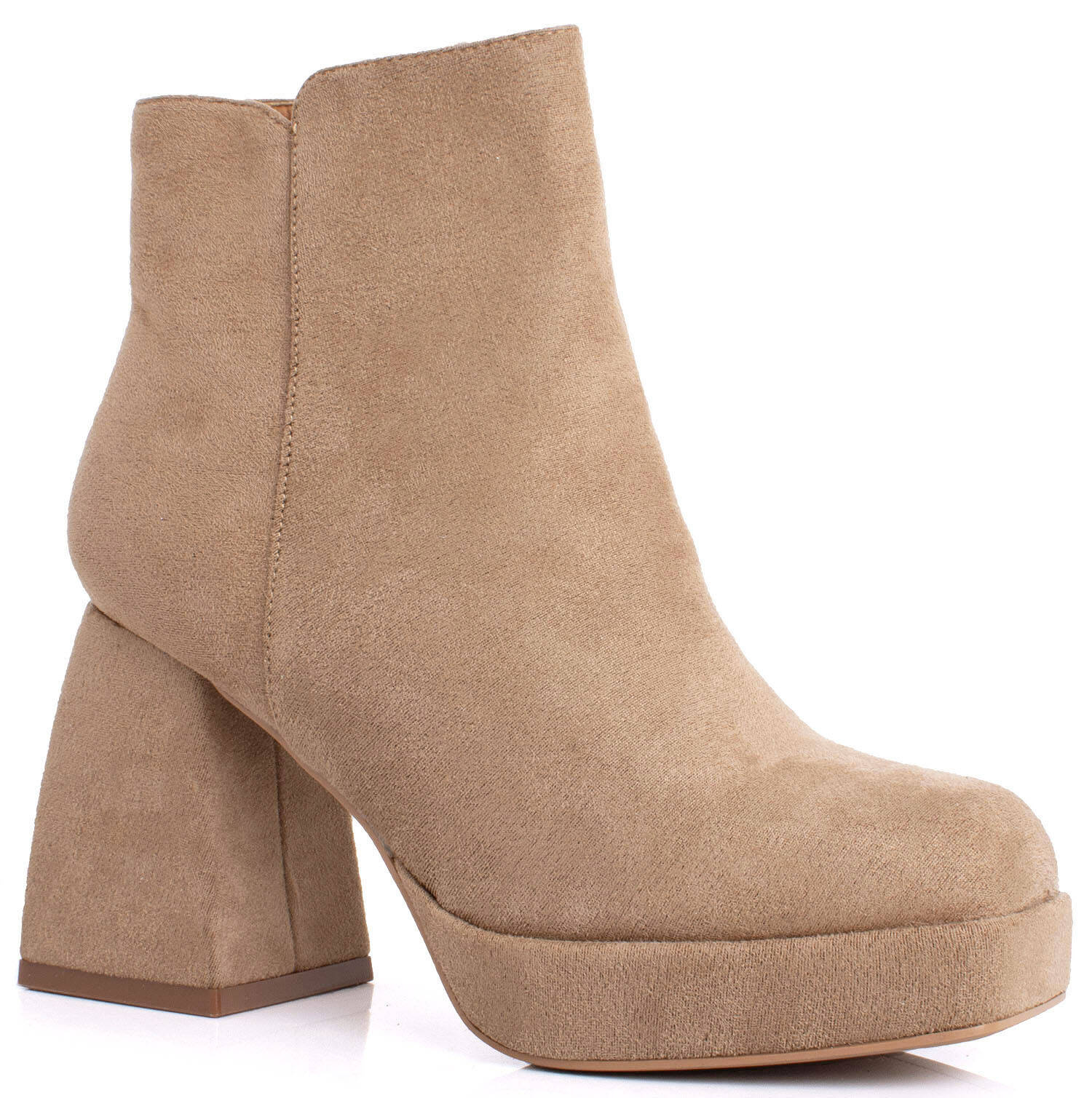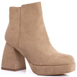 BEŻOWE DAMSKIE BOTKI ZAMSZOWE NA SŁUPKU PLATFORMA GAJA