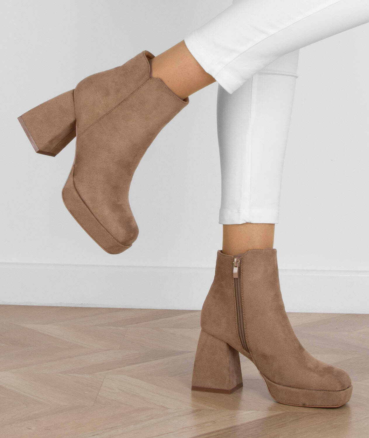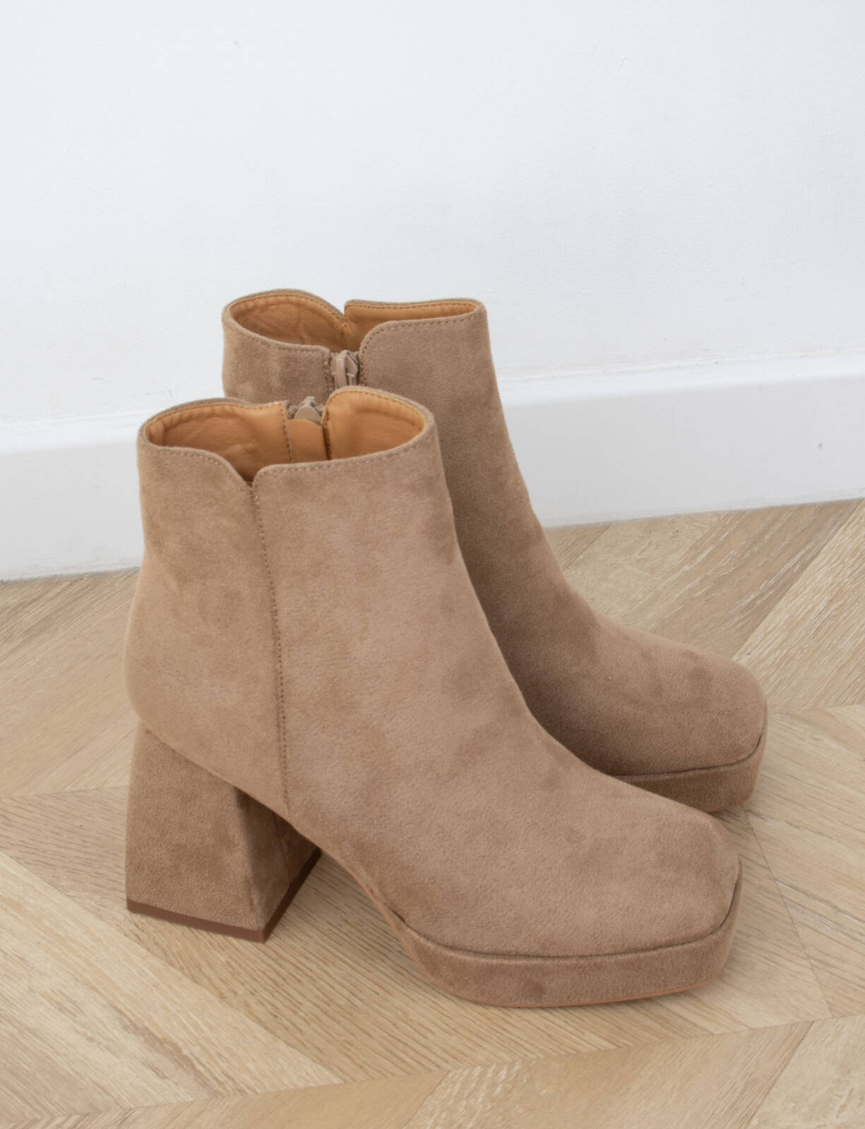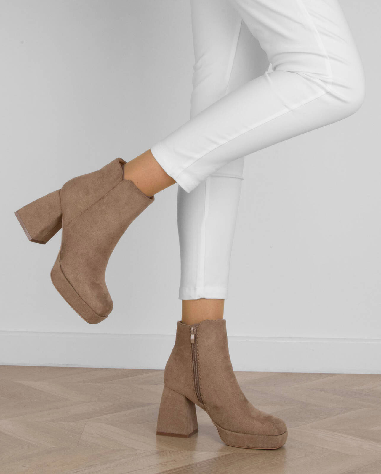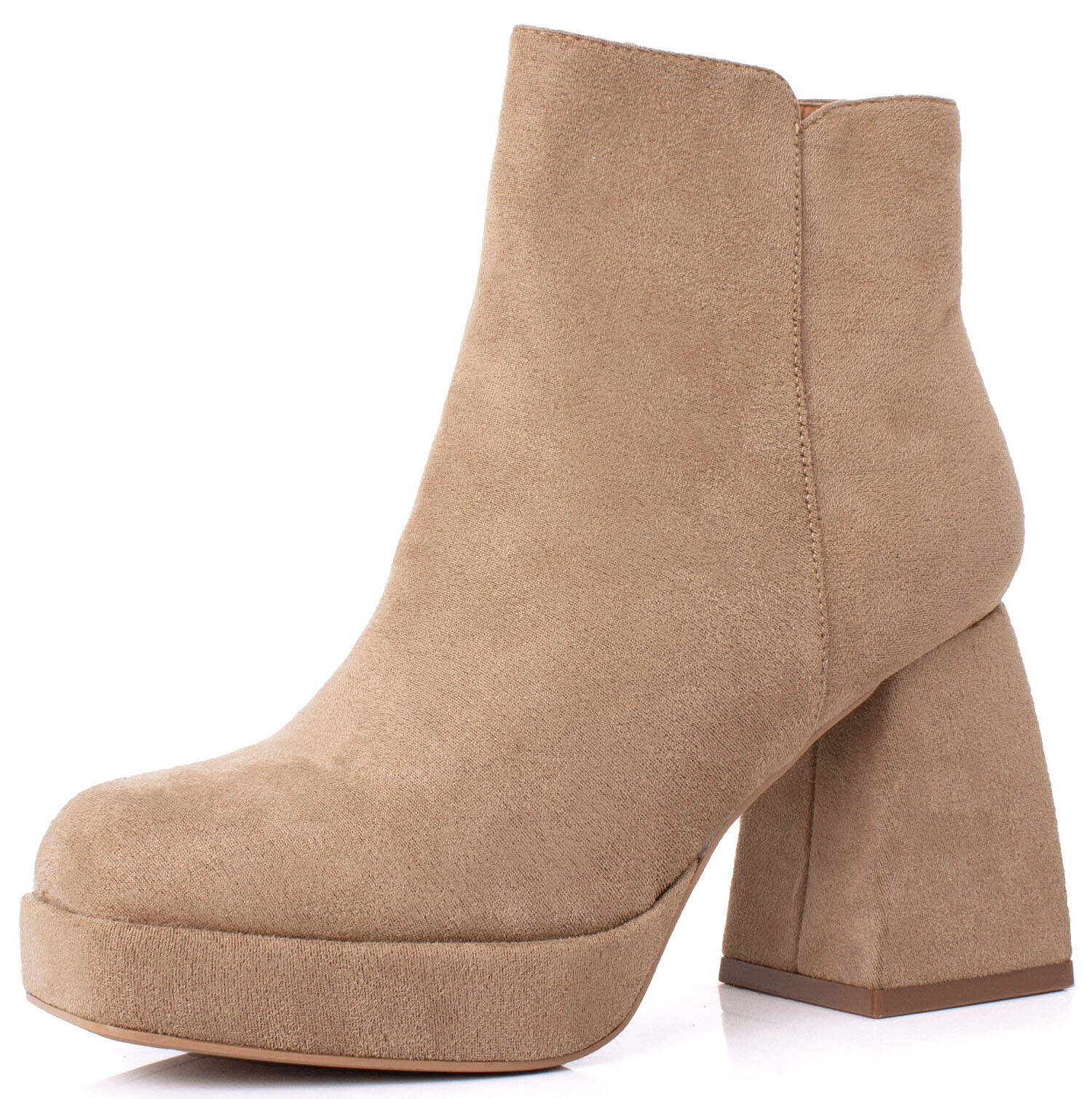 BEŻOWE DAMSKIE BOTKI ZAMSZOWE NA SŁUPKU PLATFORMA GAJA