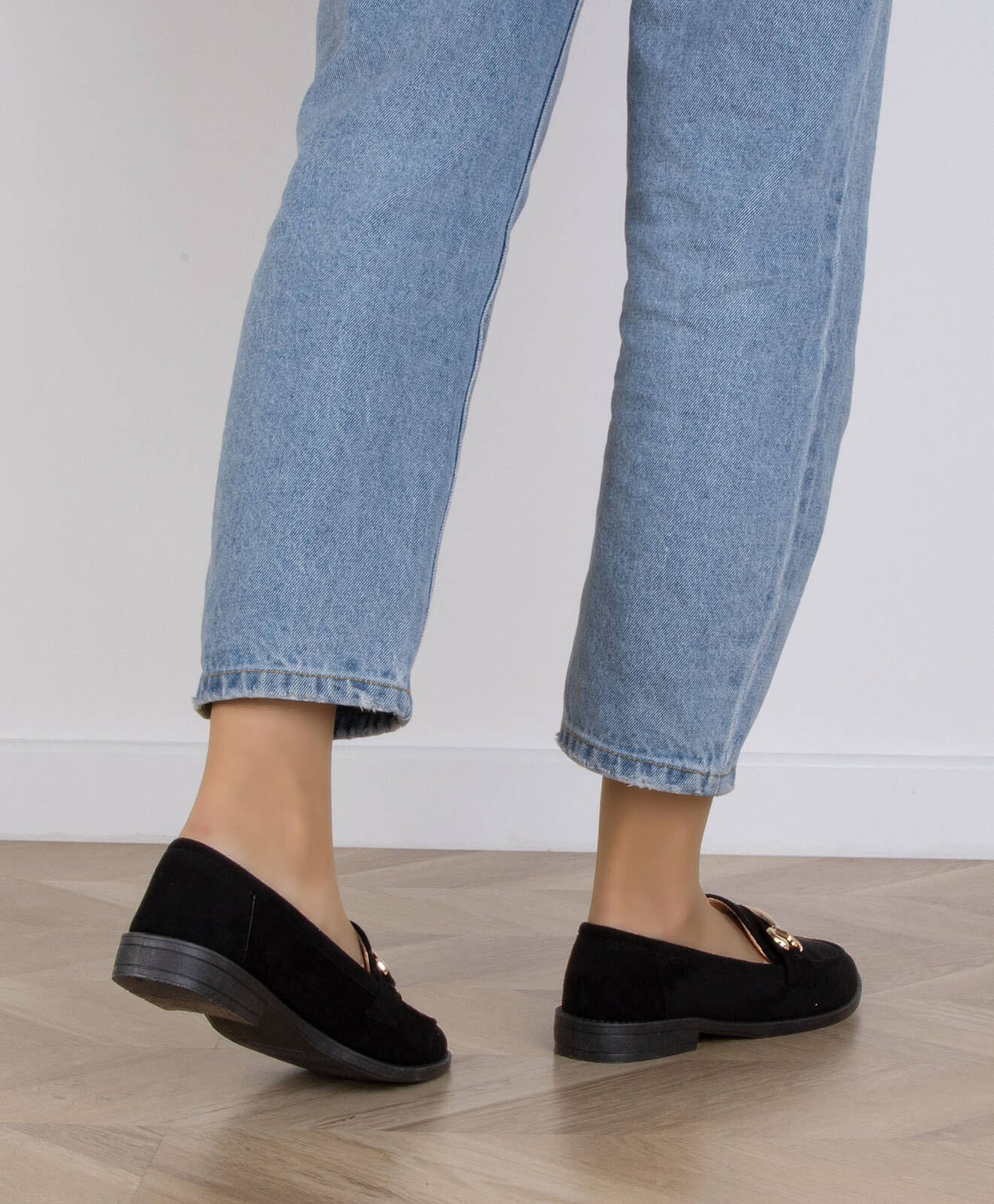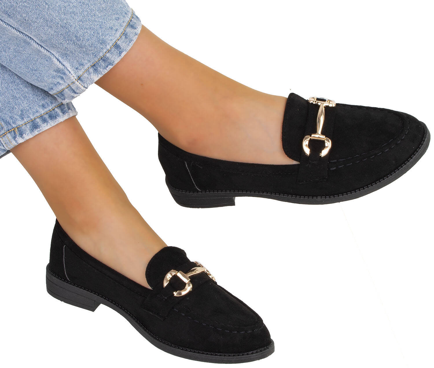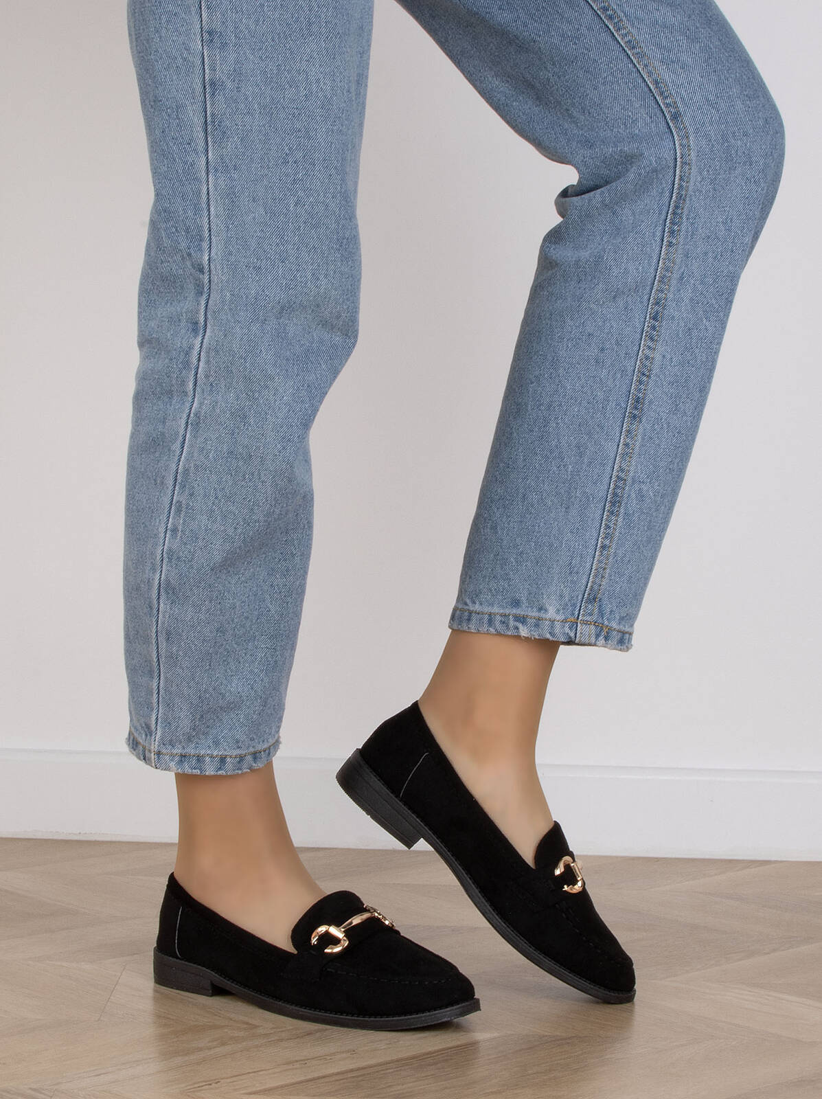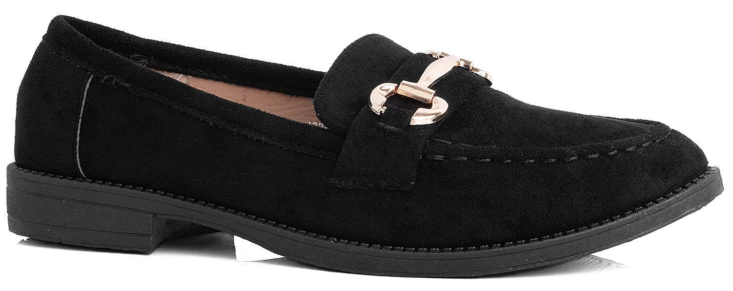 CZARNE MOKASYNY ZAMSZOWE DAMSKIE Z ŁAŃCUSZKIEM BLANKA
