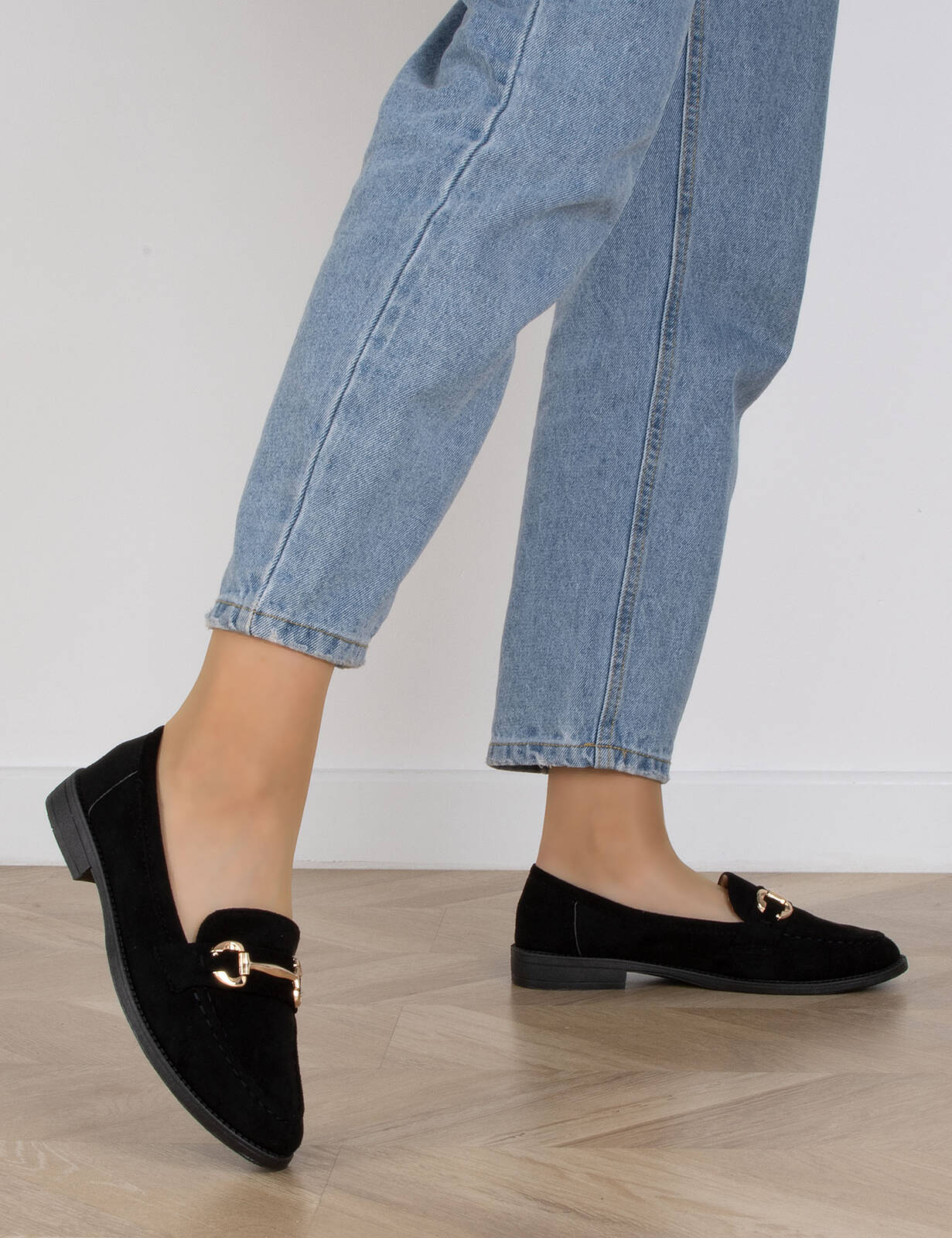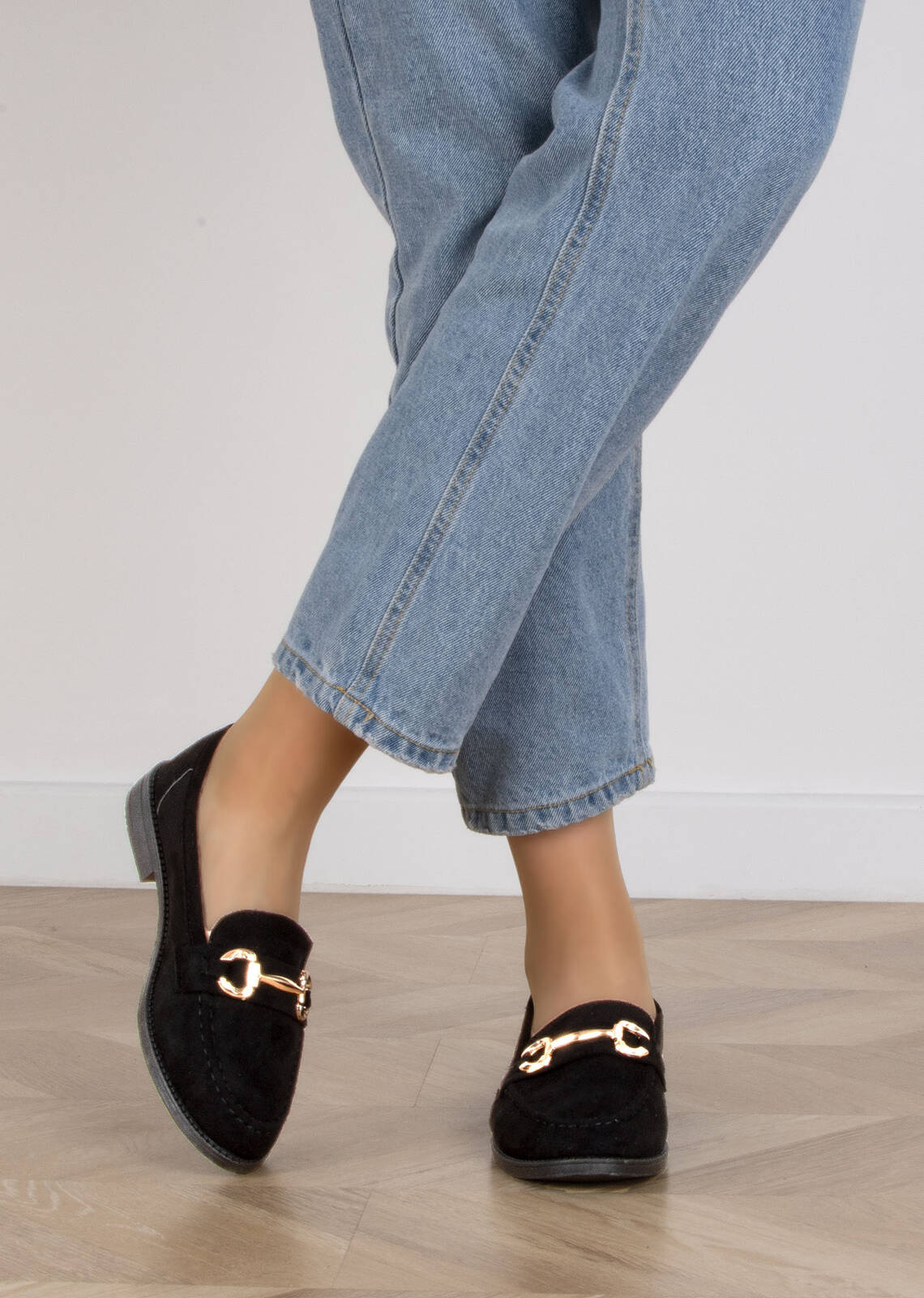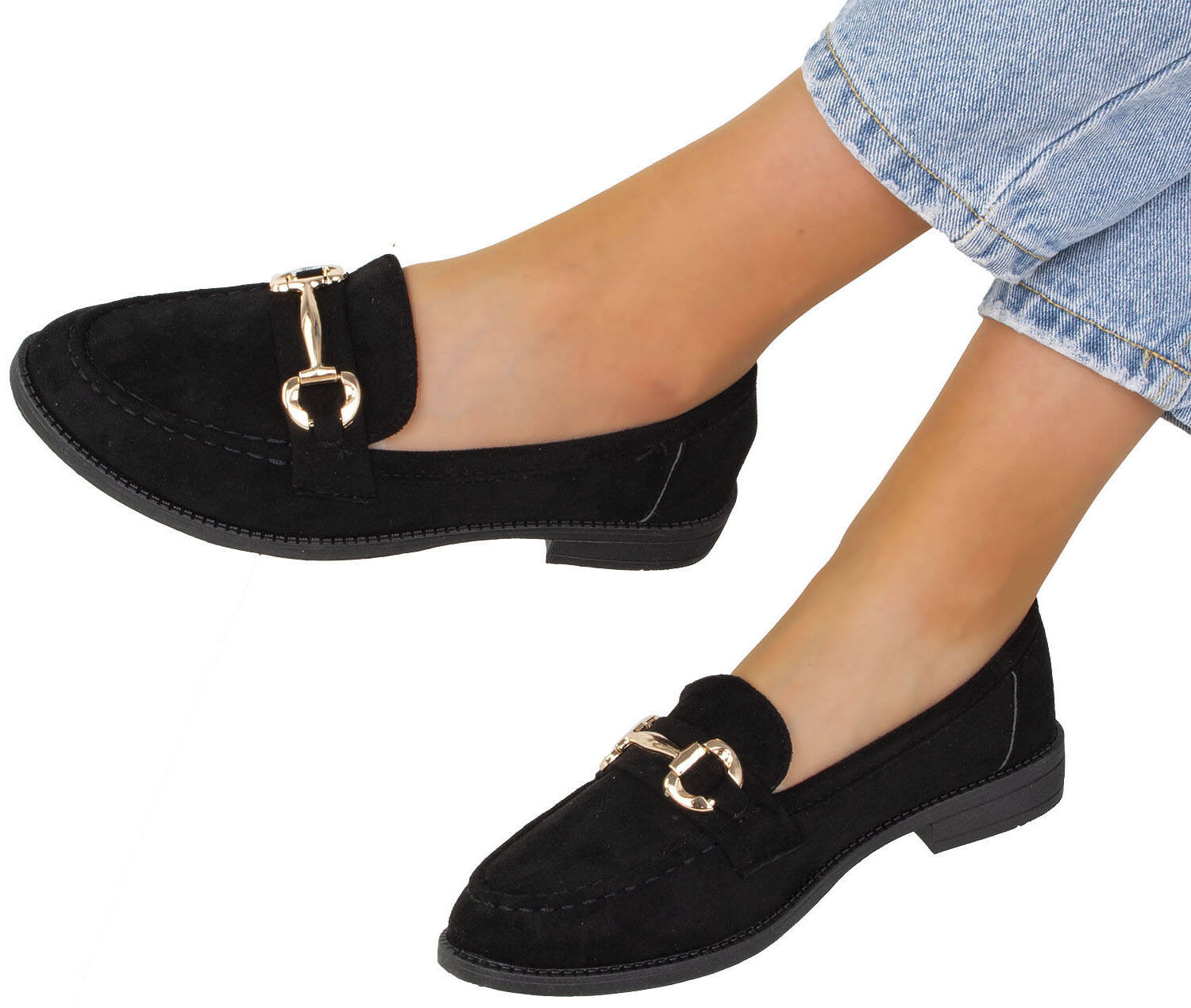 CZARNE MOKASYNY ZAMSZOWE DAMSKIE Z ŁAŃCUSZKIEM BLANKA