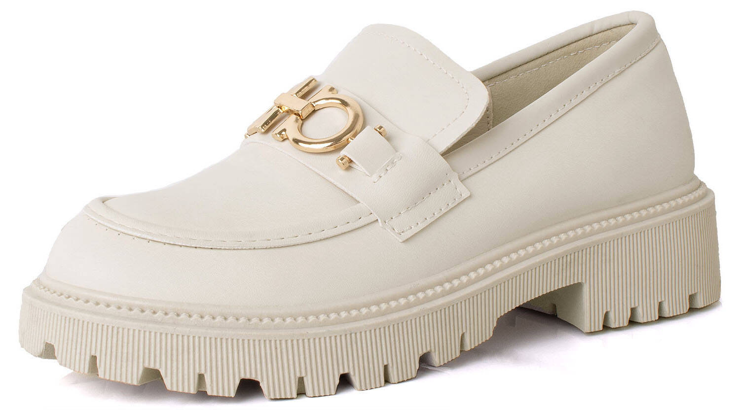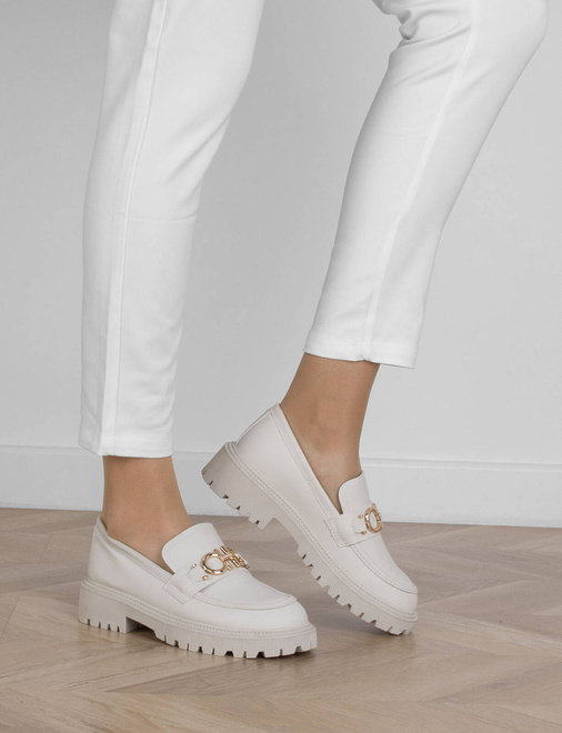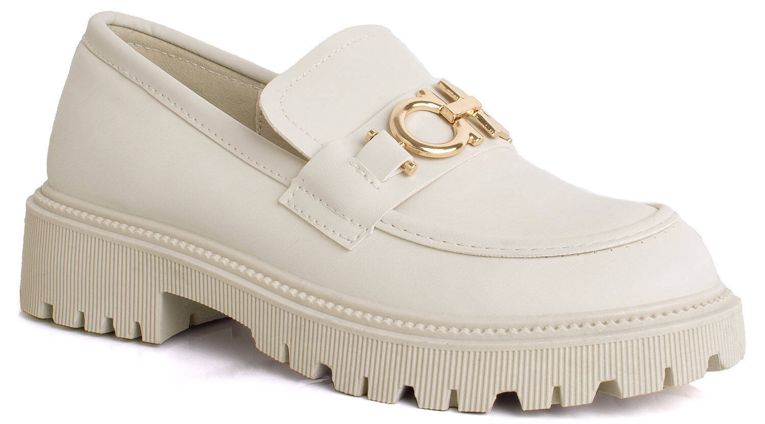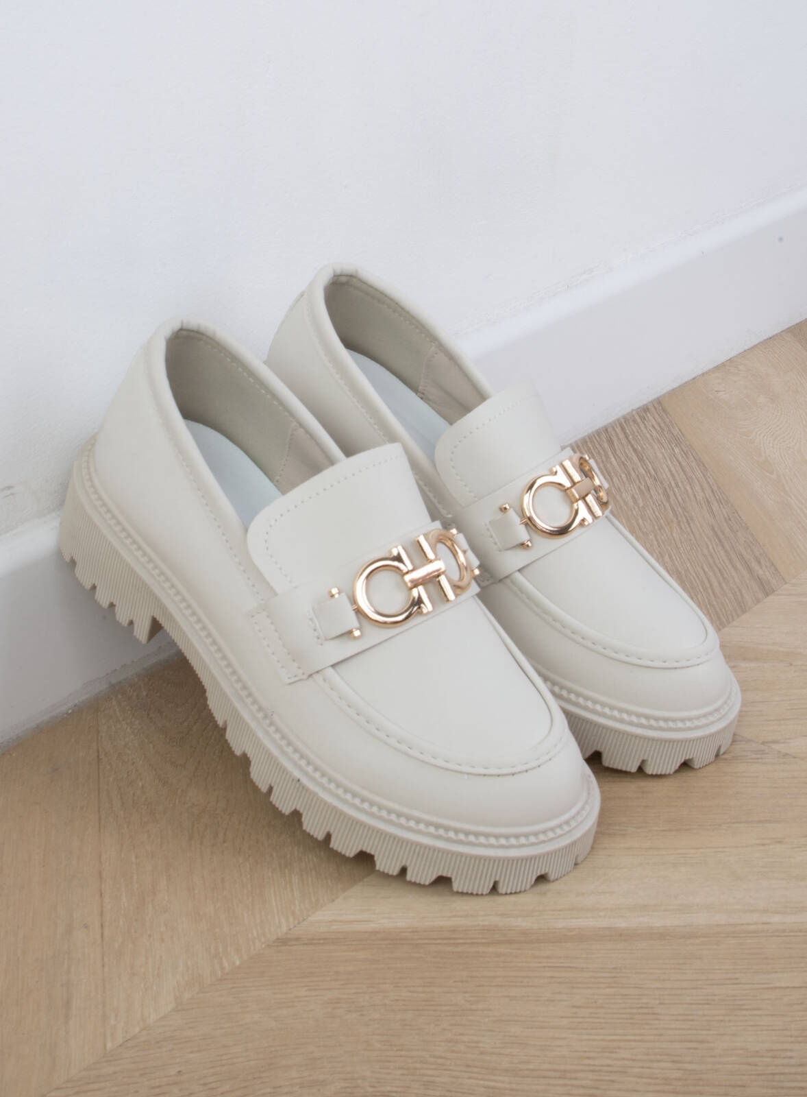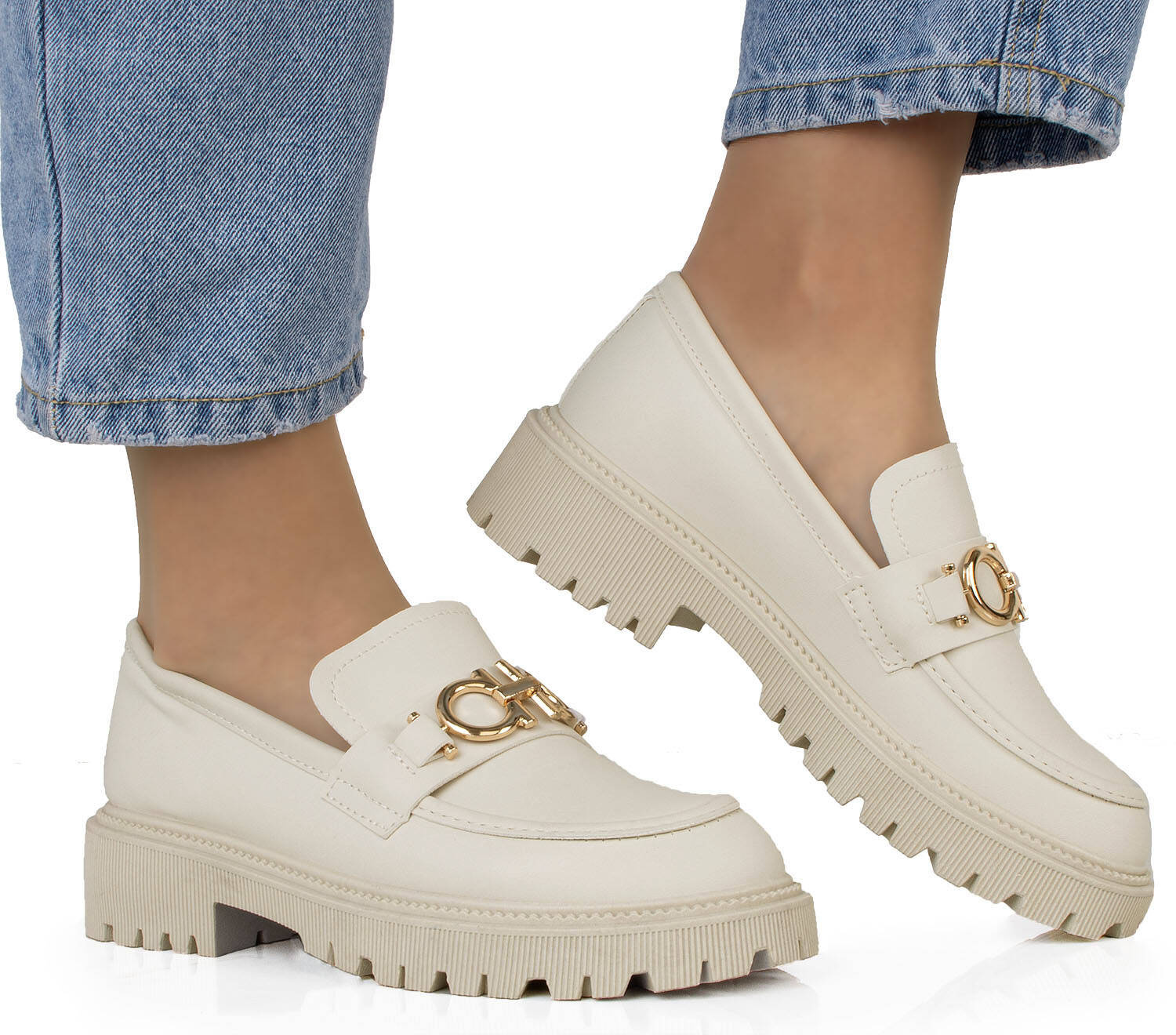 BEŻOWE MOKASYNY WSUWANE NA PLATFORMIE Z ŁAŃCUCHEM LARYSSA