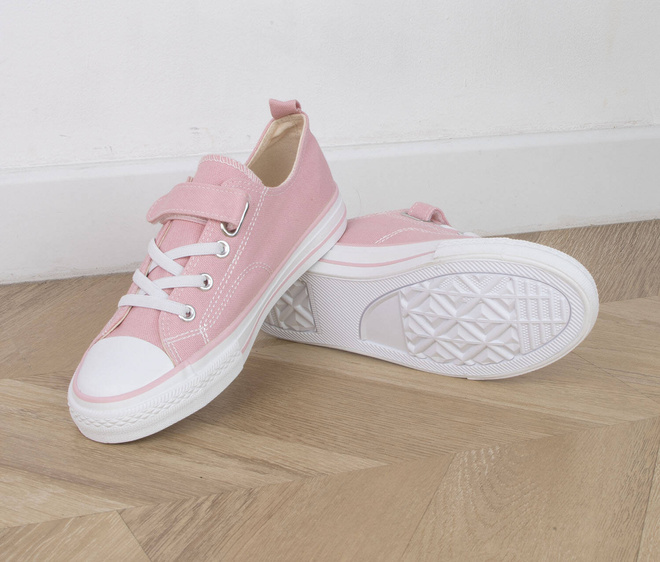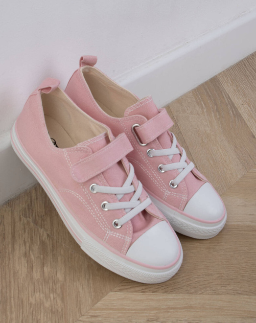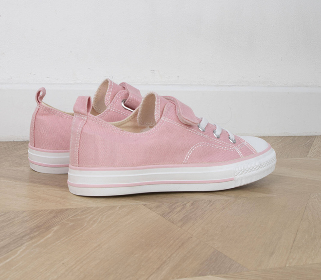RÓŻOWE TRAMPKI KLASYCZNE NISKIE SZNUROWANE RZEP