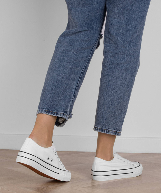 • Białe trampki z grubą podeszwą to połączenie stylu i wygody, idealne na każdą okazję. Ich nowoczesny design i charakterystyczna podeszwa nadają im dynamicznego wyglądu, który wyróżni Cię z tłumu.