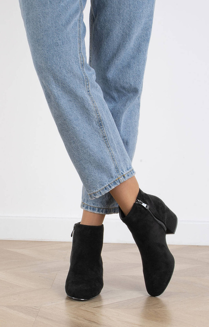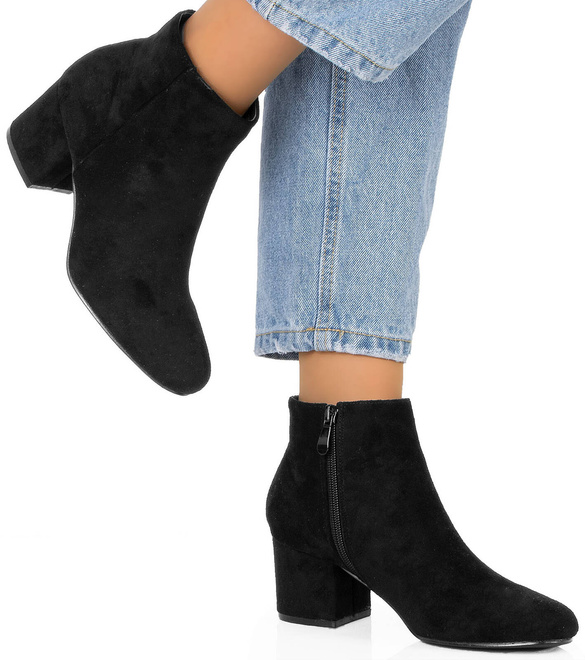 Botki zostały wykonane z najwyższej jakości zamszu, co sprawia, że są nie tylko piękne, ale także trwałe. Zamszowy materiał zewnętrzny nadaje im elegancki wygląd, który idealnie pasuje do wielu różnych stylizacji. Bez względu na to, czy planujesz wyjście na randkę, spotkanie ze znajomymi czy ważne spotkanie biznesowe, te botki są idealnym wyborem.Co wyróżnia nasze botki na tle innych? Przede wszystkim ich wygodny grubszy słupek. Dzięki temu możesz cieszyć się nie tylko pięknym wyglądem, ale także komfortem przez cały dzień. Niezależnie od tego, czy będziesz spacerować po mieście, czy stanie na całodniowej konferencji, te botki zapewnią Ci stabilność i wygodę. Dodatkowo, nasze botki posiadają zapięcie na suwak, co ułatwia ich zakładanie i zdejmowanie. Już nie musisz martwić się o to, że stracisz wieki na wiązanie sznurowadeł. Teraz możesz szybko i łatwo założyć swoje ulubione botki i cieszyć się każdą chwilą.