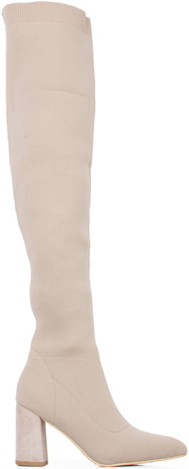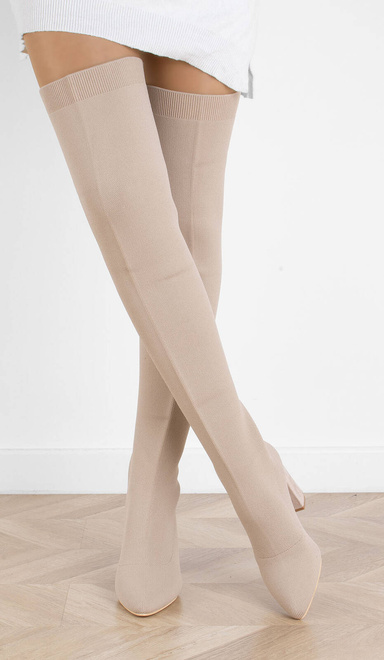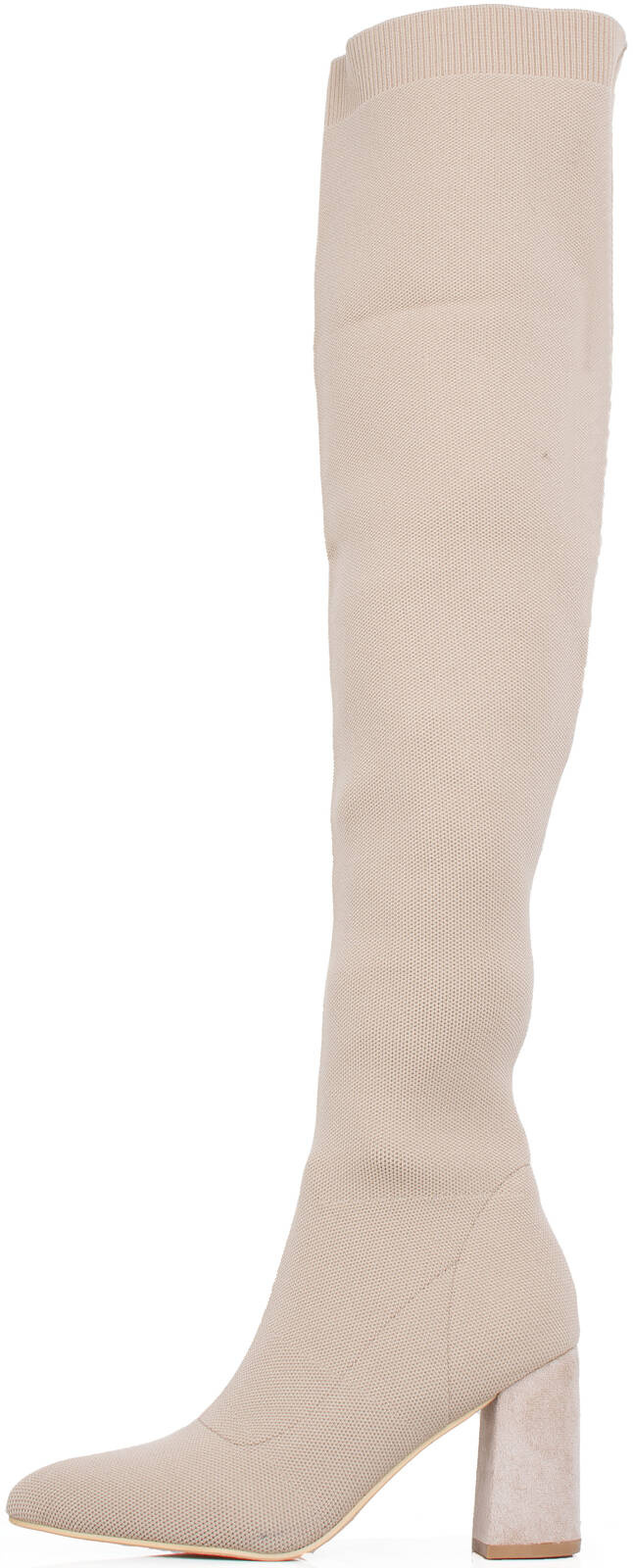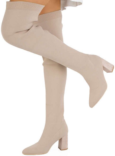Eleganckie kozaki na niskim słupku, które są zarówno wygodne, jak i stylowe. Ten model kozaków charakteryzuje się cholewką wykonaną w całości z elastycznego prążkowanego materiału, który doskonale dopasowuje się do kształtu nóg.
