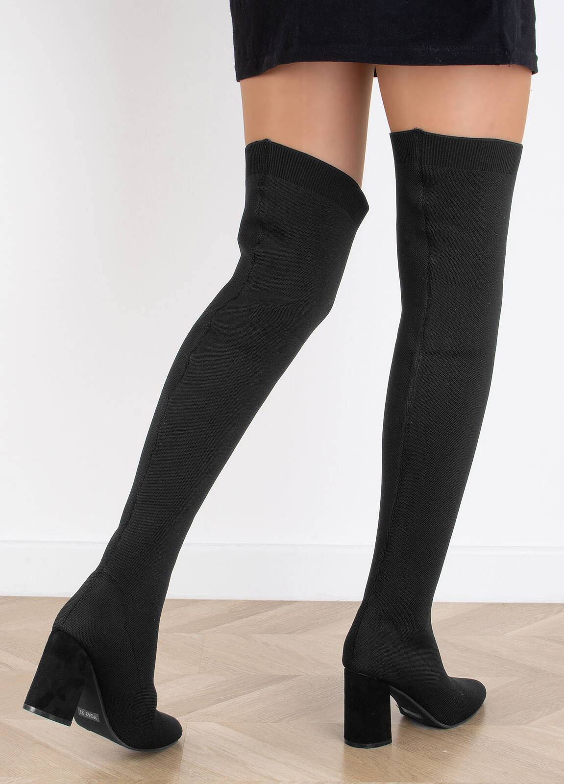 DAMSKIE CZARNE KOZAKI NA SŁUPKU ELASTYCZNA CHOLEWKA SOPHIE