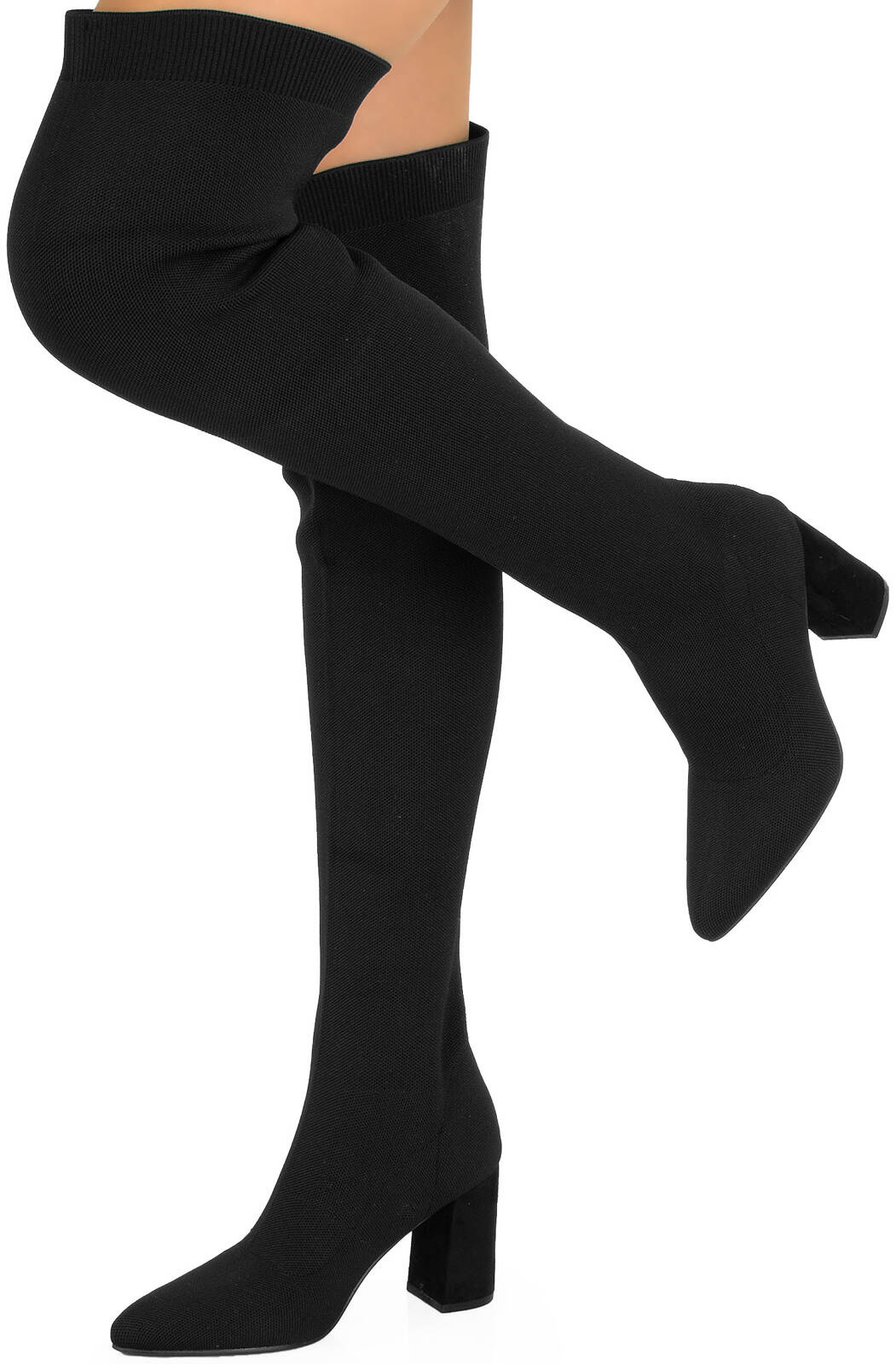 Eleganckie kozaki na niskim słupku, które są zarówno wygodne, jak i stylowe. Ten model kozaków charakteryzuje się cholewką wykonaną w całości z elastycznego prążkowanego materiału, który doskonale dopasowuje się do kształtu nóg.