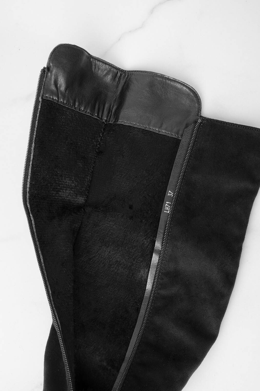 Czarne zamszowe kozaki to eleganckie i stylowe obuwie, które doskonale sprawdzi się w chłodniejszych miesiącach. Te klasyczne buty dodają szyku każdej stylizacji, zapewniając jednocześnie komfort i ochronę przed zimnem. Wykonane z miękkiego zamszu, są idealnym wyborem na różne okazje – od codziennych spacerów po bardziej formalne wyjścia. Czarne zamszowe wykończenie nadaje butom wyrafinowany, subtelny wygląd, który idealnie komponuje się z różnymi stylizacjami. Zamek błyskawiczny z boku buta dla wygody i łatwego zakładania oraz zdejmowania.
