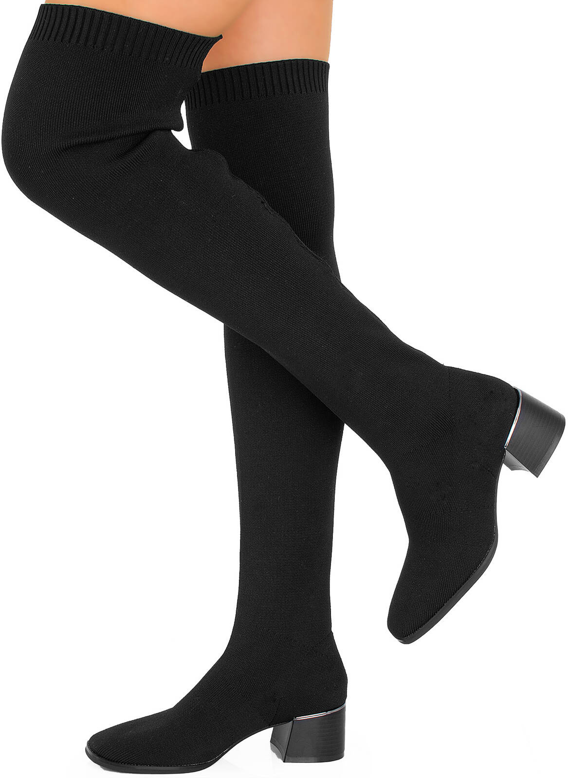 Eleganckie kozaki na słupku, które są zarówno wygodne, jak i stylowe. Ten model kozaków charakteryzuje się cholewką wykonaną w całości z elastycznego prążkowanego materiału, który doskonale dopasowuje się do kształtu nóg. Kozaki są wsuwane, co sprawia, że są łatwe do zakładania i zdejmowania, jednocześnie zapewniając swobodę ruchów. Elastyczny materiał cholewki pozwala na precyzyjne dopasowanie butów do różnych rozmiarów nóg, co gwarantuje komfort noszenia przez dłuższy czas. Obcas nadaje butom elegancji, jednocześnie zapewniając stabilność podczas chodzenia. Kozaki te są idealnym rozwiązaniem dla osób, które cenią sobie wygodę, ale nie chcą rezygnować z eleganckiego wyglądu. Ten model kozaków doskonale podkreśla wygląd nóg, dodając stylu każdej zimowej czy jesiennej stylizacji. Mogą być noszone zarówno z spódnicami czy sukienkami, jak i z jeansami czy spodniami.