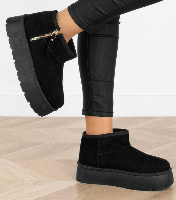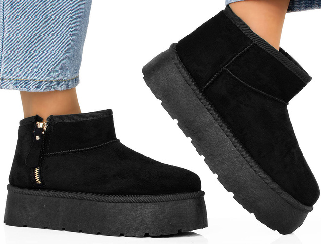 CZARNE OCIEPLANE ŚNIEGOWCE BOTKI WSUWANE ZAMEK GRUBA PODESZWA BEA