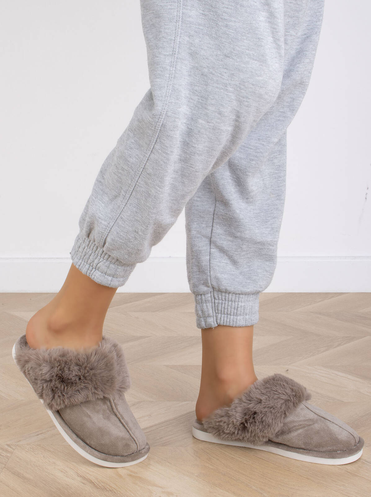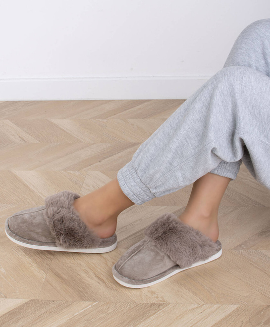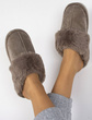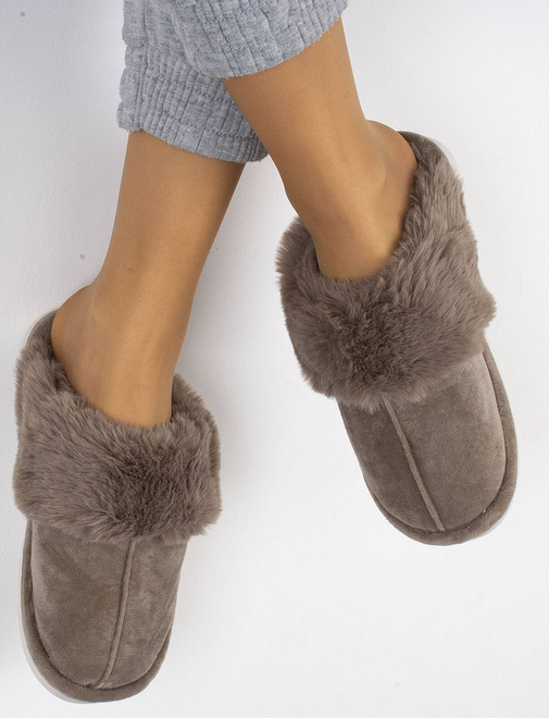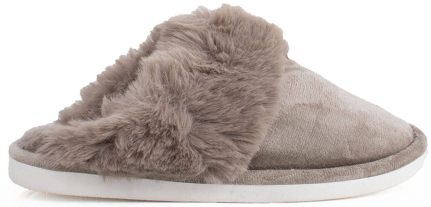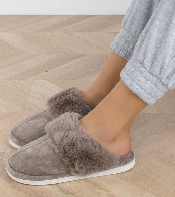 Damskie, wygodne klapki na płaskiej podeszwie. Ocieplane futerkiem. Idealne jako kapcie po domu w zimne wieczory!