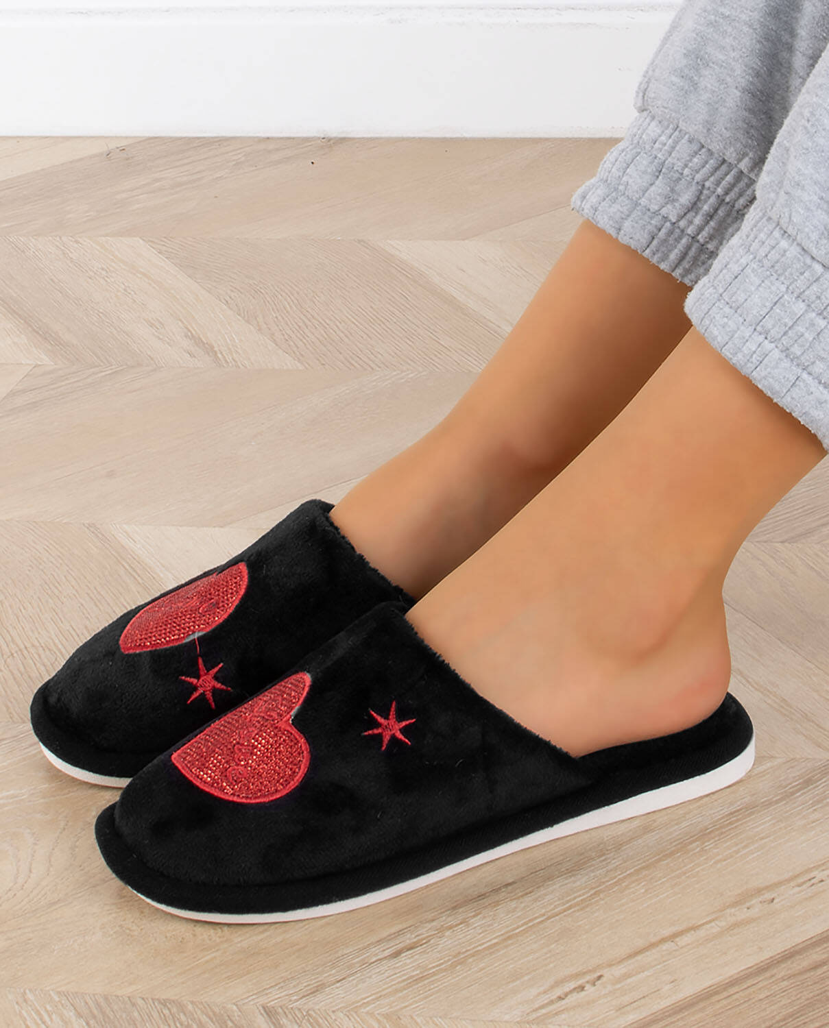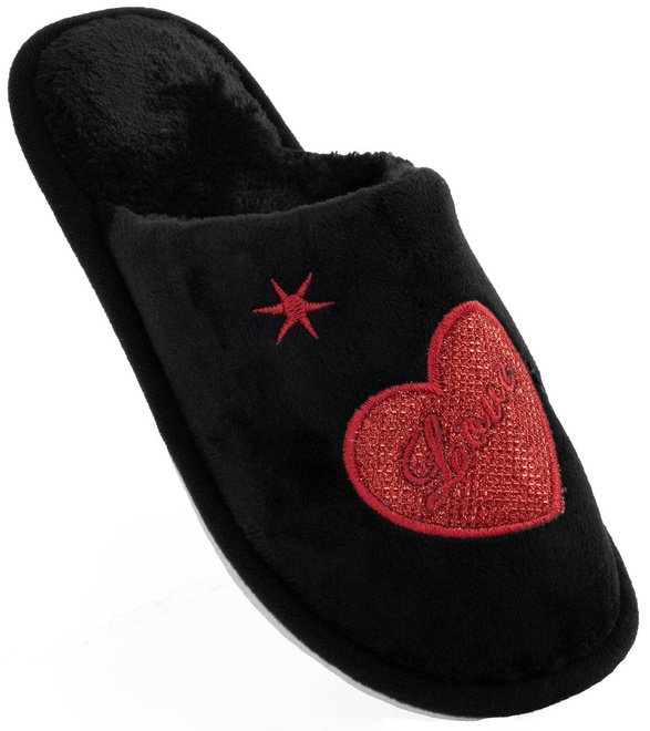 CZARNE DOMOWE DAMSKIE KAPCIE Z OZDOBĄ LILIBET