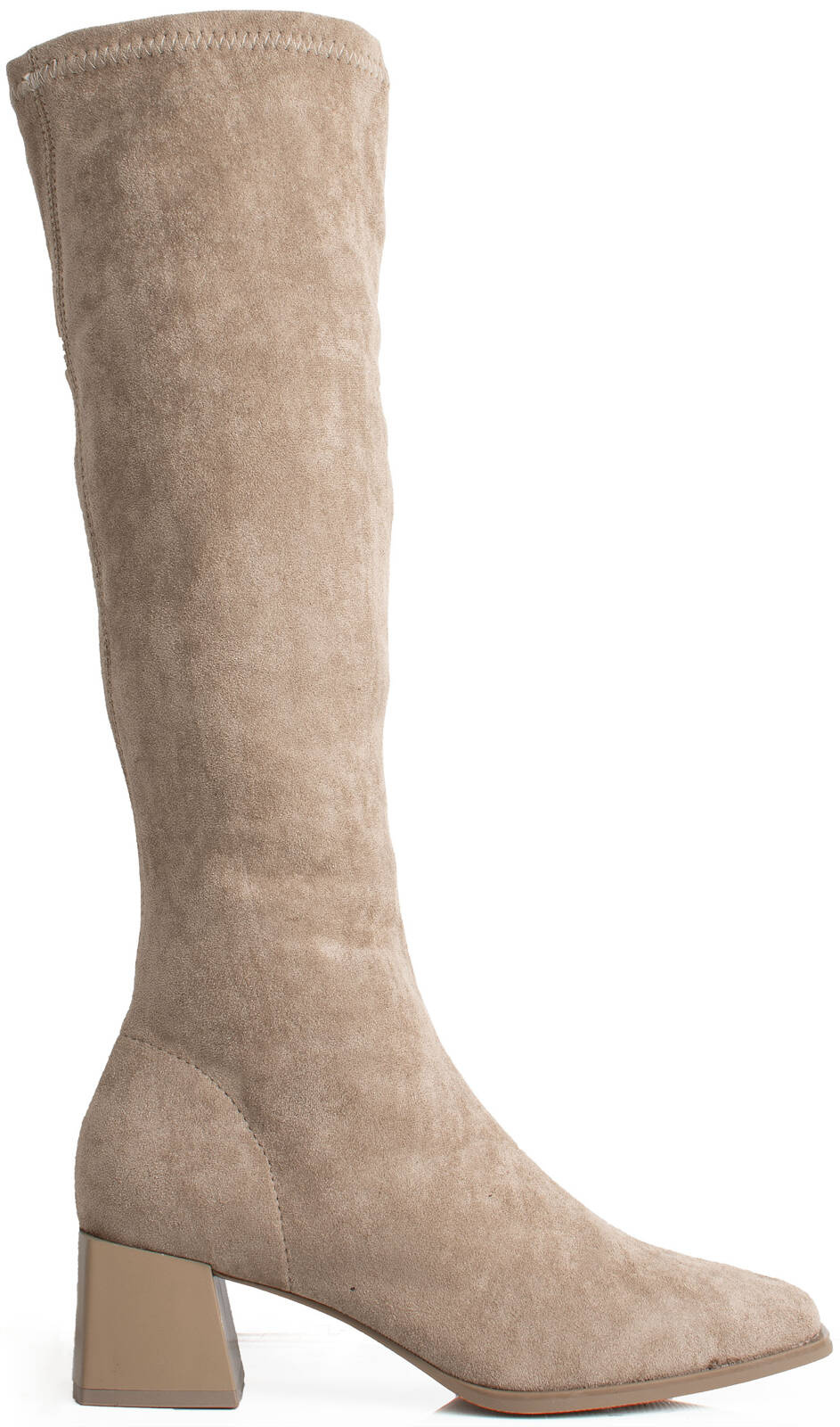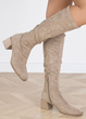 BEŻOWE ZAMSZOWE KOZAKI W SZPIC NA SŁUPKU BAKER