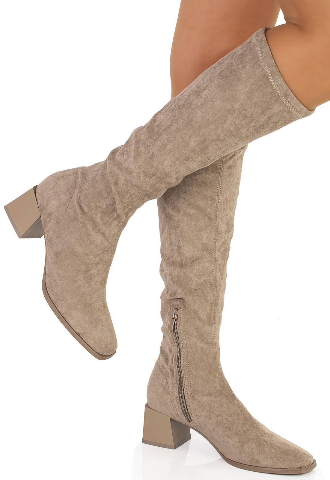 • Cholewka kozaków została wykonana z miękkiego zamszu.