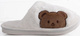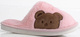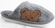 Damskie, wygodne klapki na płaskiej podeszwie, ze wzorem misia. Idealne jako kapcie po domu w zimne wieczory!