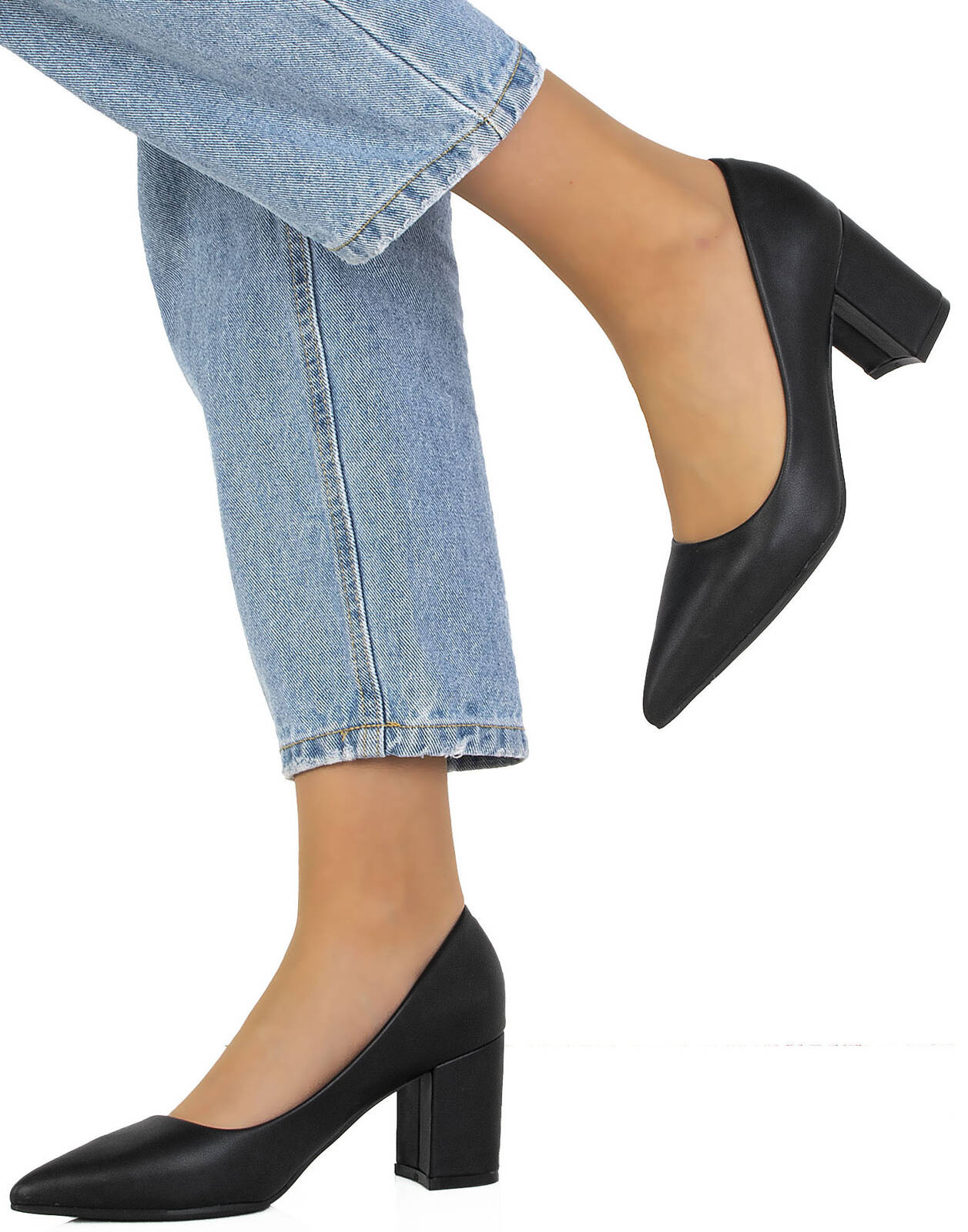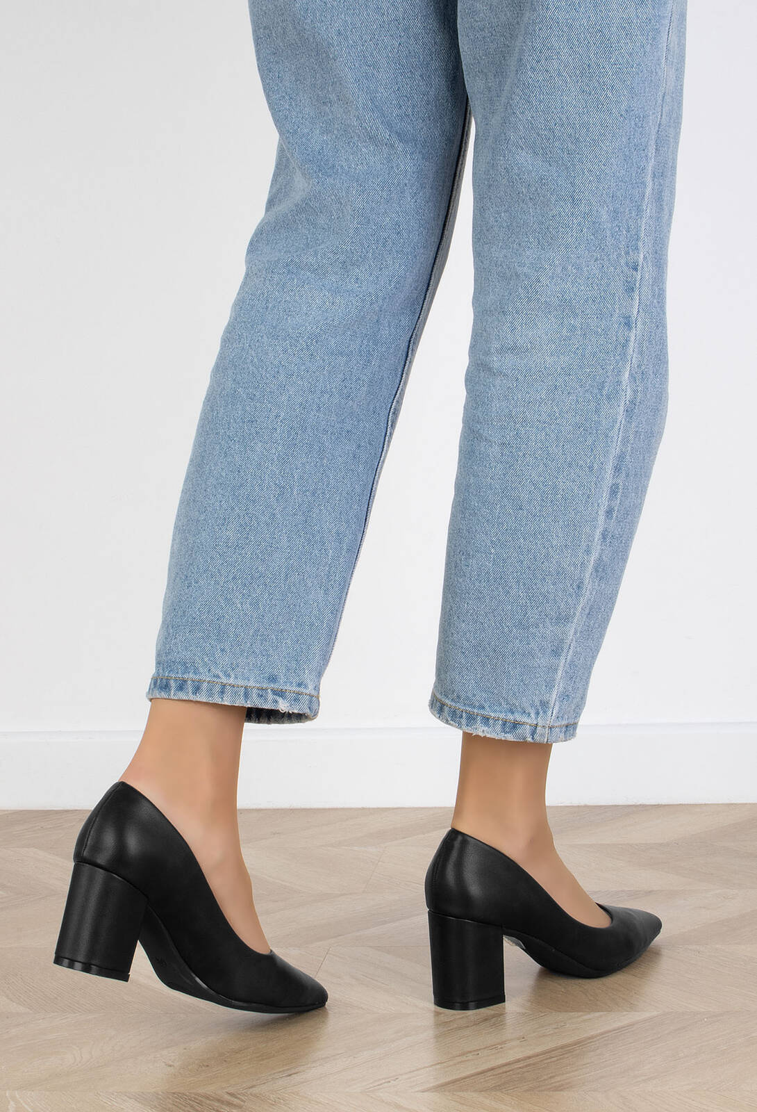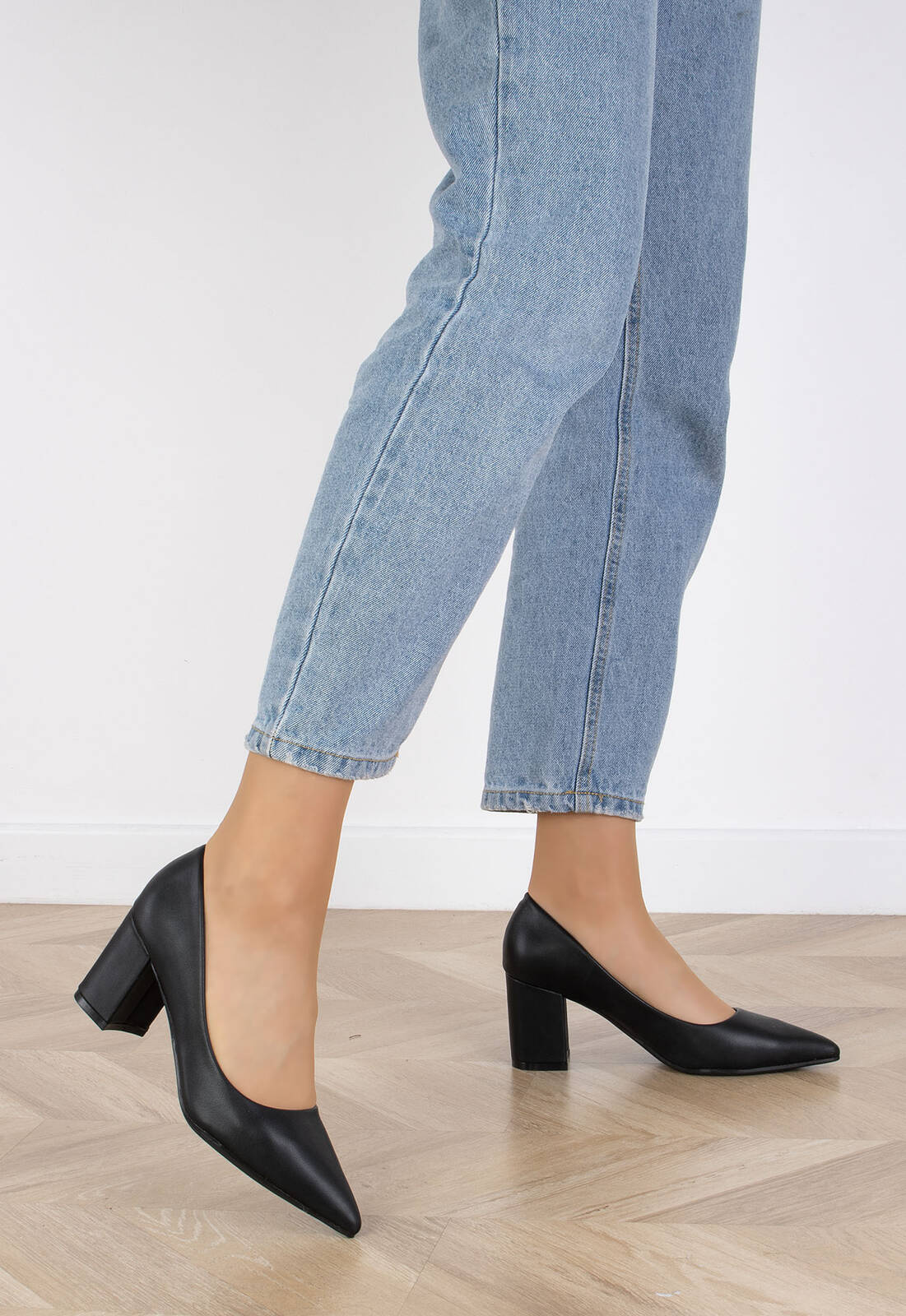 CZÓŁENKA SKÓRZANE CZARNE KLASYCZNE NA SŁUPKU W SZPIC LORET