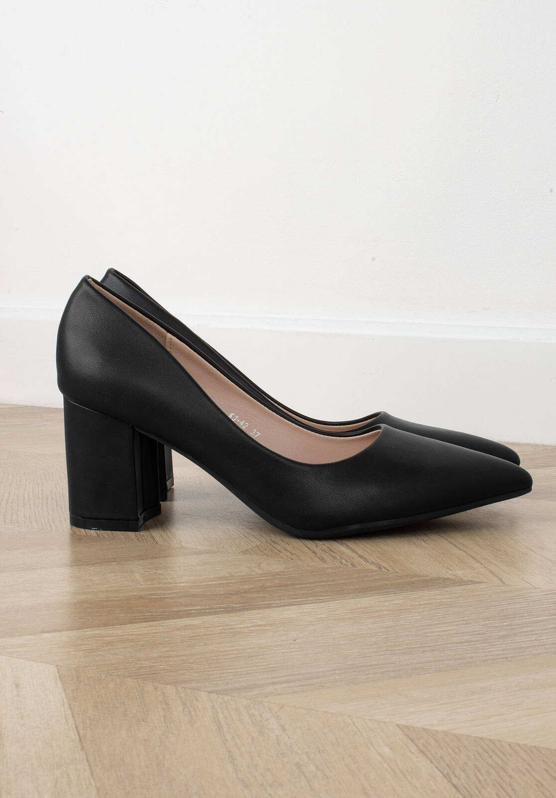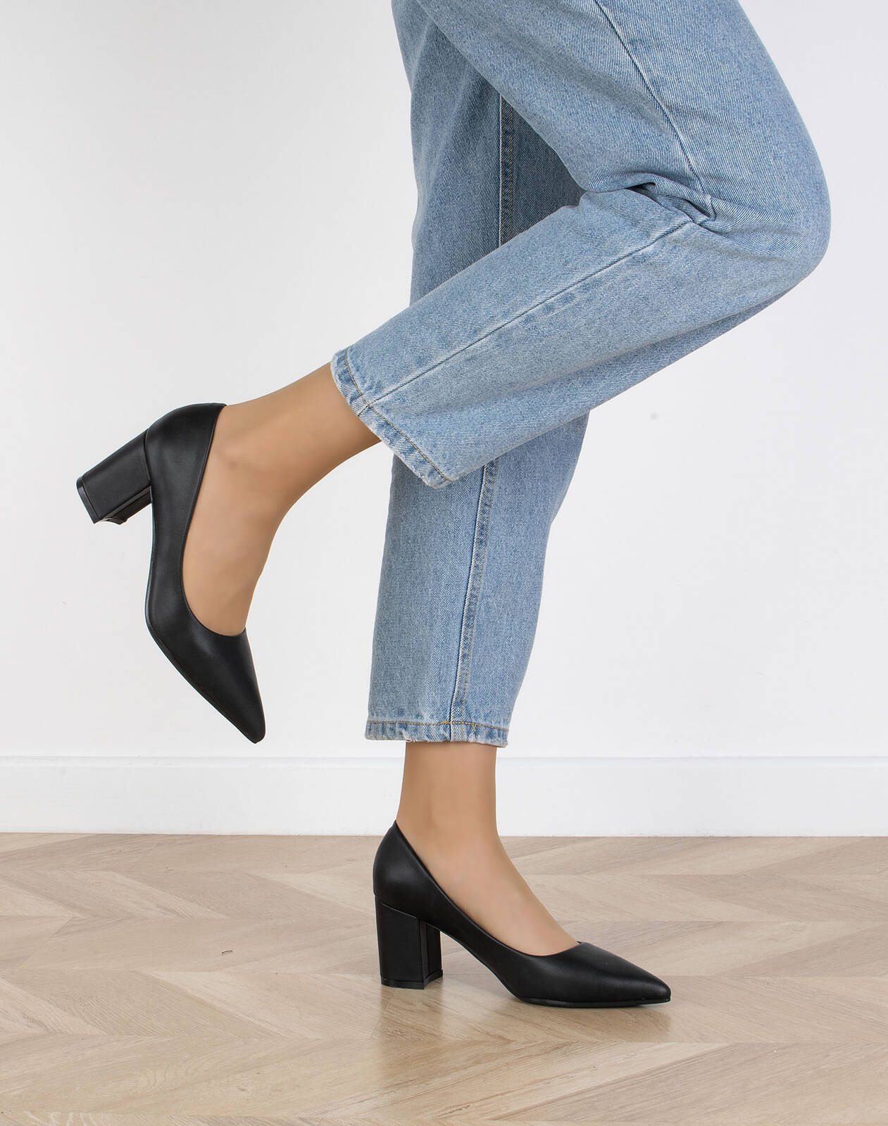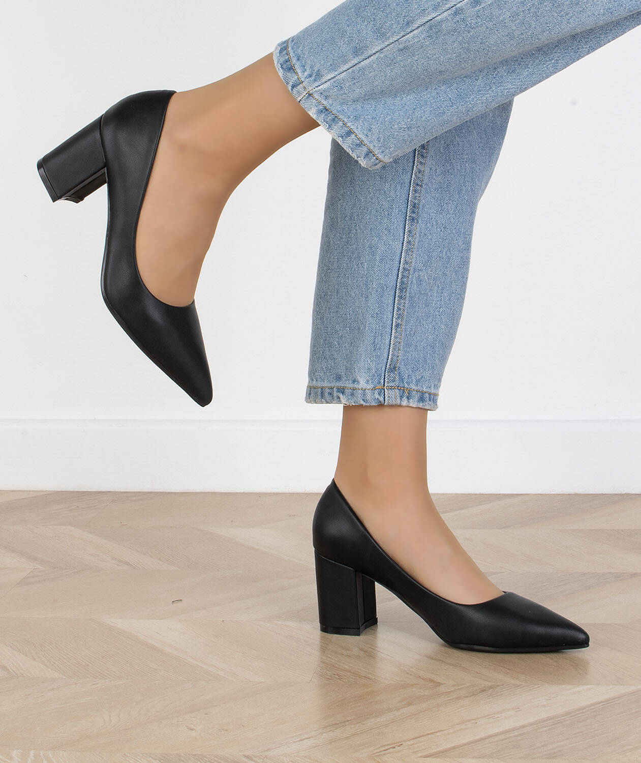 CZÓŁENKA SKÓRZANE CZARNE KLASYCZNE NA SŁUPKU W SZPIC LORET