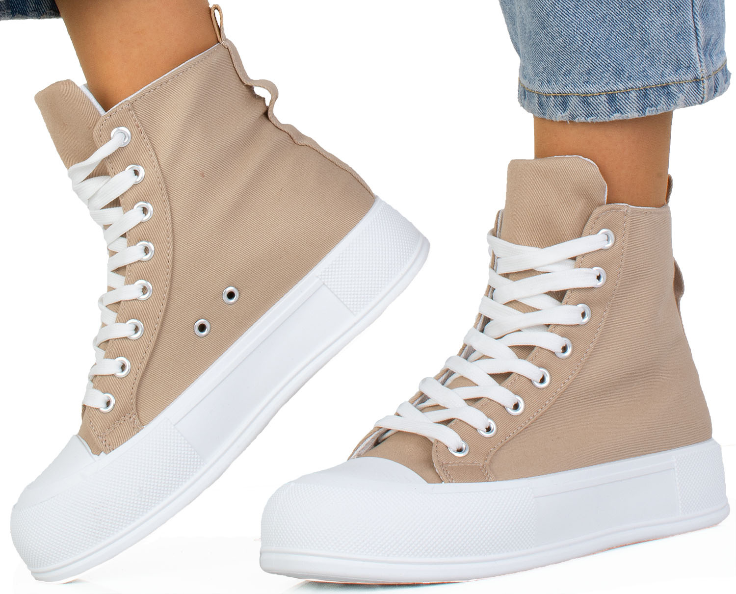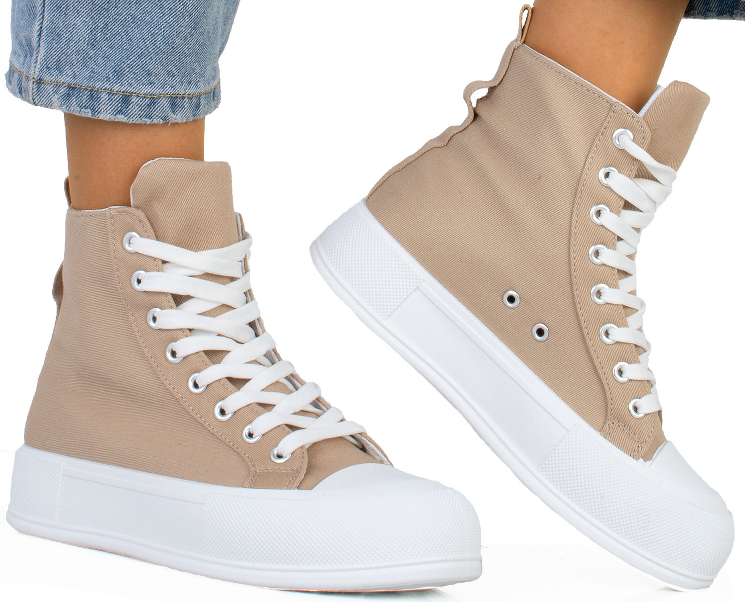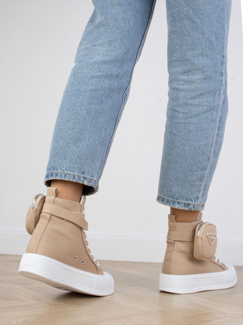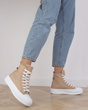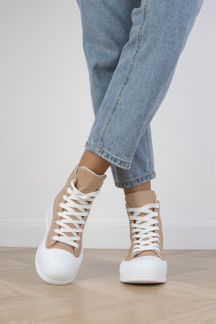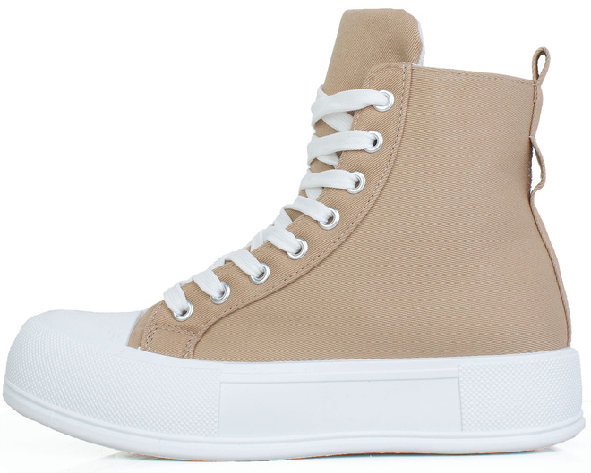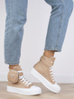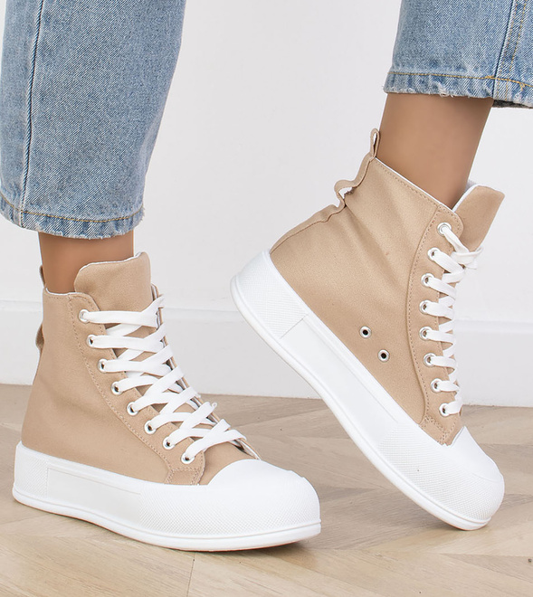 KHAKI BEŻOWE WYSOKIE TRAMPKI NA PLATFORMIE SZNUROWANE LINDA