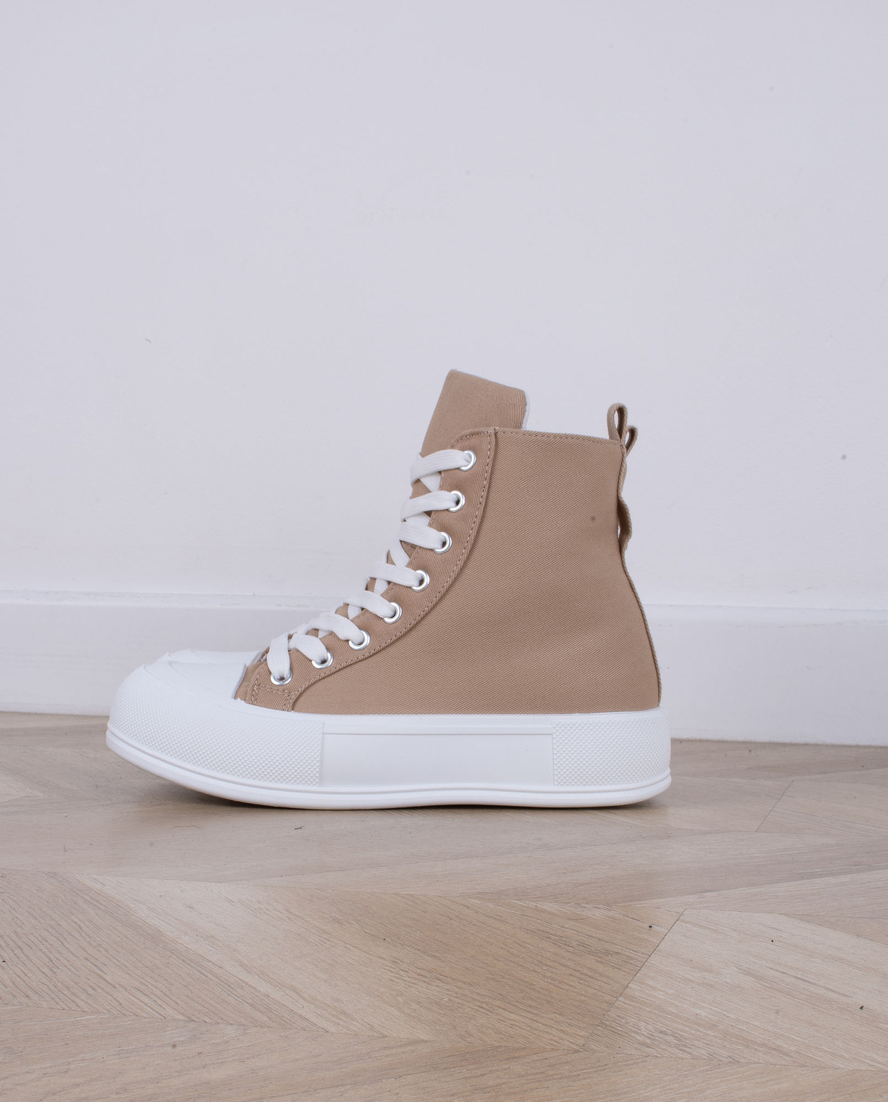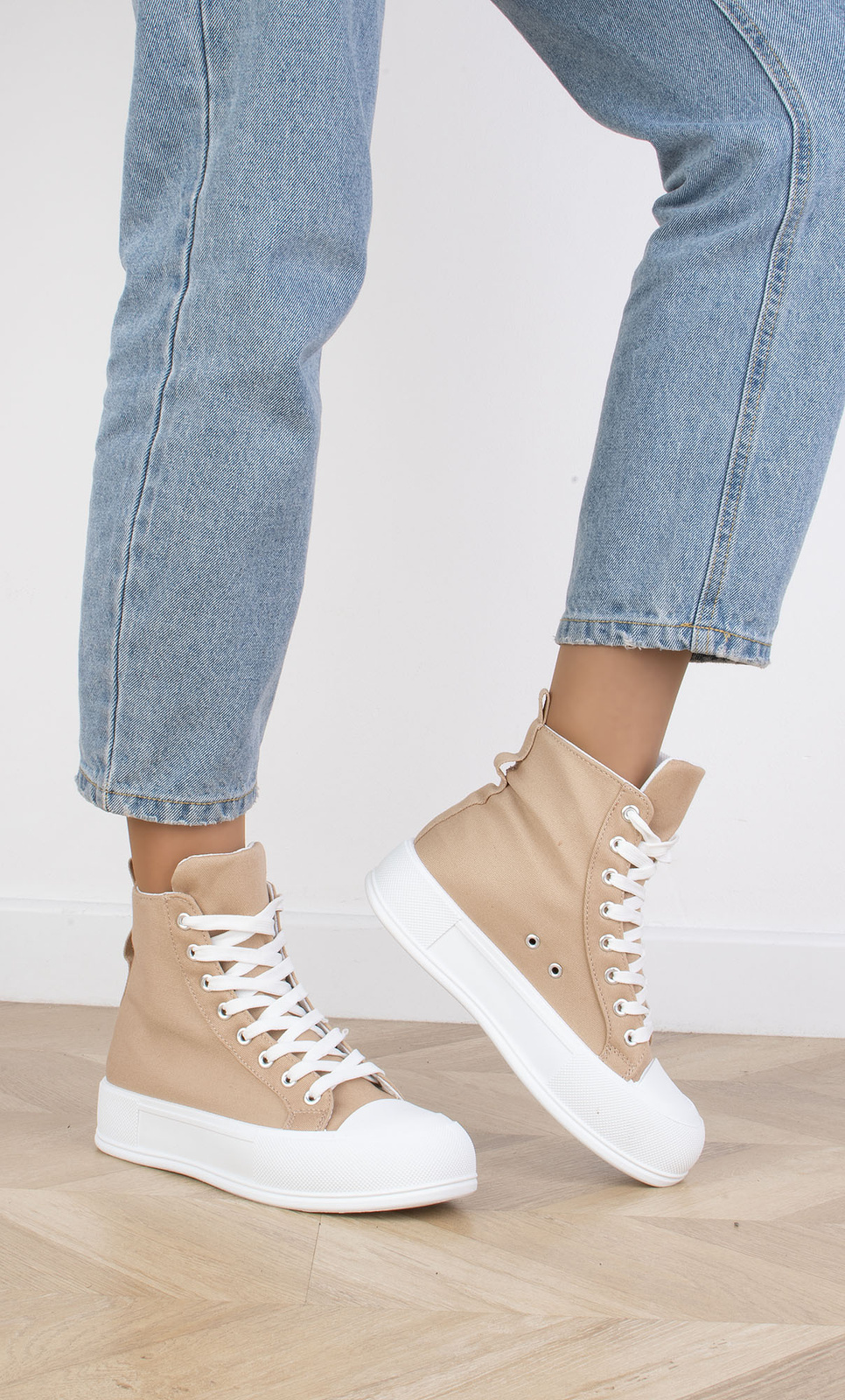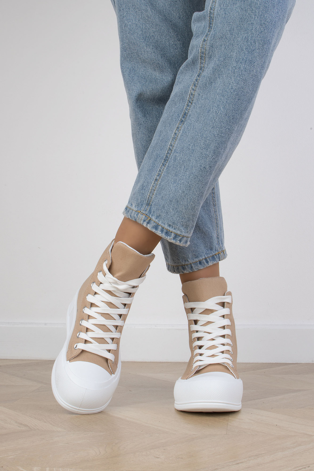 KHAKI BEŻOWE WYSOKIE TRAMPKI NA PLATFORMIE SZNUROWANE LINDA