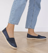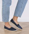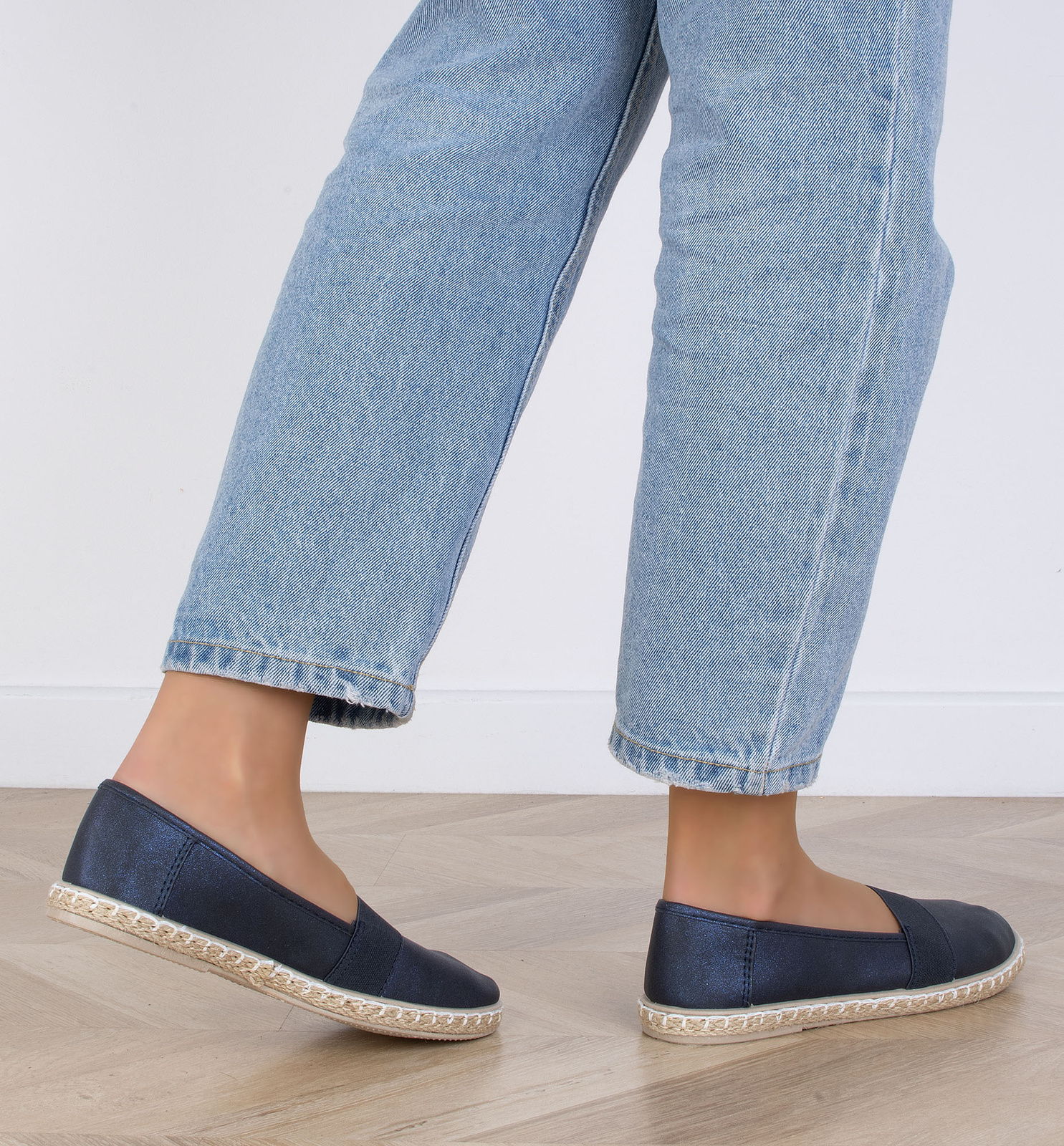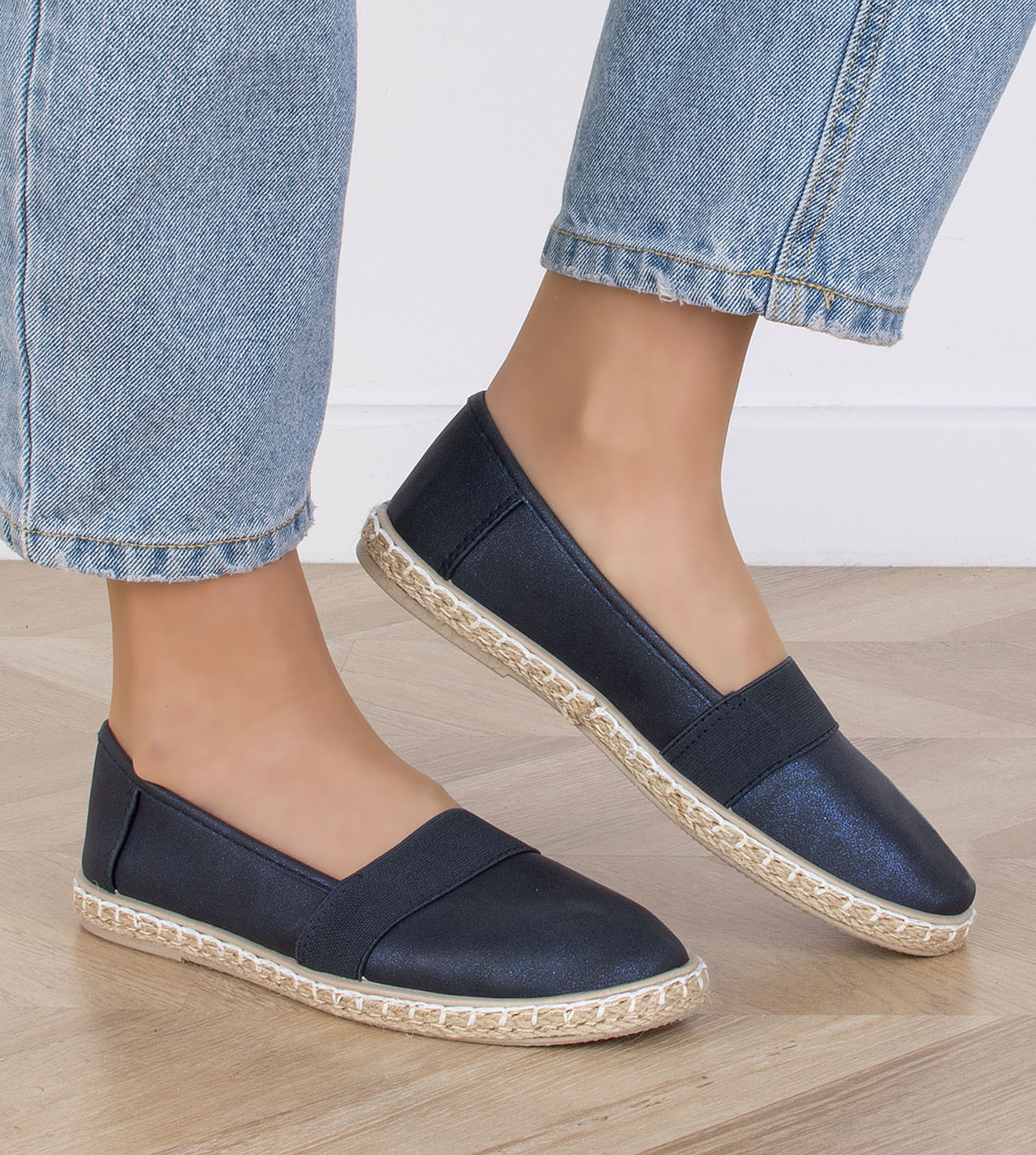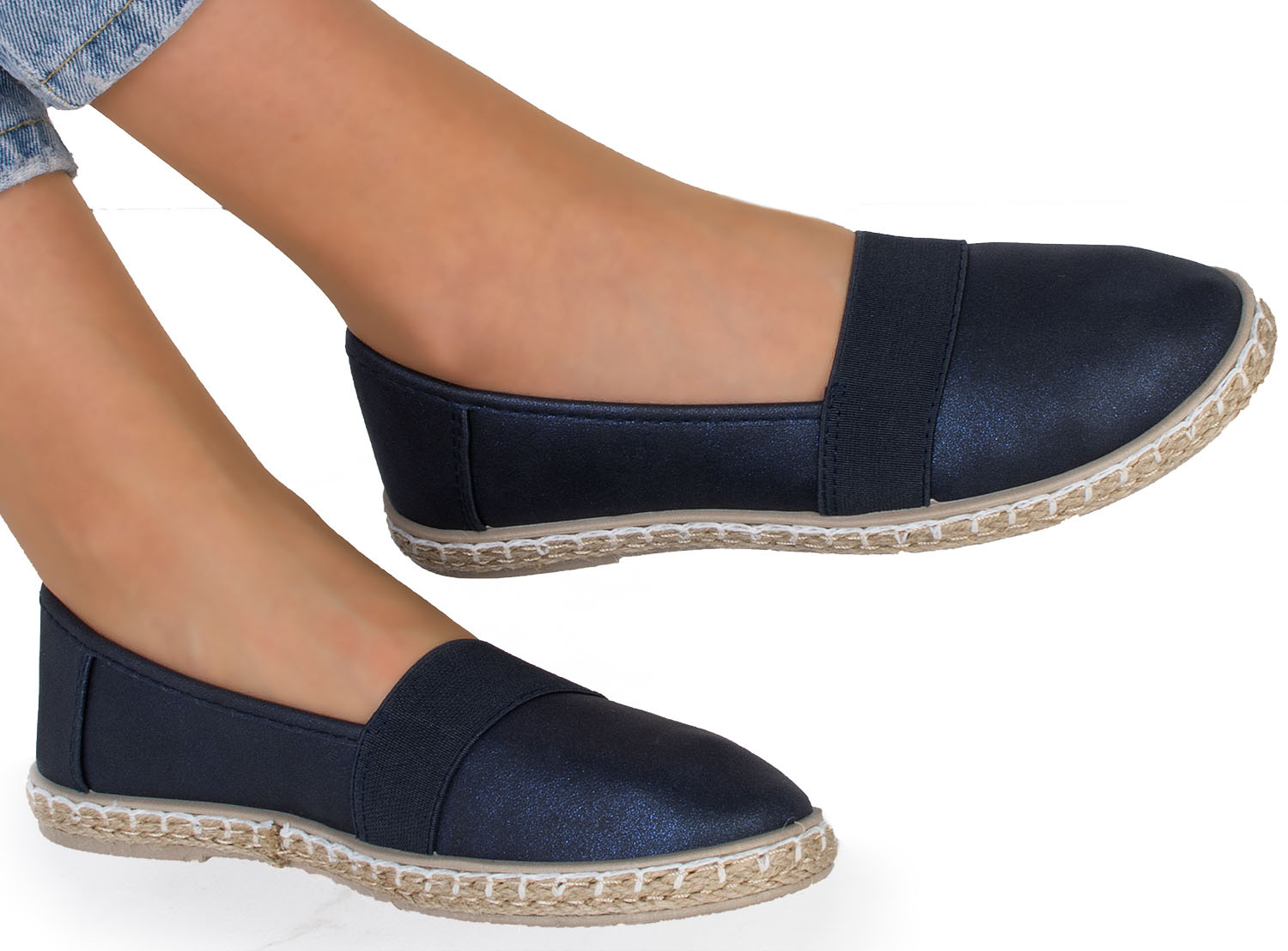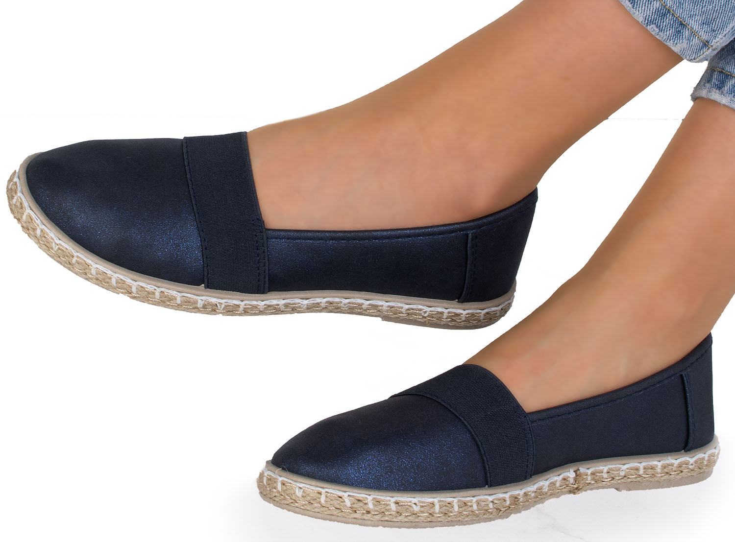Granatowe espadryle balerinki to idealne obuwie na ciepłe letnie dni. Klasyczny fason balerinek połączony z lekką podeszwą w stylu espadryli tworzy wygodne i stylowe obuwie, które doskonale sprawdzi się w letnich stylizacjach.