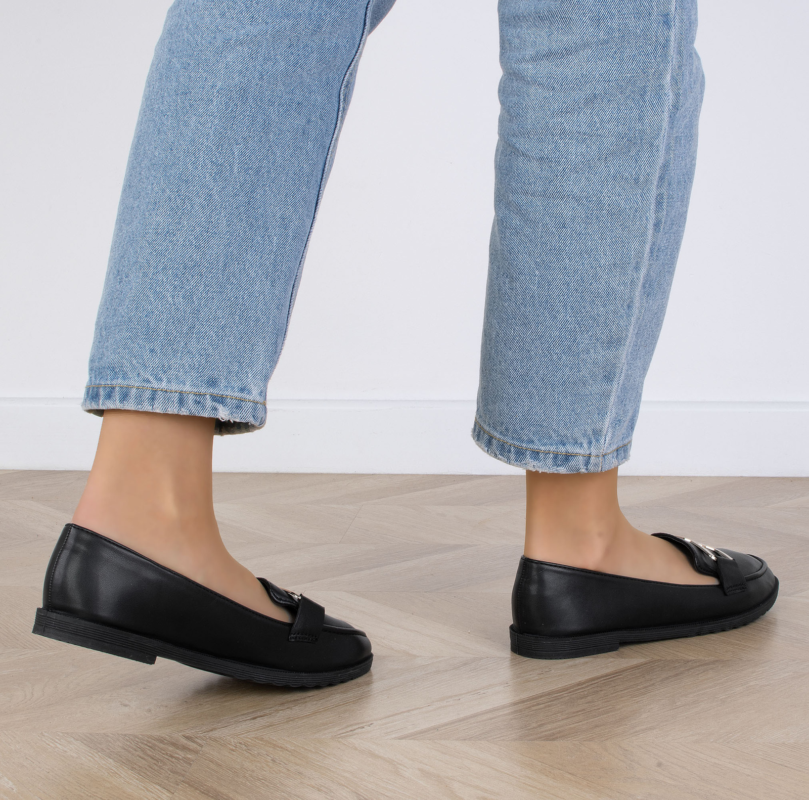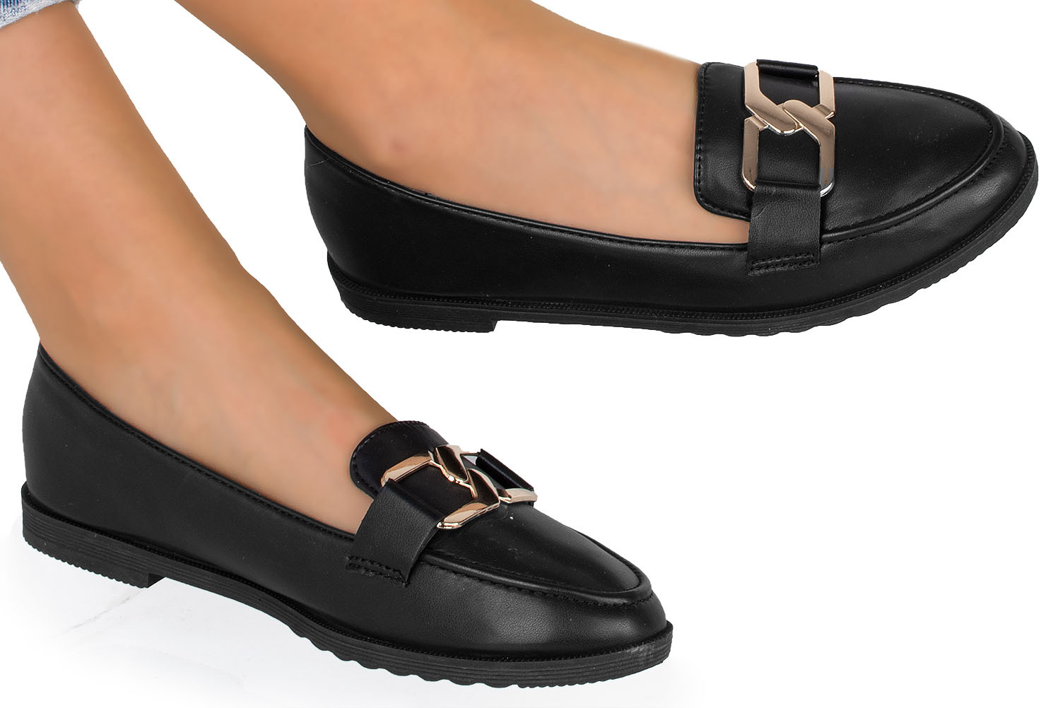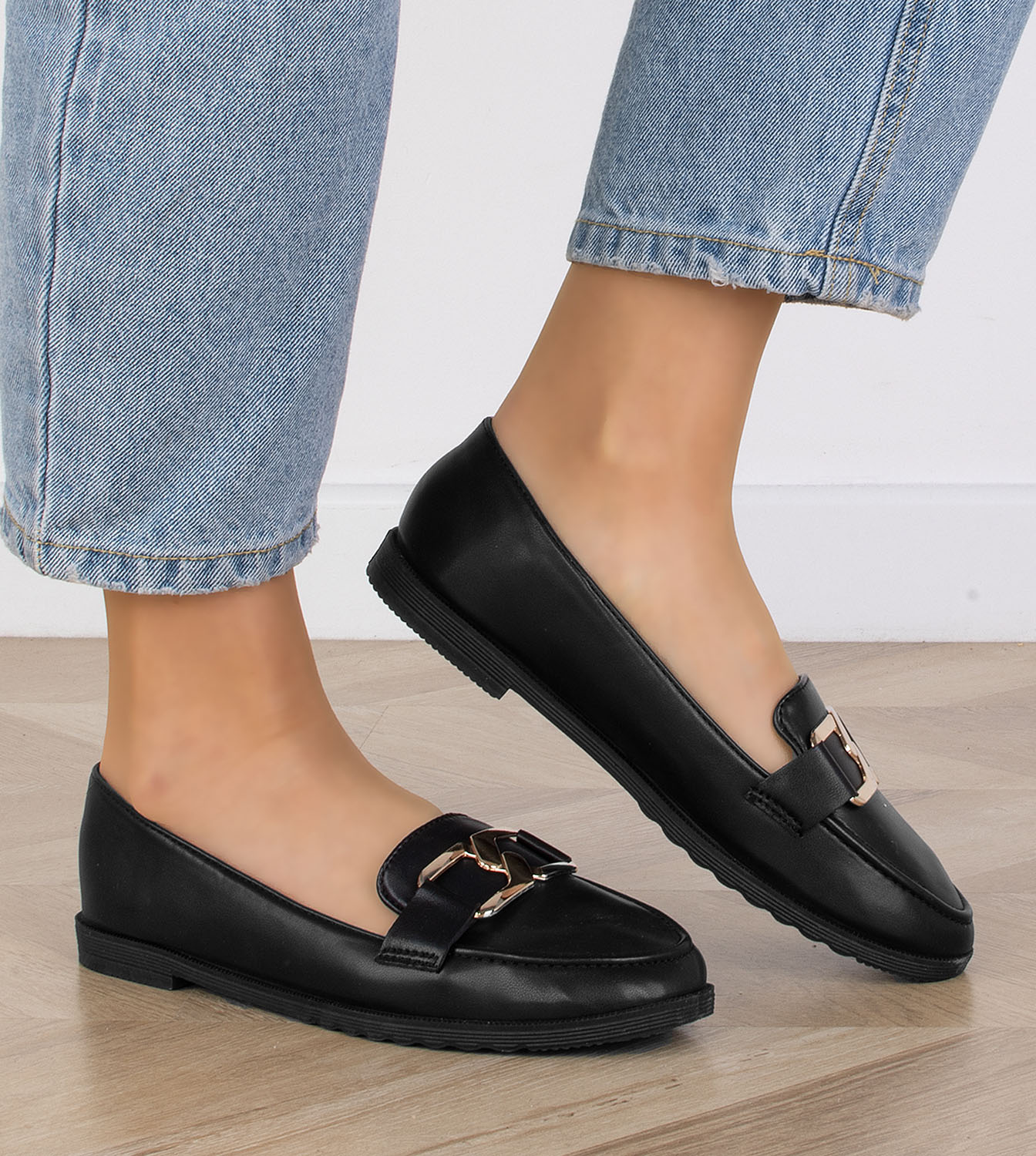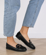 CZARNE SKÓRZANE MOKASYNY Z ŁAŃCUSZKIEM EMERY