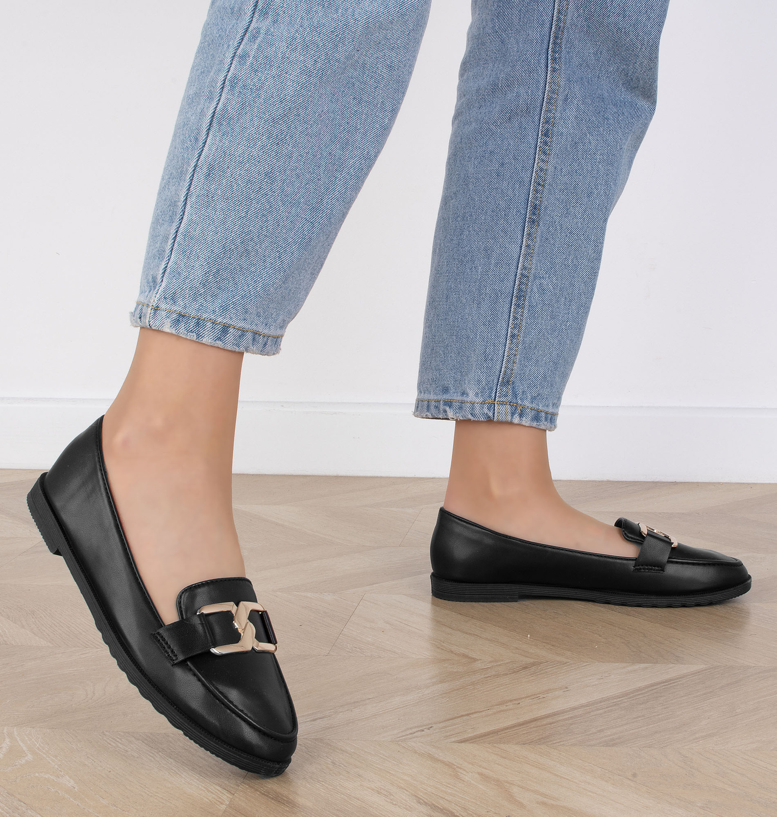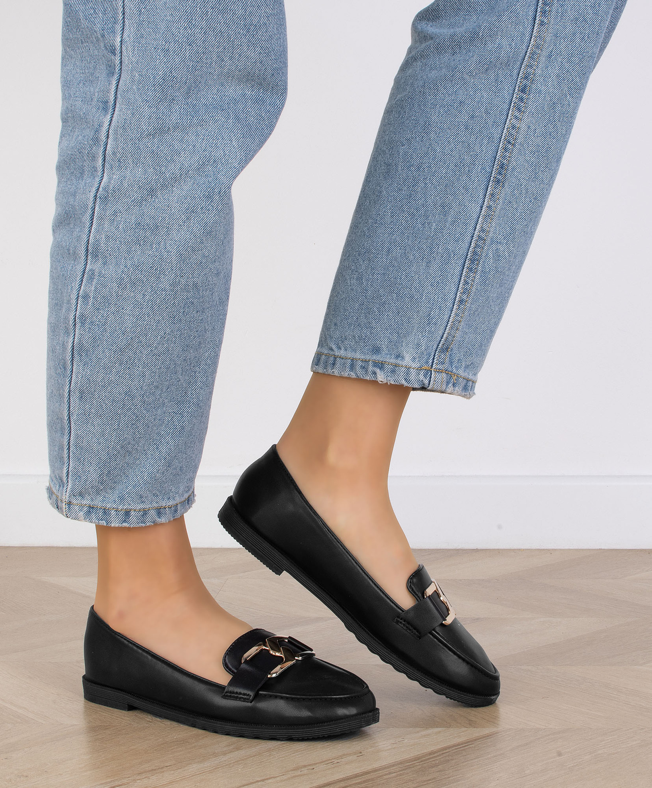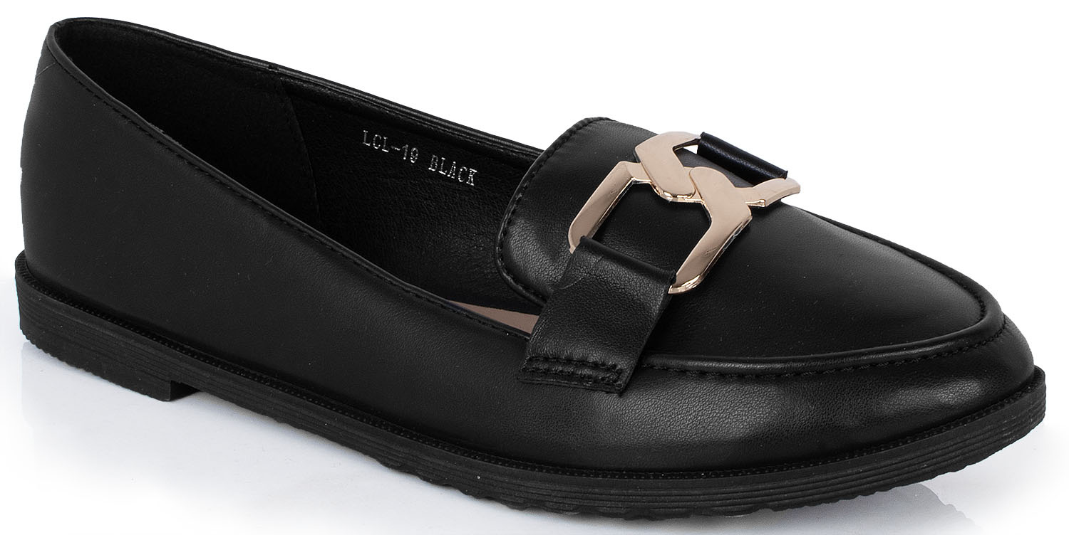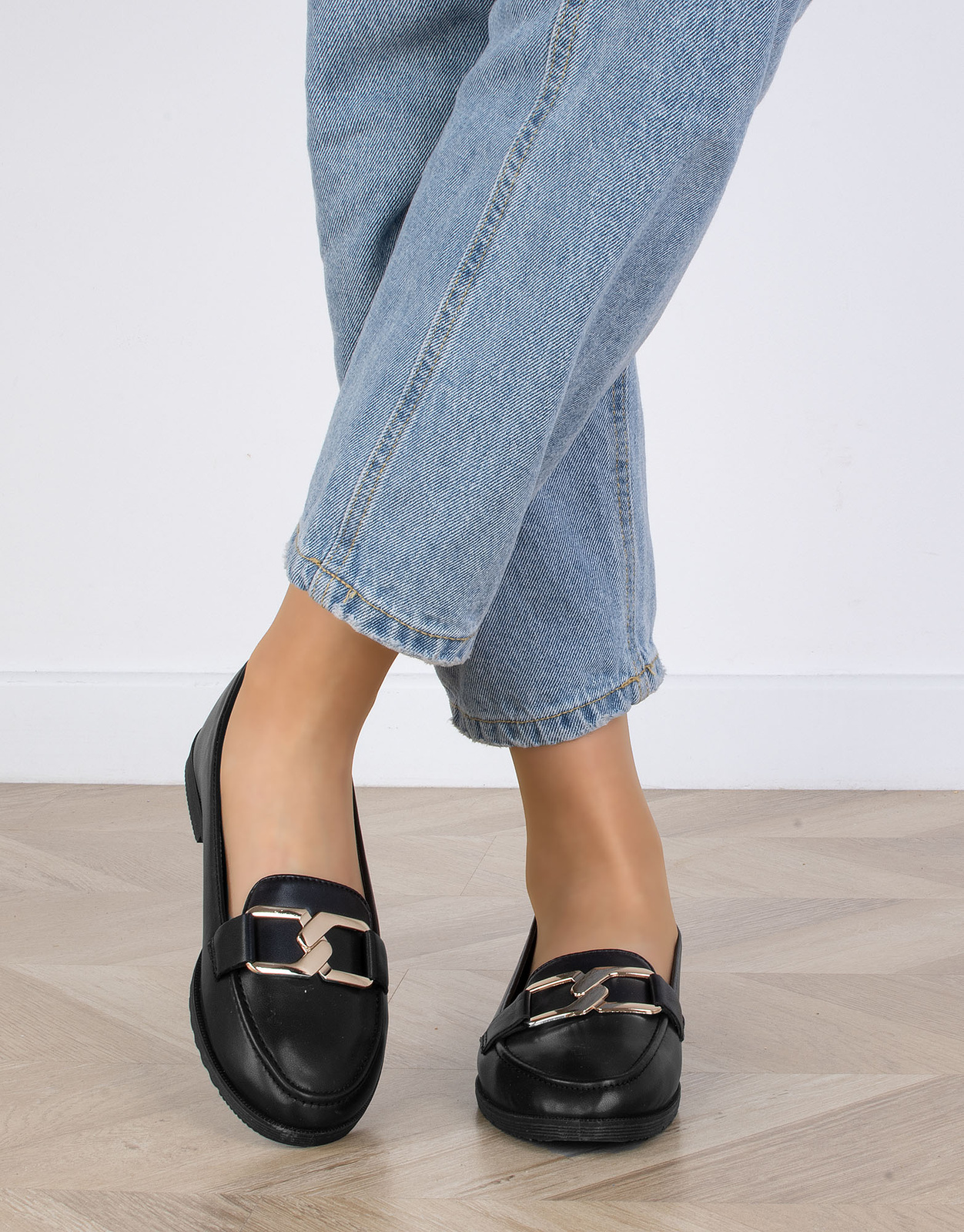 CZARNE SKÓRZANE MOKASYNY Z ŁAŃCUSZKIEM EMERY