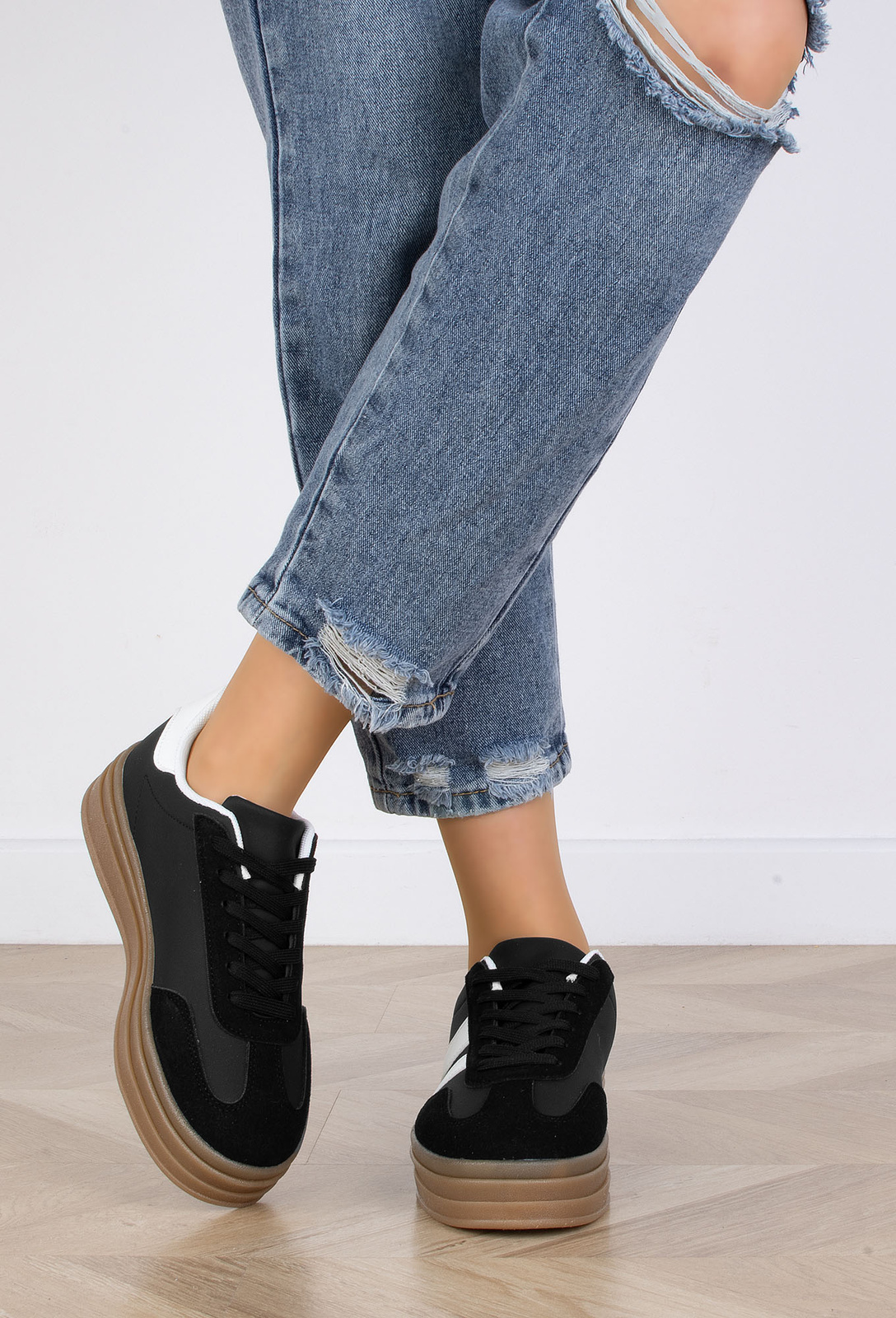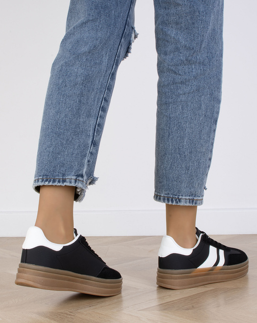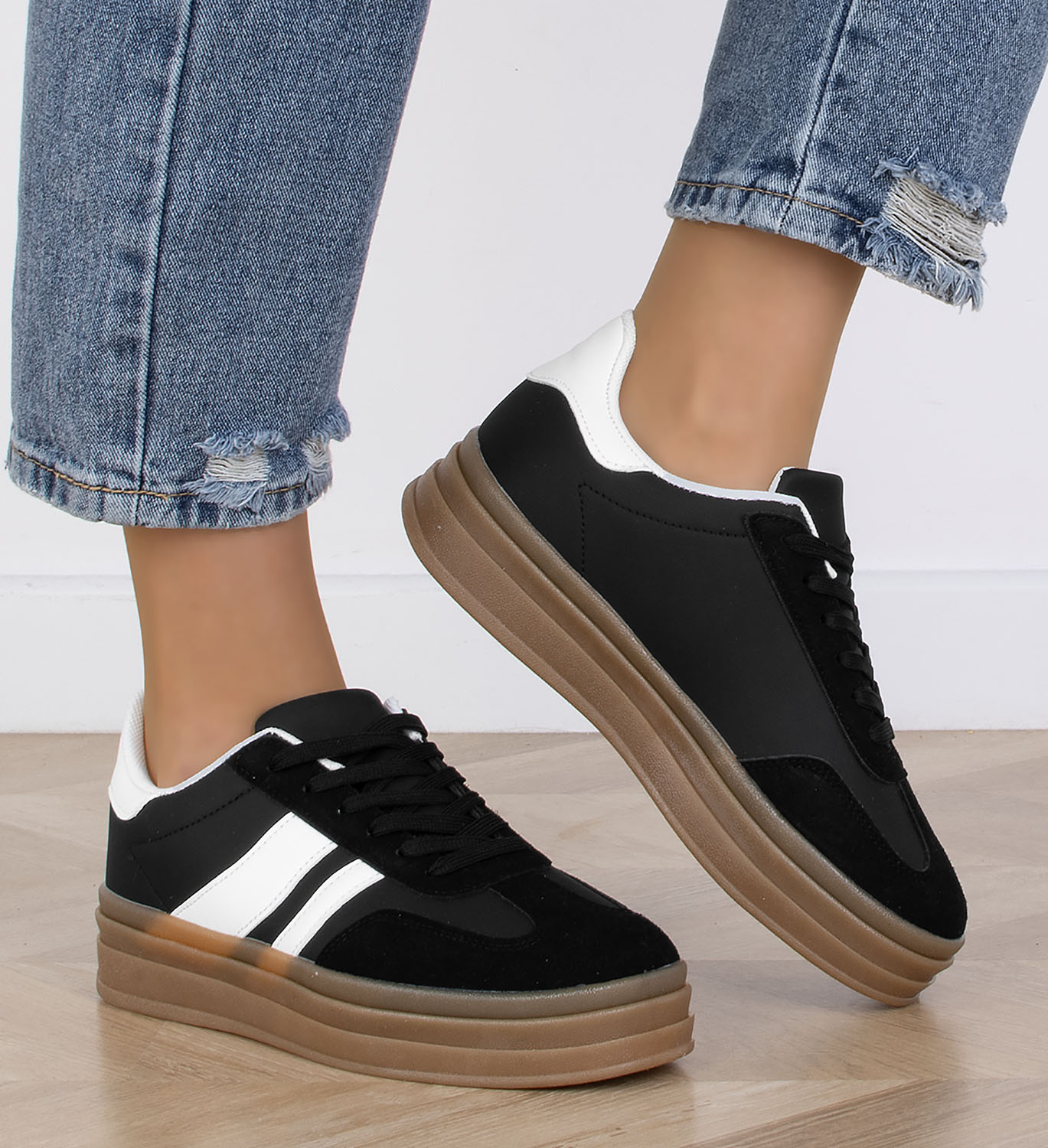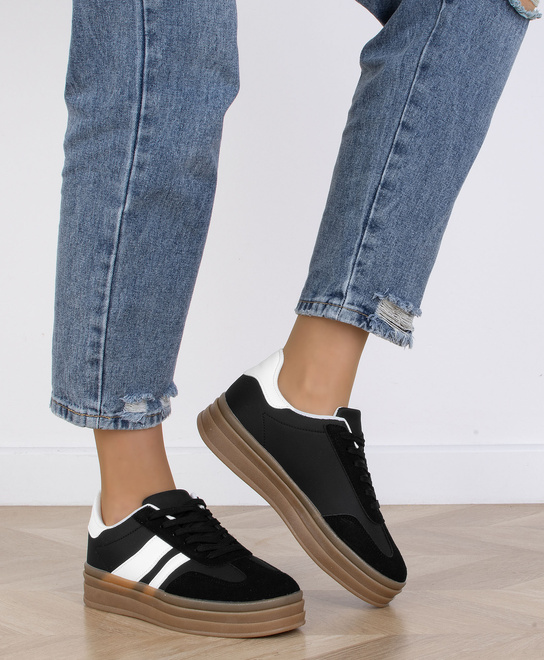 CZARNE TRAMPKI SNEAKERSY NA PLATFORMIE CUTES