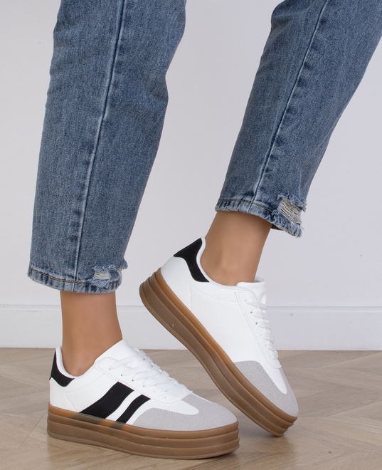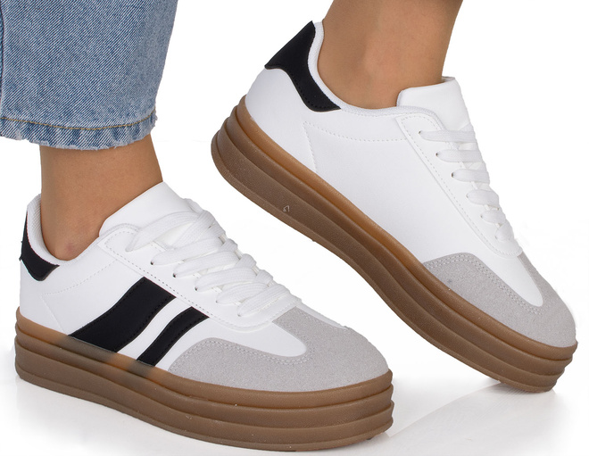 BIAŁE TRAMPKI SNEAKERSY NA PLATFORMIE CUTES