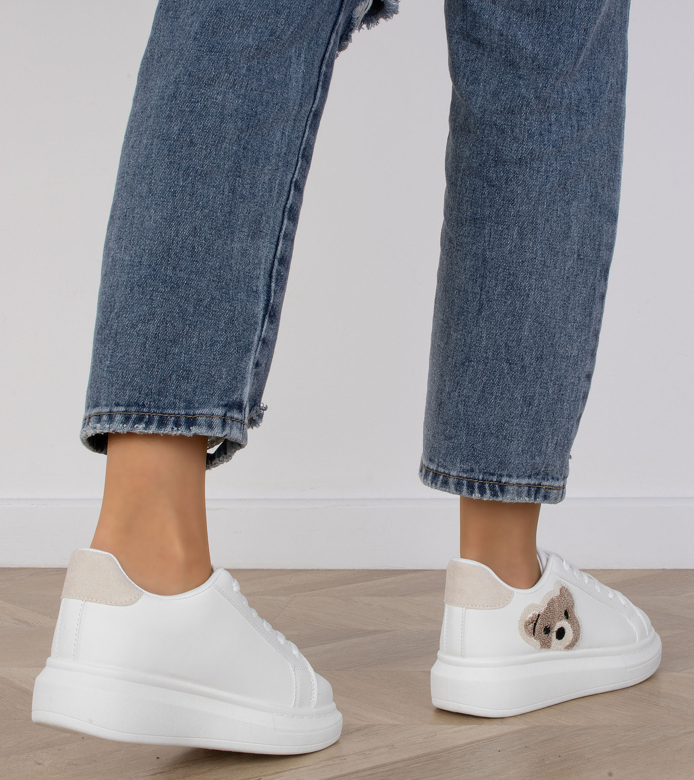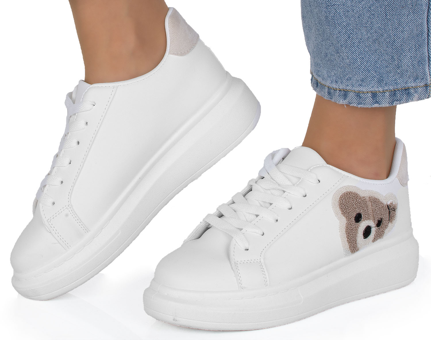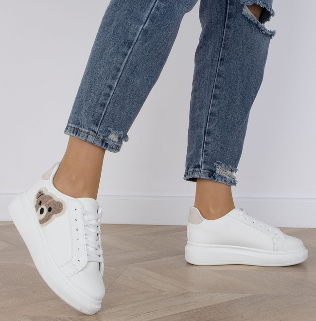 BIAŁE SNEAKERSY TRAMPKI KLASYCZNE NA PLATFORMIE Z MISIEM MOMO