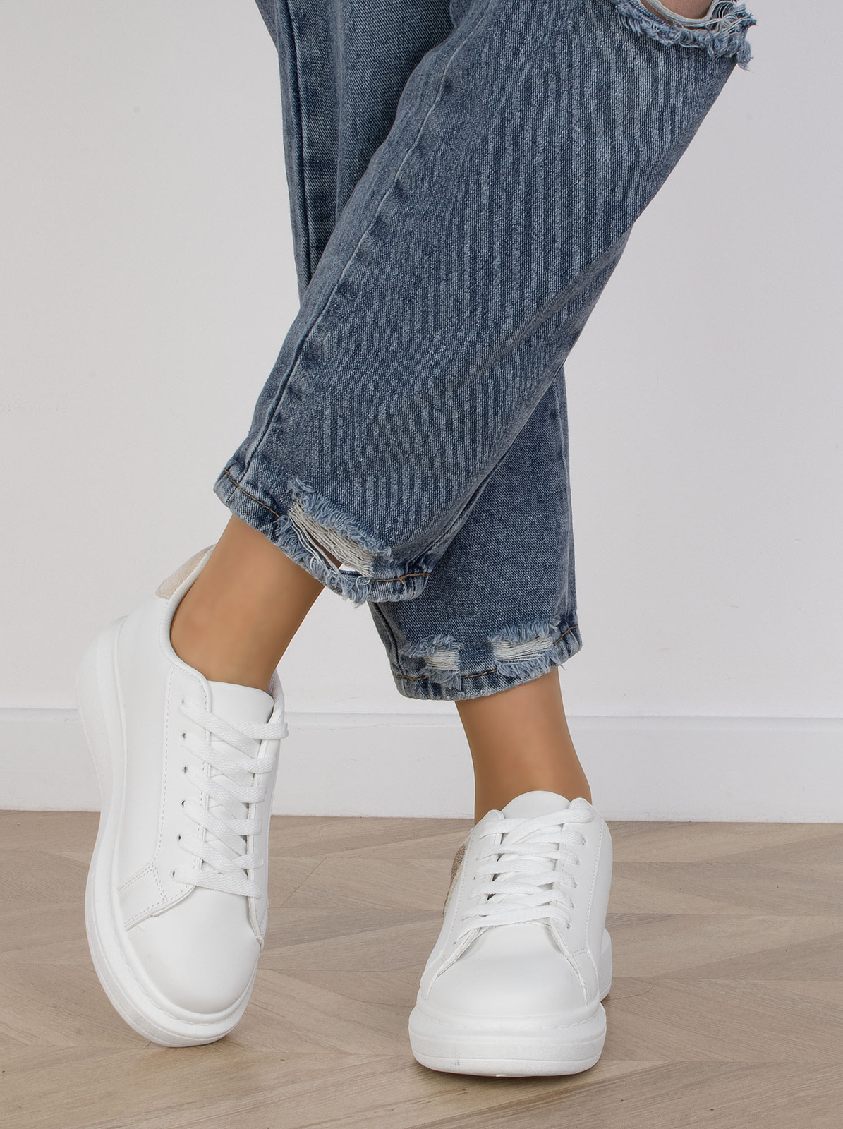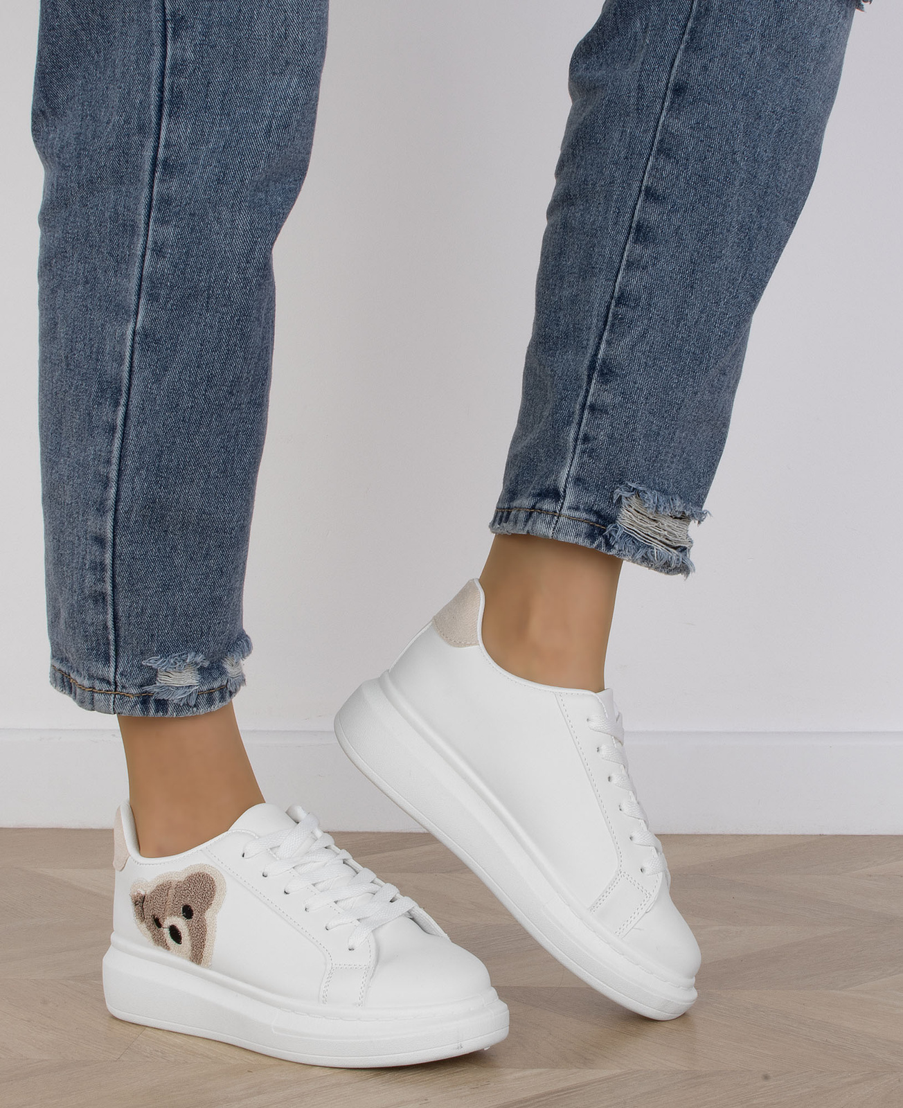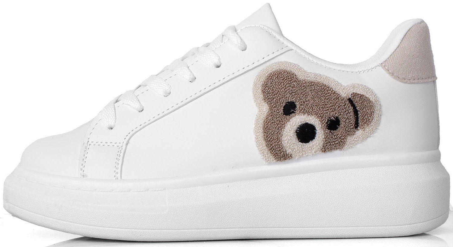 BIAŁE SNEAKERSY TRAMPKI KLASYCZNE NA PLATFORMIE Z MISIEM MOMO