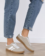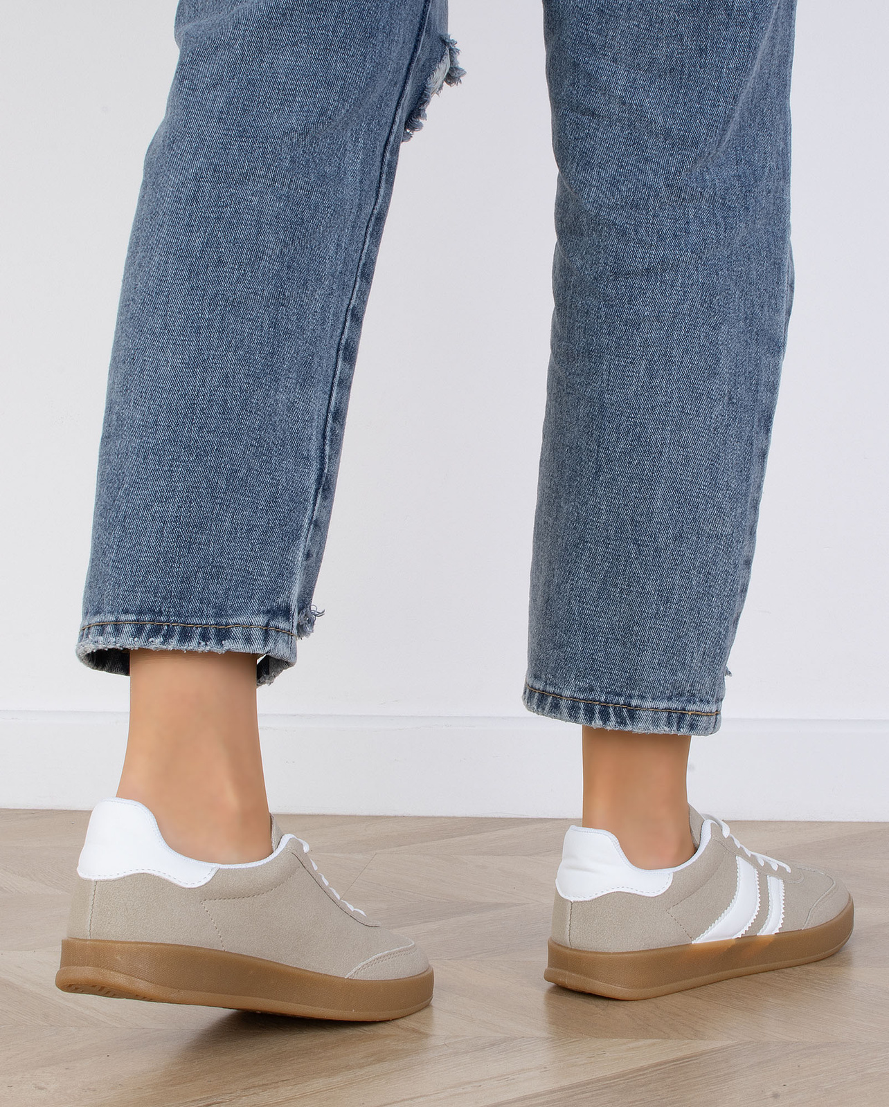 • Beżowe sneakersy sportowe trampki to idealny wybór dla wszystkich kobiet, które lubią wyglądać modnie i czuć się wygodnie. Choć są to buty sportowe, możesz je nosić na co dzień, gdyż są bardzo wygodne.