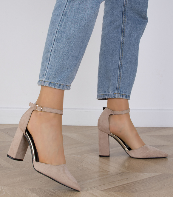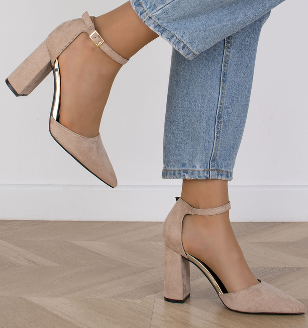 Jeśli szukasz czółenek, które będą wyglądać zarówno elegancko, jak i modnie, to mamy coś dla Ciebie! Nasze czółenka wykonane są z wysokiej jakości zamszu, mają obcas typu słupek i zapięcie wokół kostki na sprzączkę. Model ma spiczasty nosek, który dodaje mu klasycznego charakteru. Możesz je nosić na wiele różnych okazji, od oficjalnych spotkań po codzienne wyjścia. Dzięki swojemu uniwersalnemu wyglądowi będą stanowić doskonały dodatek do Twojej garderoby. Bądź pewna, że będziesz wyglądać w nich pięknie i modnie!