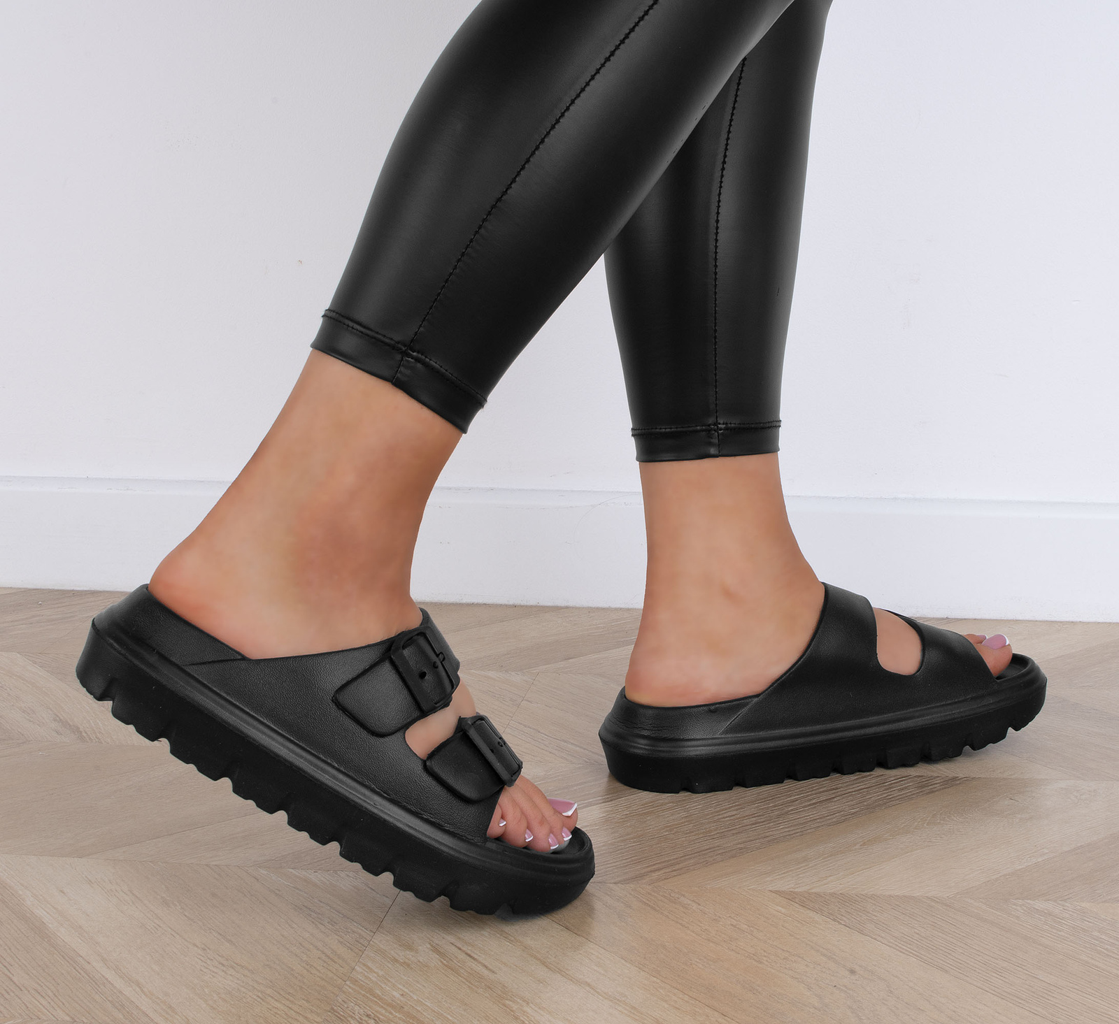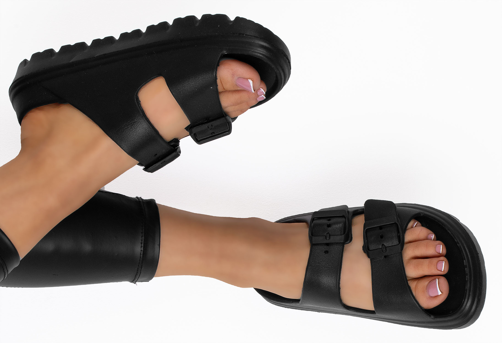 CZARNE DAMSKIE KLAPKI WYGODNE NA PLATFORMIE CASANDRA