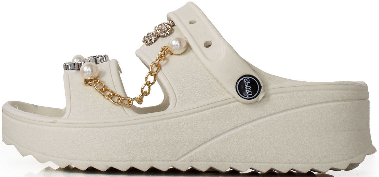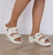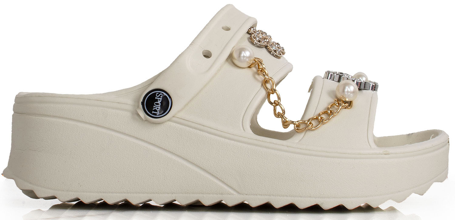 BEŻOWE LEKKIE KLAPKI SANDAŁY Z OZDOBAMI AURORA