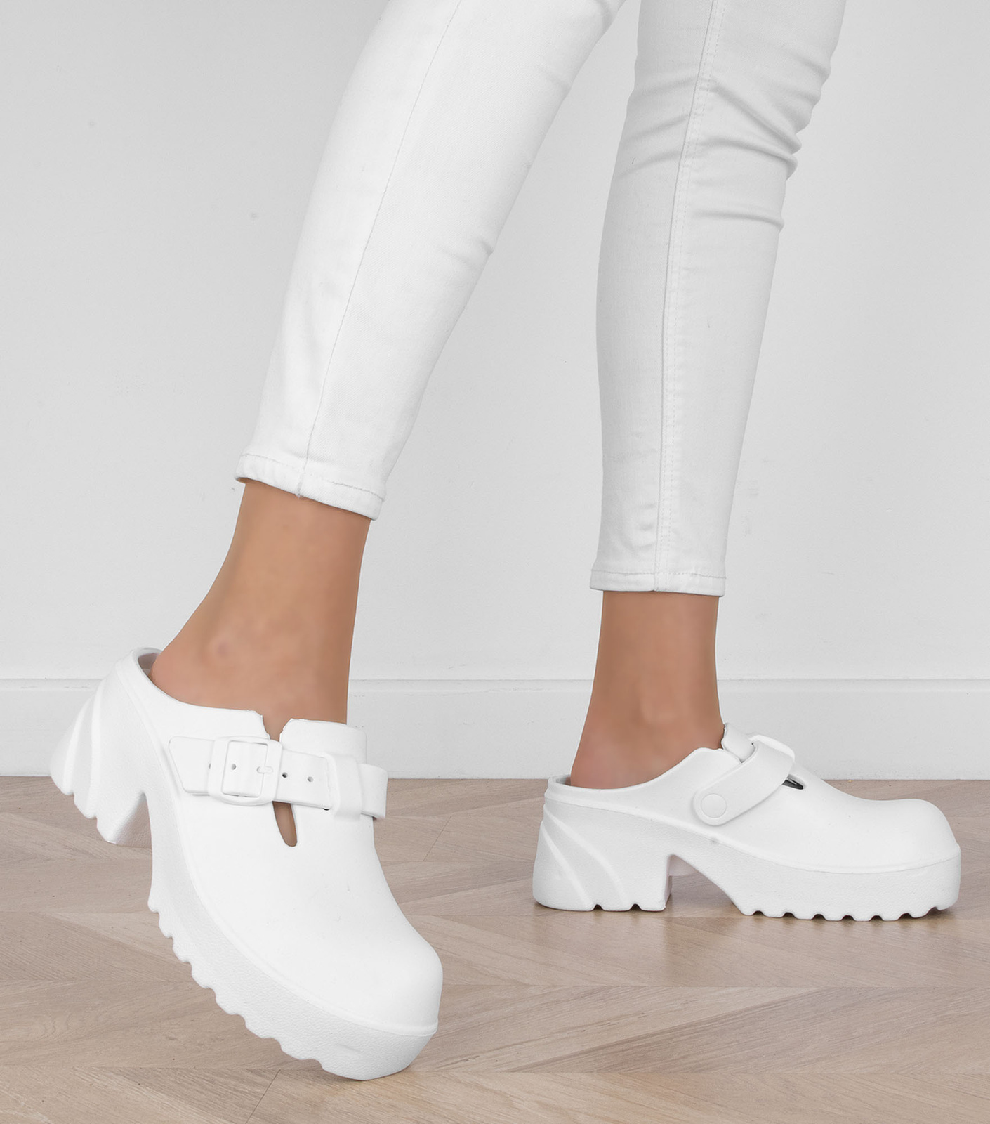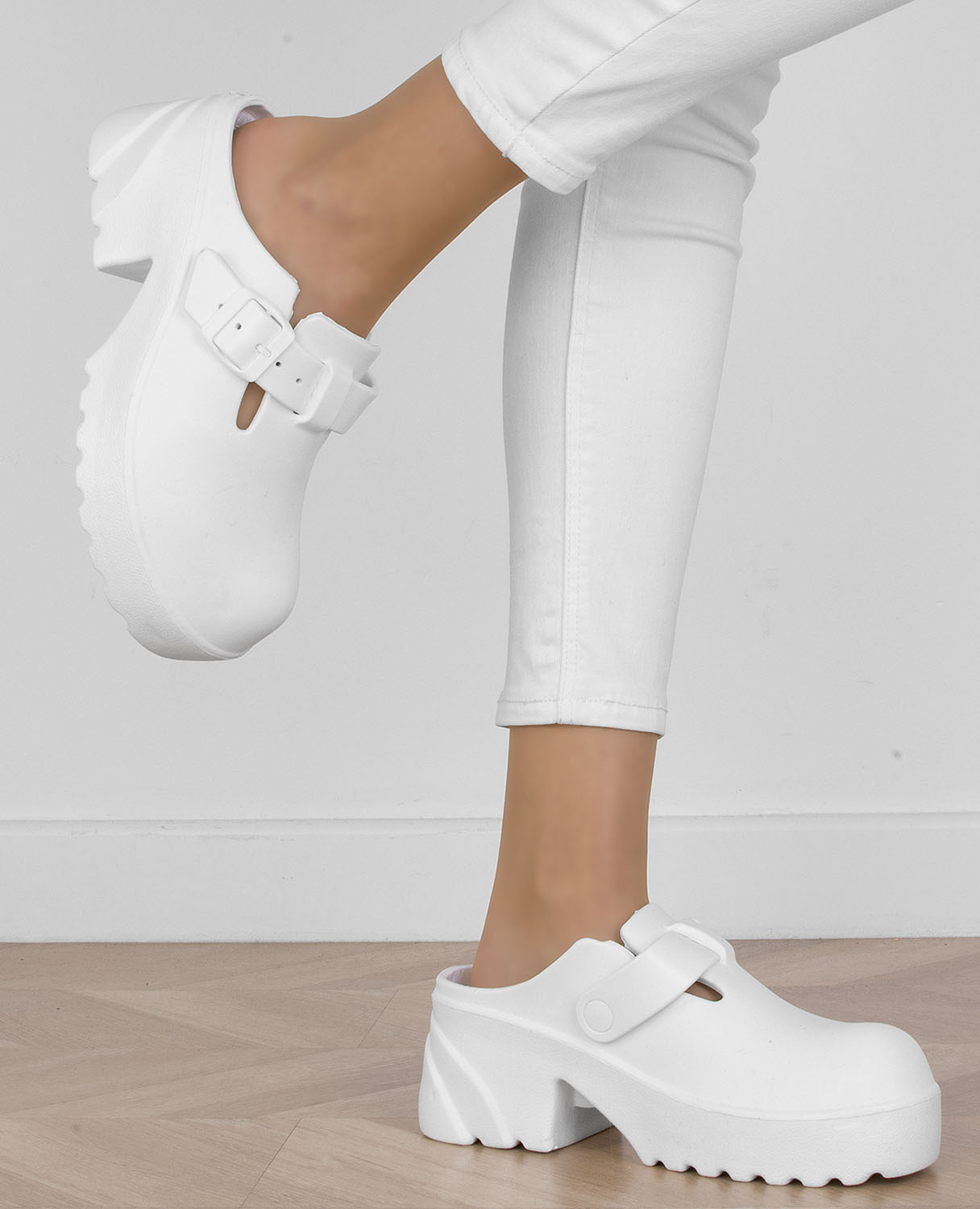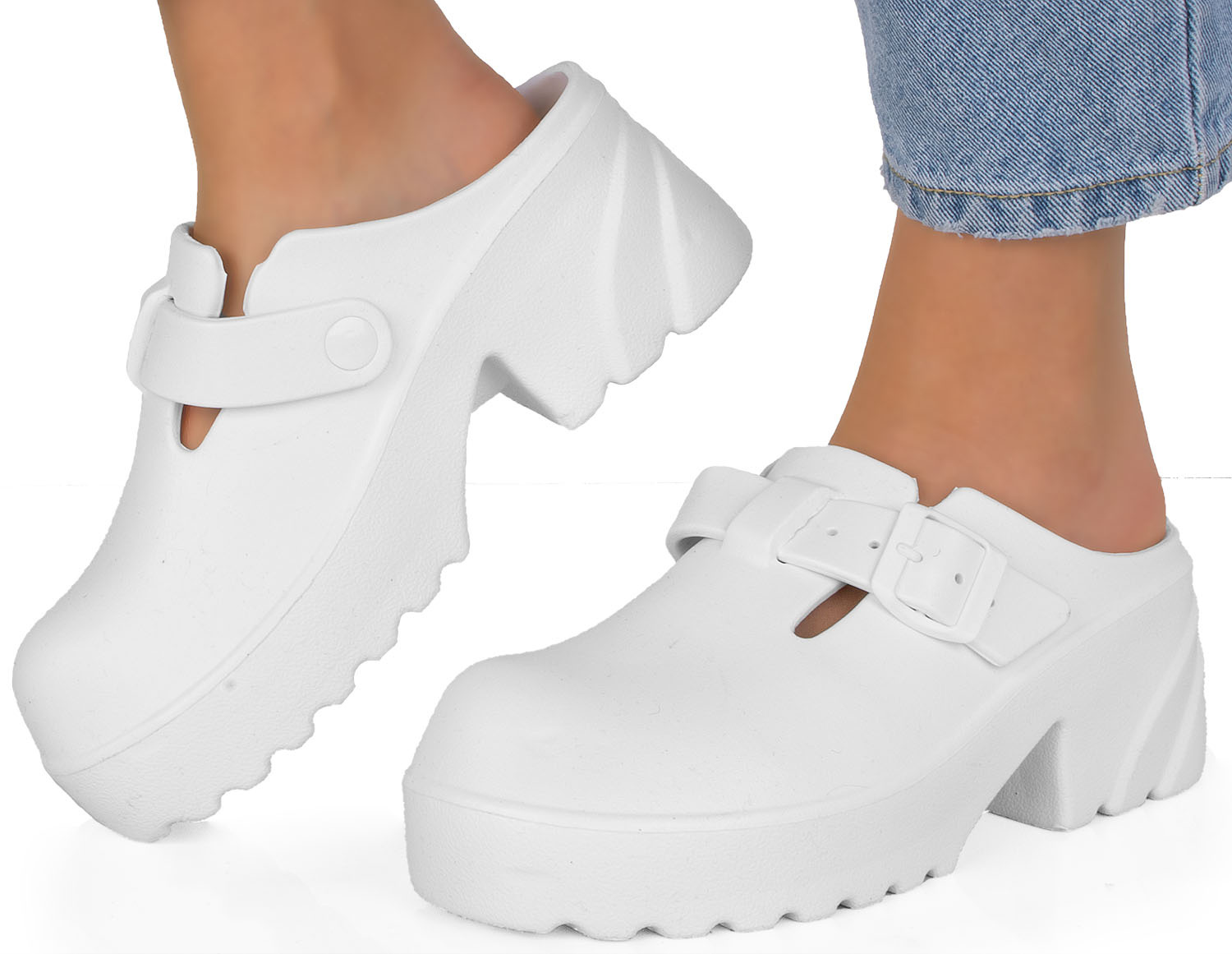 BIAŁE KLAPKI CHODAKI NA PLATFORMIE MEDINA