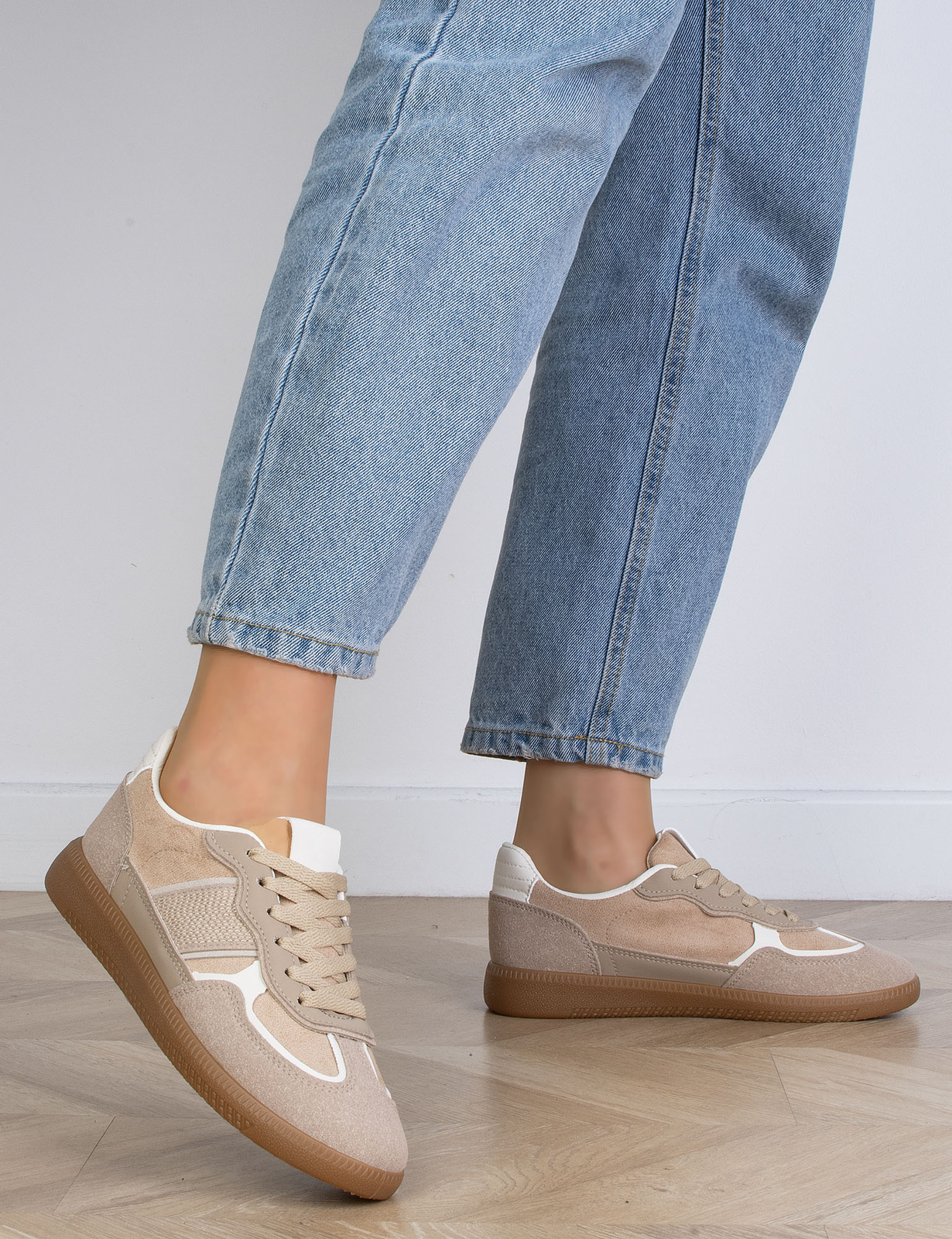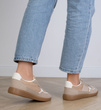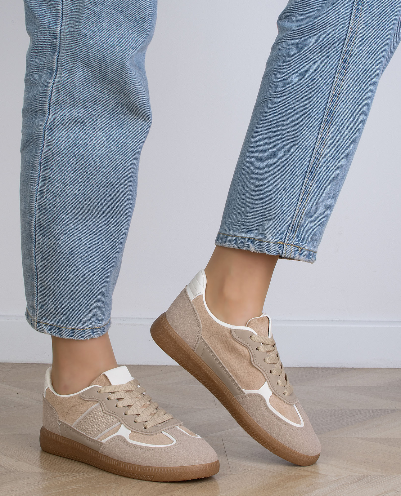 • Beżowe sneakersy sportowe trampki to idealny wybór dla wszystkich kobiet, które lubią wyglądać modnie i czuć się wygodnie. Choć są to buty sportowe, możesz je nosić na co dzień, gdyż są bardzo wygodne.