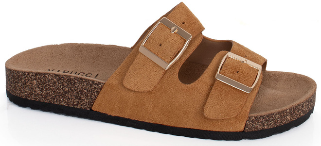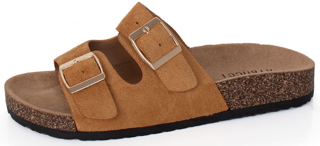 Klapki z klamrami to doskonały wybór na wiosnę i lato. Ich uniwersalny model sprawia, że pasują do wielu stylizacji. Wykonane z wysokiej jakości materiałów, wyglądają i czują się wyjątkowo. Wkładka zamszowa zapewnia wygodę, a paski z klamrami dodają im elegancji. Podeszwa typu korek zapewnia stabilność i lekkość. Dzięki temu są idealne do noszenia na co dzień. Klapki z klamrami to idealny wybór dla wszystkich kobiet, które pragną połączyć wygodę i modny wygląd.