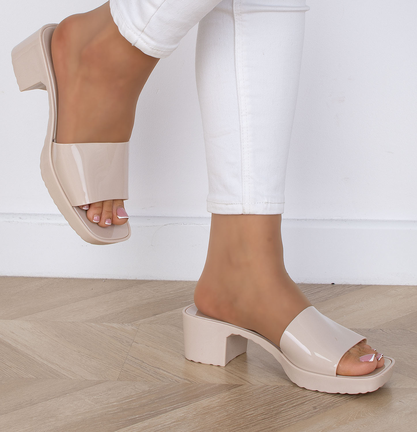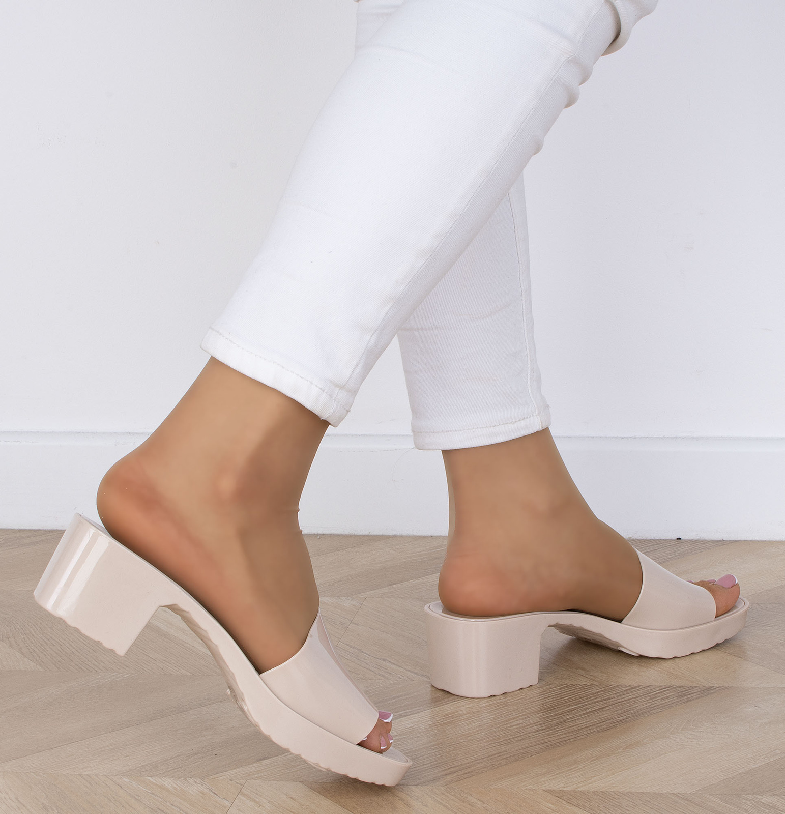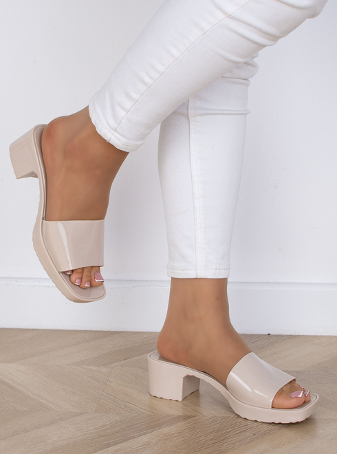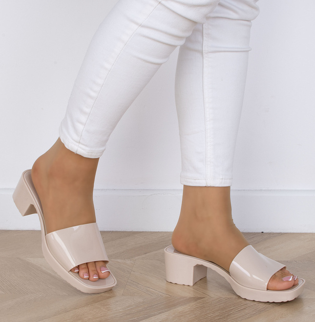 Beżowe gumowe klapki na niskim obcasie to doskonała propozycja na ciepłe dni. Zapewniają one nie tylko komfort noszenia, ale także elegancki wygląd. Klapki posiadają wygodny niski obcas, który zapewnia stabilność podczas chodzenia, jednocześnie dodając lekkości i subtelności całej stylizacji. Beżowe klapki na niskim obcasie są niezwykle uniwersalne i łatwo dopasowują się do różnych stylizacji, zarówno codziennych, jak i bardziej eleganckich. Idealnie sprawdzą się zarówno na spacerze po mieście, jak i podczas letnich spotkań ze znajomymi.