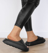 Czarne gumowe klapki to idealne obuwie na lato, które łączy w sobie wygodę i funkcjonalność. Ich klasyczny czarny kolor sprawia, że pasują do wielu różnych stylizacji, zarówno na plażę, jak i na spacer po mieście czy basen.