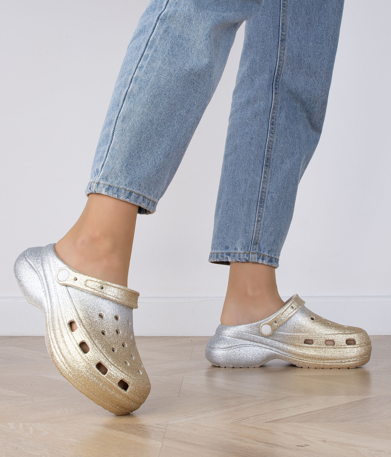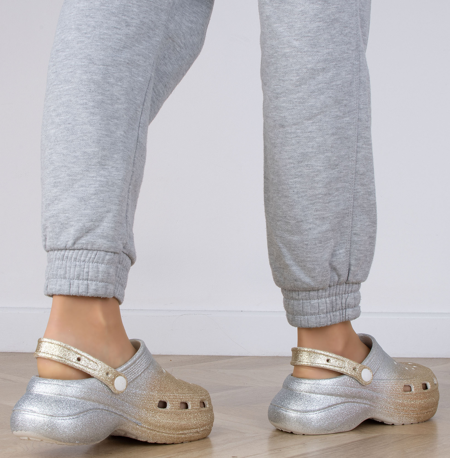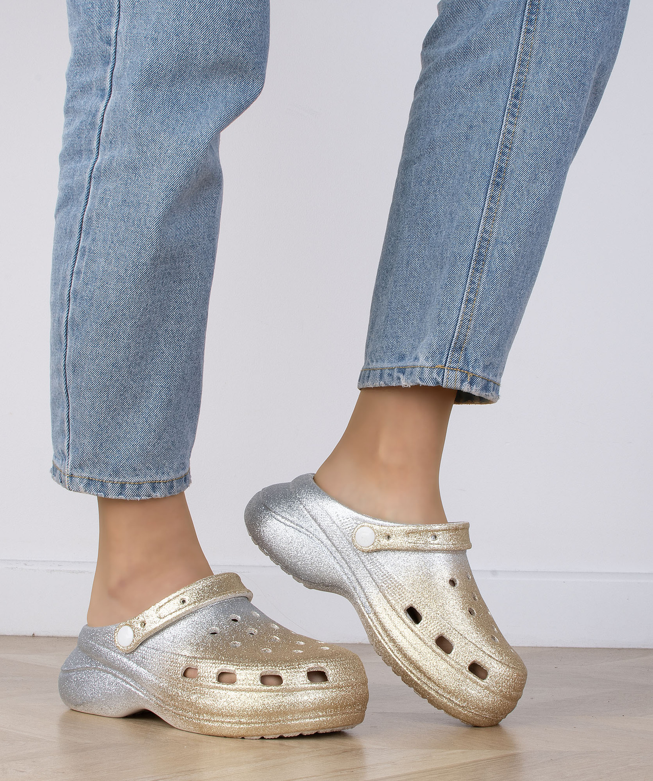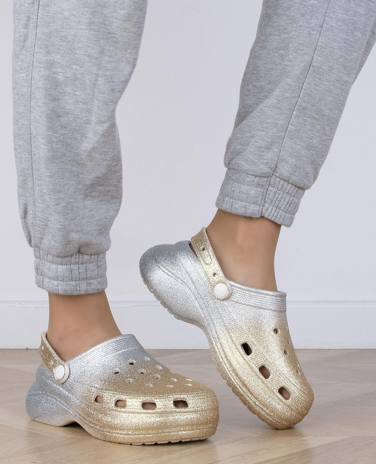 ZŁOTE BROKATOWE DAMSKIE PIANKOWE KLAPKI NA GRUBEJ PODESZWIE CITRA