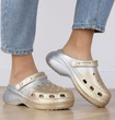 Złote brokatowe piankowe klapki to idealne obuwie na lato, które łączy w sobie wygodę i funkcjonalność. Ich kolor sprawia, że pasują do wielu różnych stylizacji, zarówno na plażę, jak i na spacer po mieście czy basen. Te klapki posiadają cholewkę wykonaną z elastycznego i wytrzymałego tworzywa piankowego, co gwarantuje trwałość i łatwość w utrzymaniu czystości. Miękka wkładka zapewnia dodatkowy komfort podczas chodzenia, a solidna podeszwa z antypoślizgowym wzorem zapewnia stabilność na różnych powierzchniach. Złote brokatowe piankowe klapki są nie tylko praktycznym obuwiem na co dzień, ale również doskonale sprawdzą się na plaży, w basenie czy w ogrodzie. Ich prosty design i funkcjonalność sprawiają, że są niezastąpione podczas letnich aktywności.