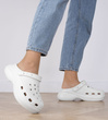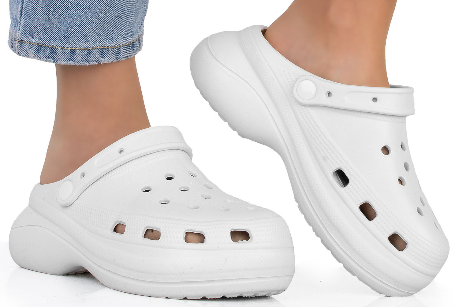 Białe piankowe klapki to idealne obuwie na lato, które łączy w sobie wygodę i funkcjonalność. Ich kolor sprawia, że pasują do wielu różnych stylizacji, zarówno na plażę, jak i na spacer po mieście czy basen. Te klapki posiadają cholewkę wykonaną z elastycznego i wytrzymałego tworzywa piankowego, co gwarantuje trwałość i łatwość w utrzymaniu czystości. Miękka wkładka zapewnia dodatkowy komfort podczas chodzenia, a solidna podeszwa z antypoślizgowym wzorem zapewnia stabilność na różnych powierzchniach. Białe piankowe klapki są nie tylko praktycznym obuwiem na co dzień, ale również doskonale sprawdzą się na plaży, w basenie czy w ogrodzie. Ich prosty design i funkcjonalność sprawiają, że są niezastąpione podczas letnich aktywności.