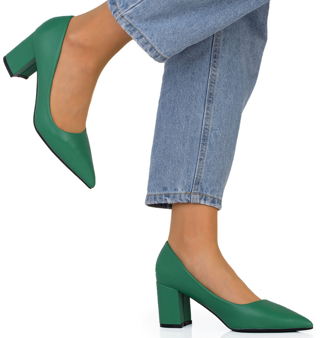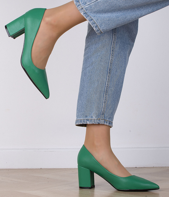 Zielone czółenka na słupku to eleganckie i uniwersalne obuwie, które doskonale sprawdzi się w wielu okazjach. Ich klasyczny design i wysoka jakość wykonania sprawiają, że są one nie tylko stylowe, ale także wygodne w noszeniu. Zielone czółenka charakteryzują się prostą, ale elegancką sylwetką, która pasuje zarówno do formalnych, jak i bardziej casualowych stylizacji. Słupkowy obcas dodaje im pewności siebie i sprawia, że noga prezentuje się smuklej. Dodatkowo, beżowe wykończenie nadaje im ponadczasowego charakteru, dzięki czemu będą pasować do wielu różnych ubrań i dodatków. Te zielone czółenka na słupku są doskonałym wyborem dla każdej kobiety, która ceni sobie elegancję i wygodę w jednym. Bez względu na okazję, będą one niezawodnym i stylowym dodatkiem do każdej garderoby.