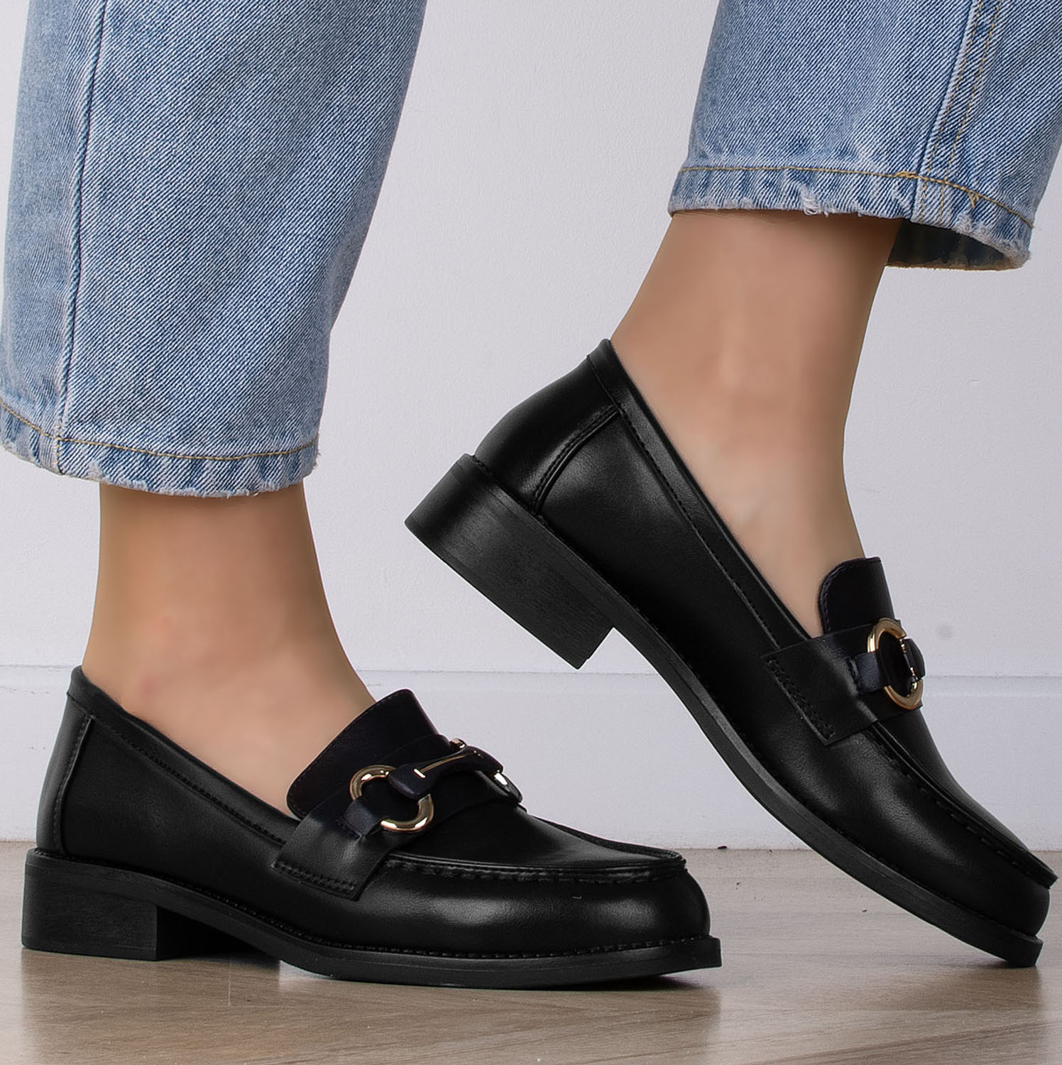 CZARNE MOKASYNY MATOWE Z ŁAŃCUCHEM PORTO