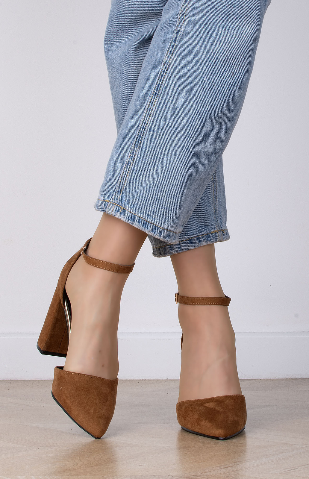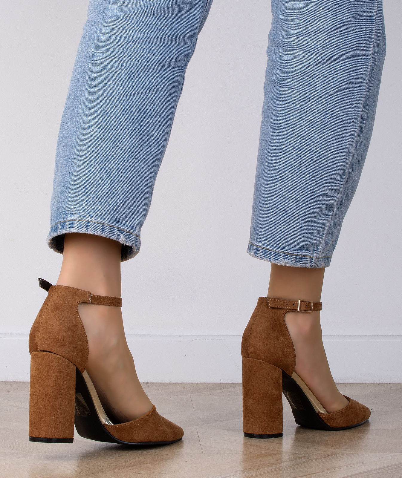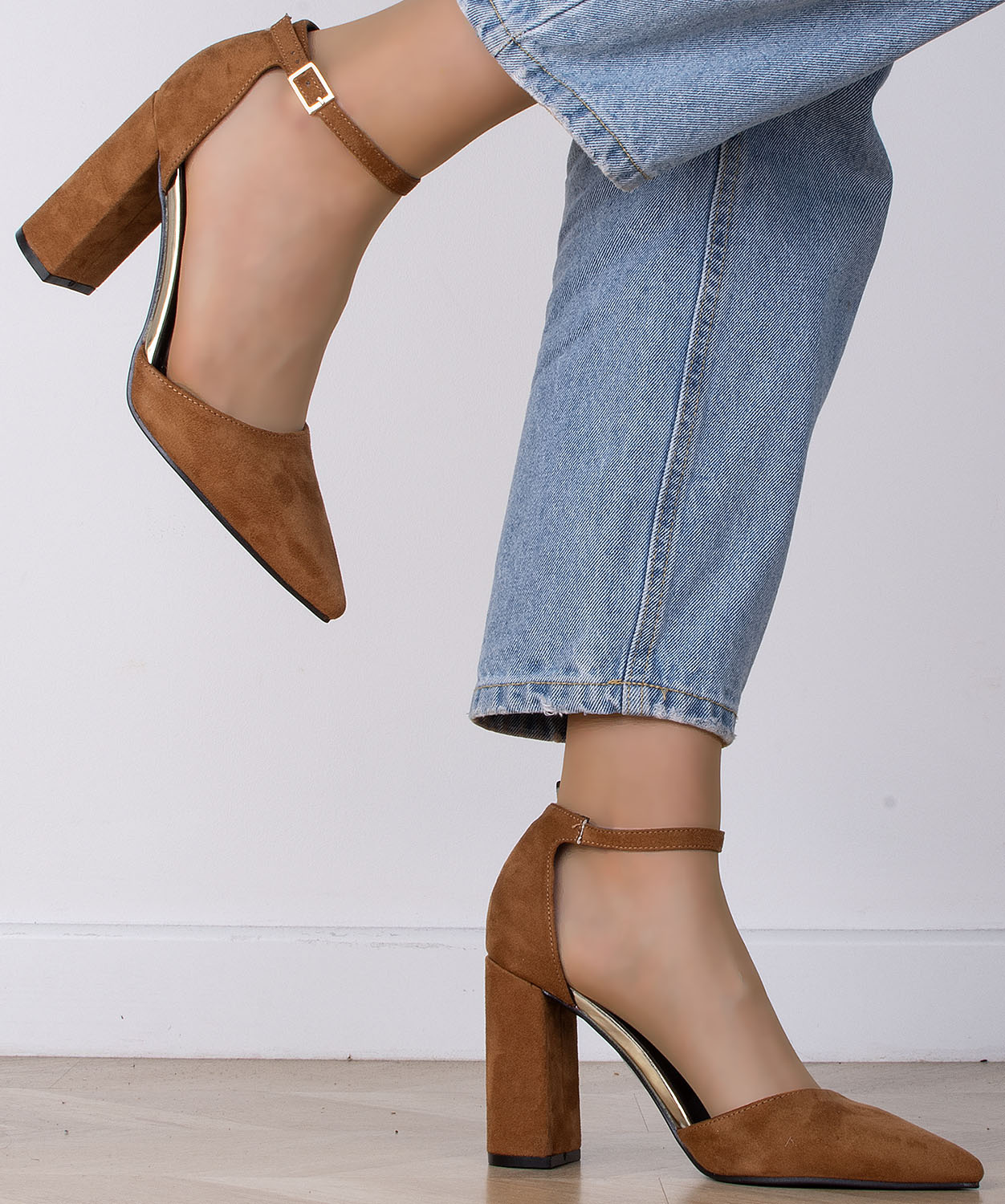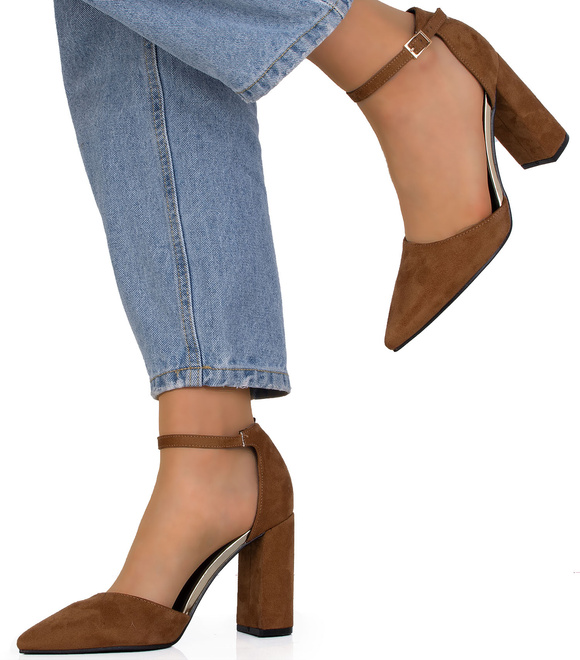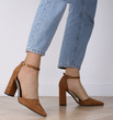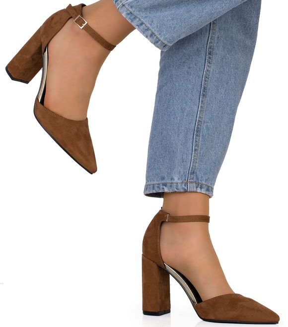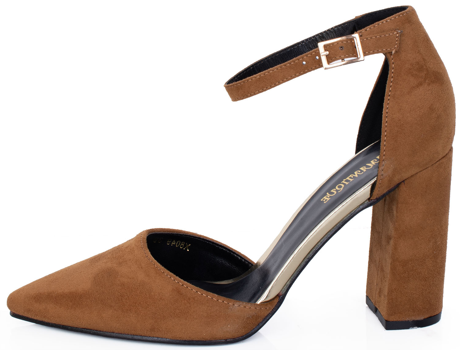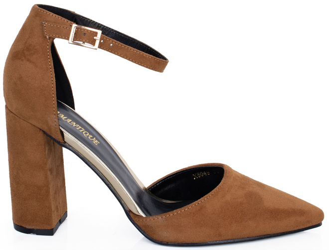 Jeśli szukasz czółenek, które będą wyglądać zarówno elegancko, jak i modnie, to mamy coś dla Ciebie! Nasze czółenka wykonane są z wysokiej jakości zamszu, mają obcas typu słupek i zapięcie wokół kostki na sprzączkę. Model ma spiczasty nosek, który dodaje mu klasycznego charakteru. Możesz je nosić na wiele różnych okazji, od oficjalnych spotkań po codzienne wyjścia. Dzięki swojemu uniwersalnemu wyglądowi będą stanowić doskonały dodatek do Twojej garderoby. Bądź pewna, że będziesz wyglądać w nich pięknie i modnie!