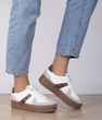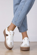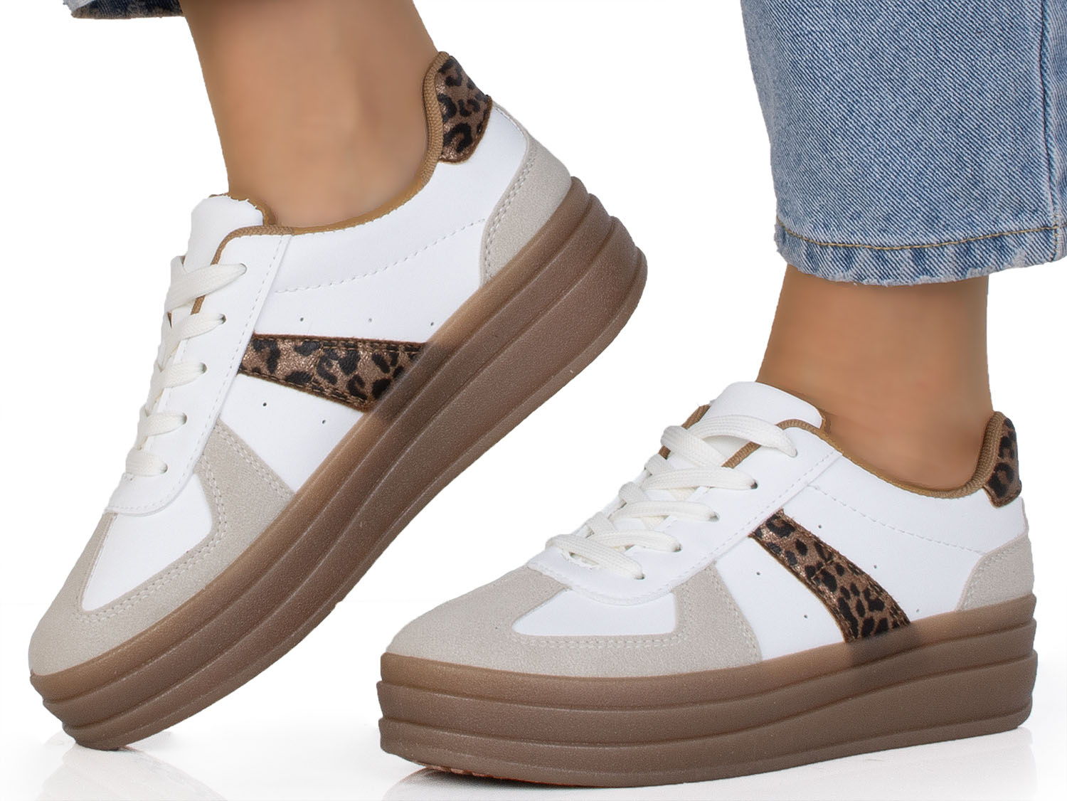 Nasze sneakersy skórzane, wyprodukowane z najwyższej jakości ekoskóry, to odpowiedź na Twoje potrzeby. Przyjazny dla środowiska i modny design sportowego stylu sprawią, że będziesz wyglądać modnie, a dodatkowo miękka cholewka zapewni Ci wygodę przy każdym kroku. Jeśli to Cię nie przekonuje, ten model cechuje się również miękką i przyjemną wkładką tkaninową, dzięki której twój komfort noszenia jest dostosowany do Twoich potrzeb. No i oczywiście sznurowane zapięcie, dzięki któremu dobierzesz idealną precyzję dopasowania. Te sneakersy skórzane to strzał w dziesiątkę dla każdej Pani, która ceni sobie modny i funkcjonalny styl.