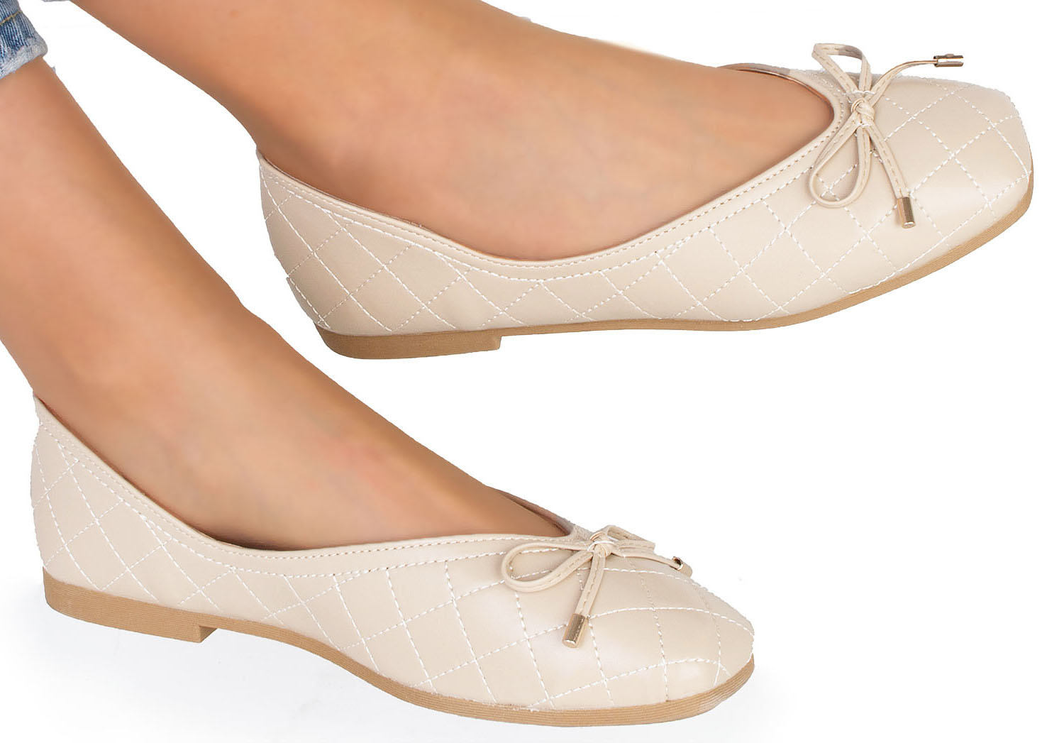 BEŻOWE WYGODNE DAMSKIE BALERINKI KLASYCZNE ARISANA